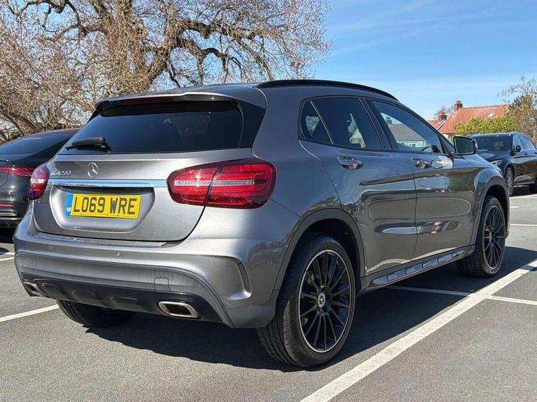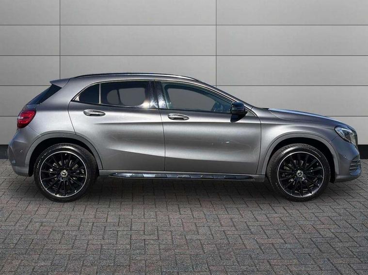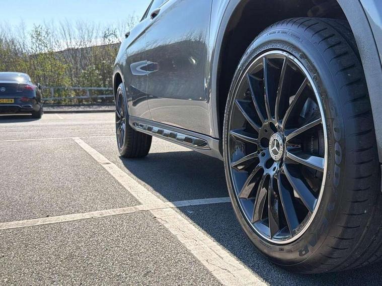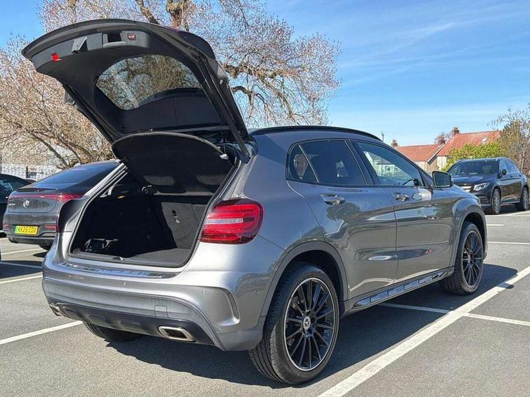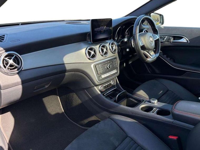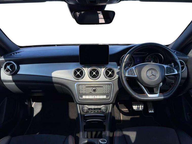 180 degree reversing camera with parking guidelines, 4 analogue dials and needles suspended in six o'clock position, Attention assist, DYNAMIC SELECT with a choice of driving modes (ECO, Comfort, Sport and Individual), Easy-pack tailgate - Powered opening/closing automatically, ECO start/stop function, Fluid level warning indicator for fuel, oil, coolant and washer fluid, Instrument cluster, Mercedes me connect including emergency call system, accident recovery, breakdown and maintenance management, Multi function trip computer, Outside temperature gauge, Parking pilot with front and rear parking sensor and steering assist, Service indicator (ASSYST), Smartphone integration with Apple CarPlay and Android auto, Sports speed sensitive direct steer system with servo assistance, Off road comfort suspension, 8" media display touchpad, Audio 20 radio/single CD/MP3, 6 speakers, telephone keypad, twin radio tuner, Bluetooth, 2 USB ports, SD card slot and Garmin Map pilot nav system, Media interface, Adaptive brake lights, Automatic headlamp activation, Body colour door handles with chrome inserts, Body coloured bumper with front and rear apron trim in matt titanium grey, Chrome beltline strips, Electric front windows, Electrically adjustable and heated door mirrors, Front door sills with Mercedes-Benz lettering, Front fog lights, Full LED tail lamps, Heat insulating dark tinted privacy glass from the B-pillar backwards, Heated glass rear windscreen + timer control, LED High performance headlamps with adaptive highbeam assist, LED third brake light, Panoramic sliding sunroof, Rain sensor windscreen wipers with two sensitivity stages, Rear windscreen intermittent wiper with automatic activation when reversing, Roof mounted radio aerial, Two pipe visible exhaust system with chrome tailpipe tips, 1/3 to 2/3 split folding rear seats, 12 colour Ambient lighting, 12V power socket in centre console, 12V socket in luggage compartment, 3 spoke and 12 button flattened bottom multifunction steering wheel trimmed in nappa leather with perforated leather grip area, Air conditioning - Two zone thermotronic luxury automatic climate control with display, Air vents with chrome surround and cruciform nozzles, Ambient lighting in front headrests, AMG brushed stainless steel sports pedals with rubber studs, AMG floor mats with AMG lettering and stiched edging, Artico man-made leather/Microfibre Dinamica upholstery with red contrast stitching, Auto Mercedes-Benz child seat recognition sensor, Black roof lining, Electrically adjustable front memory seats with four way lumbar support, Front centre armrest with stowage, Front footwell lights, Front seat cushion length adjustment, Gearshift paddles, Heated front seats, Illuminated door sills, Illuminated glove compartment stowage, Interior door handle illumination, Luggage compartment cover, Manually height and reach adjustable steering column, Rear footwell lights, Rear Reading Lamps, Sports seats with integrated head restraints, Stowage compartment beneath load compartment floor, Stowage compartment lighting, Sunvisors with illuminated vanity mirrors, Twin front cup holders, Two outer rear seat isofix and top tether child seat fixing points, White courtesy and red warning lights in front doors and boot lid, Comfort seat pack - GLA Class, Keyless go comfort pack - GLA Class, Mirror pack - GLA Class, 3 rear three point seatbelts, Active bonnet pedestrain safety measure which detects an impact and raises bonnet by 65mm, Active brake assist, Adaptive brake assist with hold function and hill start assist, Anti-lock braking system (ABS), Black seat belts, Childproof locks manually operated for rear doors and electrically operated for rear power windows, Crash responsive emergency lighting, Drivers knee airbag, Dual stage driver and front passenger airbags, Electronic parking brake, Electronic stability programme with acceleration skid control, Front and rear seatbelt reminder, Front passenger seat occupancy sensor, Front side airbags, Tyre pressure monitoring system, Warning triangle and first aid kit, Window airbags, Anti-theft alarm system/interior protection with tow-away protection and interior monitoring systems, Chrome surround in electric key, Remote central locking, Light aluminium with longitudinal grain interior trim, Run flat tyres,