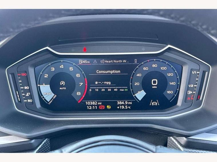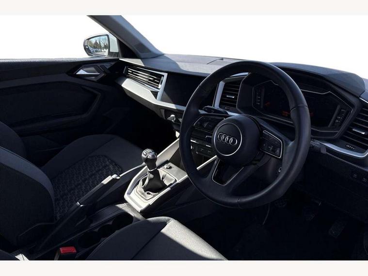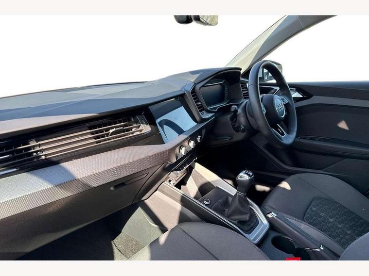 10.25" Digital instrument cluster display classis style instrument dials + speed, odometer, time, outside temperature, telephone menu + fuel level warning, Audi drive select - power steering assistance + engine, Audi smartphone interface with connect compatible smartphone via USB directly MMI display + Nav, music, third party apps controlled via MMI controller, Automatic start/stop system, Bluetooth interface, Cruise control, Driver's information system, Electromechanical power steering, Emergency e-call, Lane departure warning system, Rear parking sensor, Service interval indicator, Speed limiter, Voice control system, Washer fluid level indicator, Dynamic suspension, 2 x USB type C connection points, 6 passive loudspeakers, DAB Digital radio, MMI radio plus with 10.1" colour MMI display screen and MMI touch, Auto dimming rear view mirror, Body coloured bumpers, Body coloured door mirrors, Electric front and rear windows, Electrically adjustable, heated, folding door mirrors with integrated LED side indicator, Front side air inlets in grained matt black and C frame in anthracite black, Heat insulating glass windscreen and side windows, Heated rear windscreen, High level LED brake light, LED headlights with LED rear lights + dynamic rear indicators + headlight adjustment and high beam, turning light + LED daytime running lights, Radiator grille and rear diffuser in matt anthracite black, Radiator protective grille frame in matt aluminium silver, Rain and light sensors, Rear fog lights, Rear side wing doors, Rear wiper, Side front spoiler lips in grained matt black, 12V socket in centre console with two cup holders, 3 rear seats with headrests, 3 seat bench in 2nd row, 3 spoke leather multifunction plus steering wheel, 40:60 Split folding rear seat or folded fully, Black front and rear floor mats, Door sill trims with aluminium inlay, Driver and passenger seat with manual height adjust with forward and backwards adjustment, Front head restraints, Front passenger seat, Grey cloth headlining, Height and reach adjustable steering wheel, ISOFIX child seat mounting for front passenger and outer rear seats including top tether attachment point of outer rear seats, Leather gear knob with aluminium trim, Leatherette handbrake grip, Luggage compartment light with front and rear reading lights, Manual air conditioning, Manually adjustable lumbar support in front seats, Novum cloth upholstery with front sport seats, Luggage compartment pack - A1, 3x3 point rear seatbelts, Audi pre-sense front with pedestrain and cyclist recognition, Brake assist function, Driver and front passenger airbag with front side and head airbags, Electronic Stability Control including ABS, EBD, ASR and EDL, Front passenger airbag deactivation switch, Hill hold assist, Manual rear child locks, Seatbelt height adjustment for front seats, Seatbelt monitoring, Tyre pressure warning light, Warning triangle and first aid kit, Anti theft alarm, Anti theft wheel bolts and loose wheel warning, Immobiliser, Remote central locking with 2 foldaway keys, Aluminium trim for control switches, air vents and digital instrument cluster, Black dashboard, Silver grey accent areas including air vents, door handle recesses and centre console in diamond paint finish, Slate grey inlays polygon structure in fine paint finish,