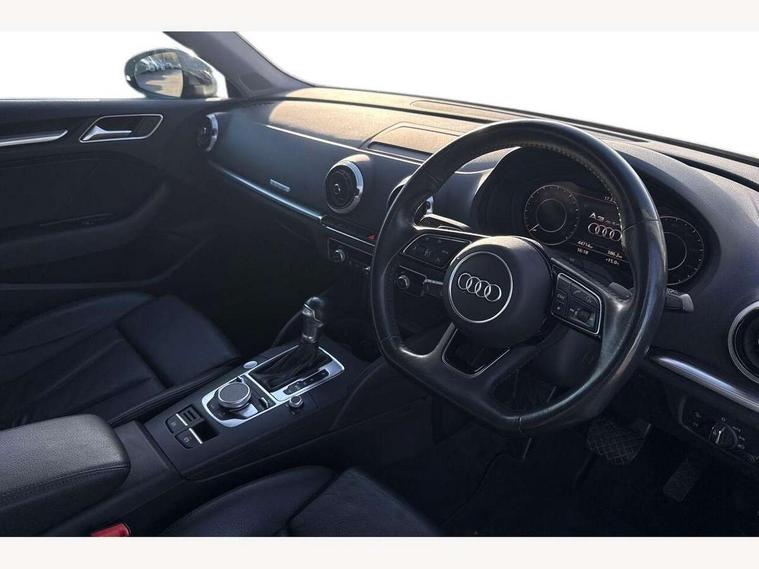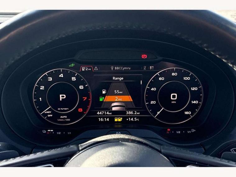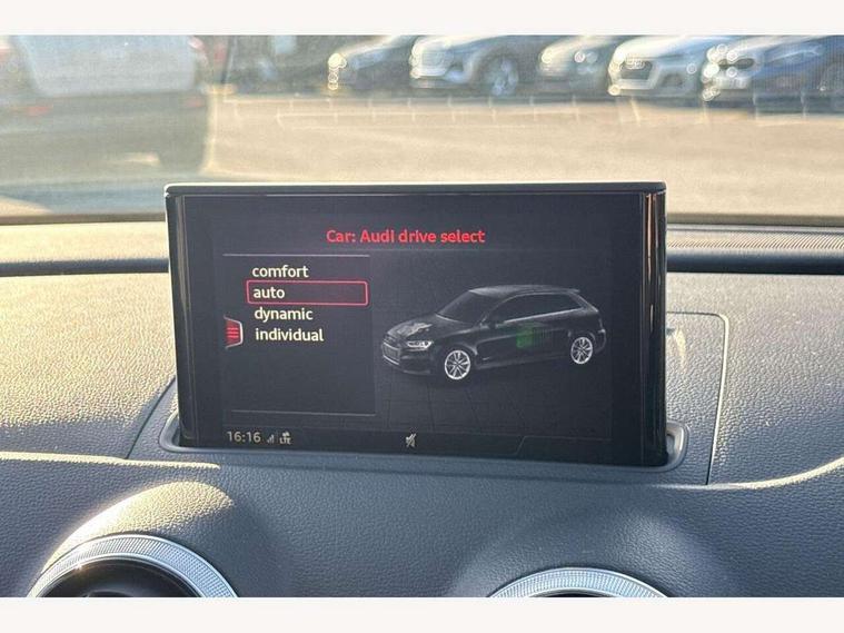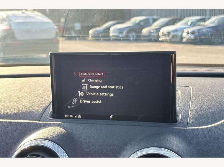 Audi active lane assist, Audi drive select, Audi smartphone interface, Automatic start/stop system, Colour driver's information system display, Cruise control, Dynamic route guidance with TMC pro, Electro - mechanical power assisted steering, Email and text messages, EV button, Integrated navigation with 3D display, Mobile telephone preparation - bluetooth interface, Service interval indicator, Speed limit display, Voice control system, Voice recognition for navigation system, Dynamic suspension, Mode 3 Type 2 charging cable for home wall box or public charging and 3 pin UK domestic charging cable, 10 GB hard disk, 2 USB interfaces and Aux-In jack, 2 x SDXC card reader, Audi music interface, CD/DVD player, DAB Digital radio, MMI radio plus with 7" colour MMI screen and MMI controller, Online entertainment, Aluminium window trim, Auto dimming interior rear view mirror, Body colour bumpers, Body colour door mirrors, Body colour roof spoiler with aerodynamic inserts in high gloss black, Chrome exhaust tailpipes, e-tron badging on front wing and front grille, Electric front windows, Electric rear windows, Electrically adjustable and heated door mirrors with integrated LED side indicators, Heated windscreen washer jets, High beam assist, Light and rain sensors, Matt black radiator grille, Rear wiper, Sport specific side air inlet grille and diffuser insert, Vehicle charging socket behind the Audi rings on the bonnet, 3 adjustable rear headrests, 60/40 split folding rear seat, Adjustable front centre armrest, Driver and front passenger illuminated vanity mirrors, Dual zone electronic climate control, Flat bottom 3 spoke multifunction leather sport steering wheel with gearshift paddles, Front and rear interior lights with delay, Front/rear floor mats, Height and reach adjustable steering wheel, Isofix child seat preparation for front passenger/outer rear seats inc passenger airbag deactivation including top tether, Lashing point in luggage compartment, Manual height adjustable front seats, Rock grey headlining, Storage compartments in doors side trims, centre console and under front drivers seat, Tool kit, Interior lighting pack - A3 e-tron, Non smoking pack - A3, Storage and luggage pack - A3/RS3, Technology pack - A3, 3 point seatbelts on all seats, ABS/EBD, Active bonnet, Active front headrests, Airbags - front driver/passenger, front & rear side, curtain, drivers knee, ASR, Brake recuperation, EDL, Electromechanical parking brake, ESC - Electronic Stability Control + traction control, Front passenger airbag deactivation, Hill hold assist, Manual rear child locks, Multi-Collision braking, Pre-sense front with pedestrian recognition, Seatbelt warning, Tyre pressure warning, Warning triangle and first aid kit, Advanced key, Anti theft alarm, Anti-theft wheel bolts, Remote control central locking, Thatcham category 1 alarm + immobiliser, Aluminium air vent surrounds, Aluminium trim elements, Door sill trims with Aluminium inlay and e-tron logo, 17" 5 Arm design alloy wheels, Tyre repair kit,