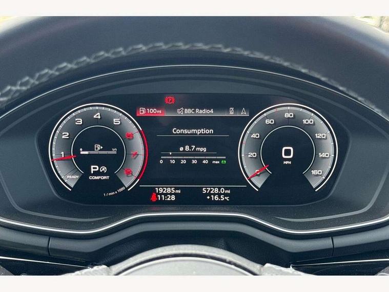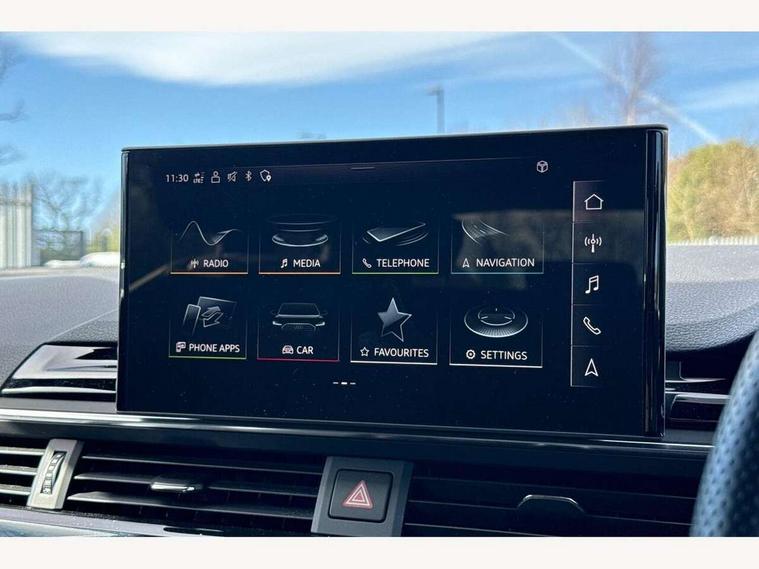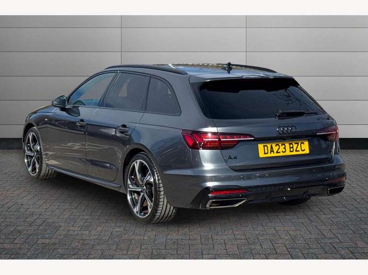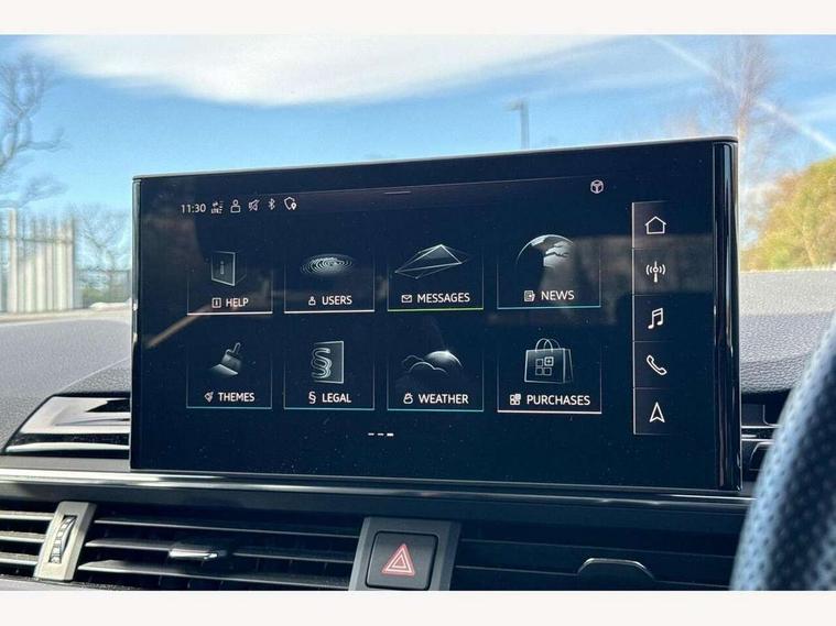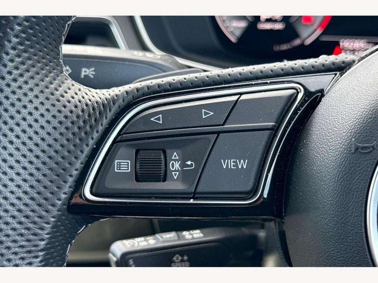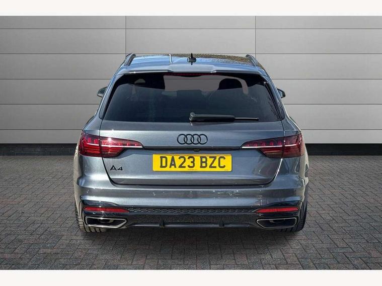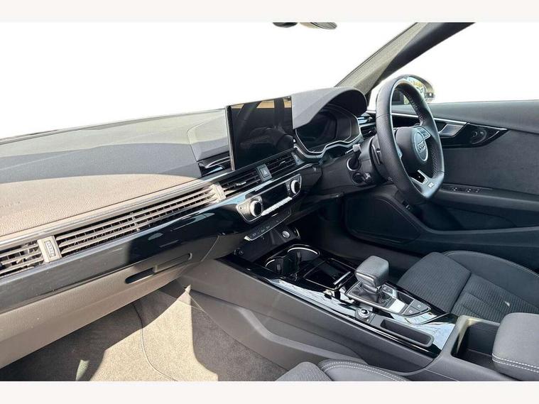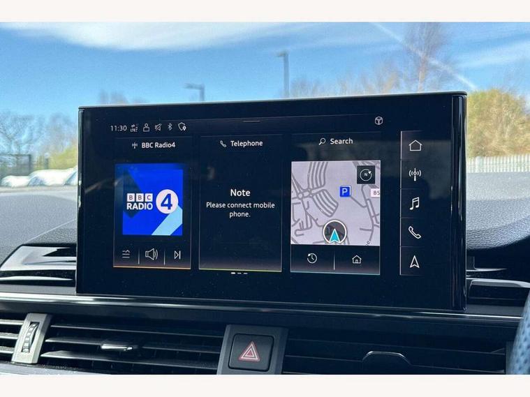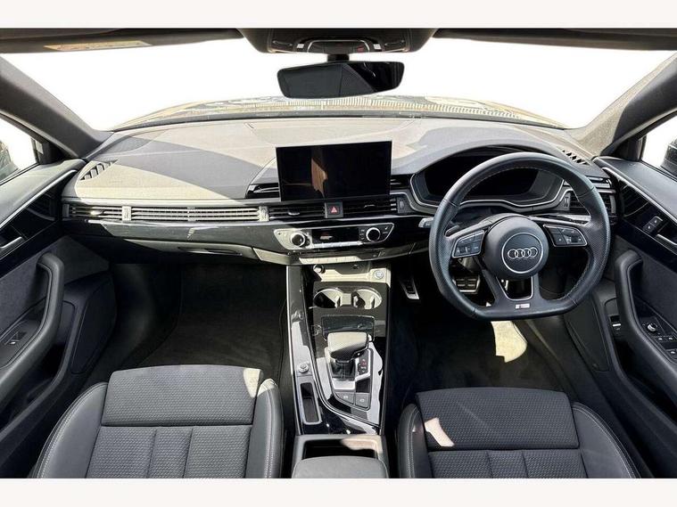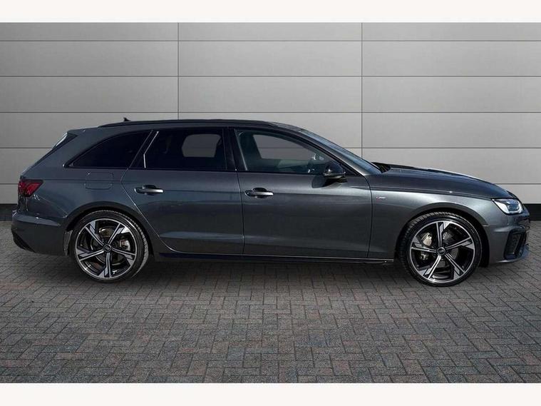 Audi connect safety and service (e-call), Audi connect with Amazon Alexa Integration, Audi drive select, Audi smartphone interface, Audi virtual cockpit, Automatic start-stop system with coasting functionality and efficiency programme, Bluetooth interface, Electromechanical power steering, Email, calendar and text messages displayed via MMI, MMI Navigation plus with MMI touch includes 10.1" high resolution colour MMI display, 3D map, Power operated tailgate, Voice control system, 54 litre fuel tank, Sports suspension lowered by 23mm, 2 USB charging ports, 8 passive loudspeakers, DAB digital radio reception, Audi beam uses LEDs to project the audi logo onto the ground as you exit your A4, Auto dimming rear view mirror, Black Audi rings and black badging (model name in black badging, no engine badging), Body colour door handles, Body colour front spoiler lip, Body colour side sill trim, Electrically folding auto dimming/adjustable/heated door mirrors with LED side indicators and kerb view function for passenger side, Exhaust tailpipes in high dark chrome, Front and rear bumpers with side skirts, Grained matt black side air inlets with matt aluminium silver inlay, High beam assistant, High gloss black B pillar trims and triangular rear door trim, LED headlights with LED rear lights + dynamic rear indicators + headlight adjustment and high beam, turning light + LED daytime running lights, LED third brake light, Privacy glass, Rain and light sensors, Rear diffuser in matt black with trim strip in matt aluminium silver, Rear side wing doors, Rear wiper, RS4 rear spoiler in body colour, S Line badges on the front wings, S Line roof edge spoiler, Variable intermittent front wash/wipe, Windscreen with acoustic glazing, 4 way electric lumbar support for driver and front passenger, 40/20/40 split folding 3 rear seat bench in 3 parts with rear centre armrest, Black cloth headlining, Black perforated leather gearknob, Contrast stitching on seats, steering wheel and gear lever gaiter, Deluxe 3 zone electronic climate control, Door sill trims with aluminium inlay, Electric load area cover, Front and rear head restraints, Front centre armrest, Heated front seats, Illuminated door sill trims with S logo, ISOFIX child seat mounting and top tether, Manual seat adjustment, Single front passenger seat, Stainless steel pedals and foot rest, Black styling pack - A4 Avant, LED Interior light pack - A4/S4, 3 rear seatbelts, 6 airbags - Driver, front passenger, curtain and side windows, Electronic Stabilisation Control (ESC) including ABS, ASR and EDL, Hill hold assist, Multi collision brake assist, Pop-up bonnet for pedestrian protection, Pre sense city, Rear door child safety locks, Seatbelt monitoring, Warning triangle and first aid kit, Anti theft alarm, Anti theft wheel bolts, Central locking, Keyless Go, Piano black finish inlay, 19" 5 arm flag design Audi sport diamond cut alloy wheels in gloss anthracite black, Tool kit, Tyre repair kit,