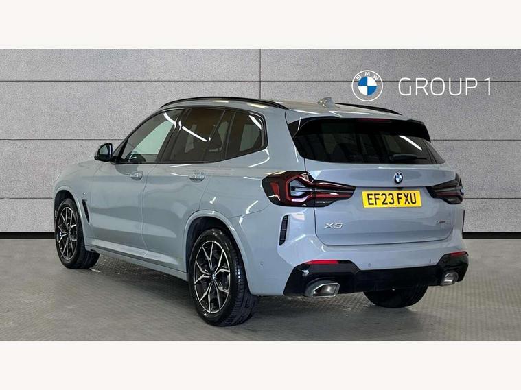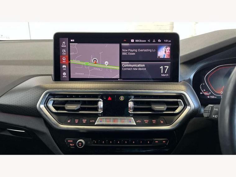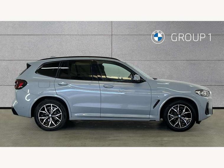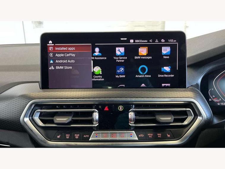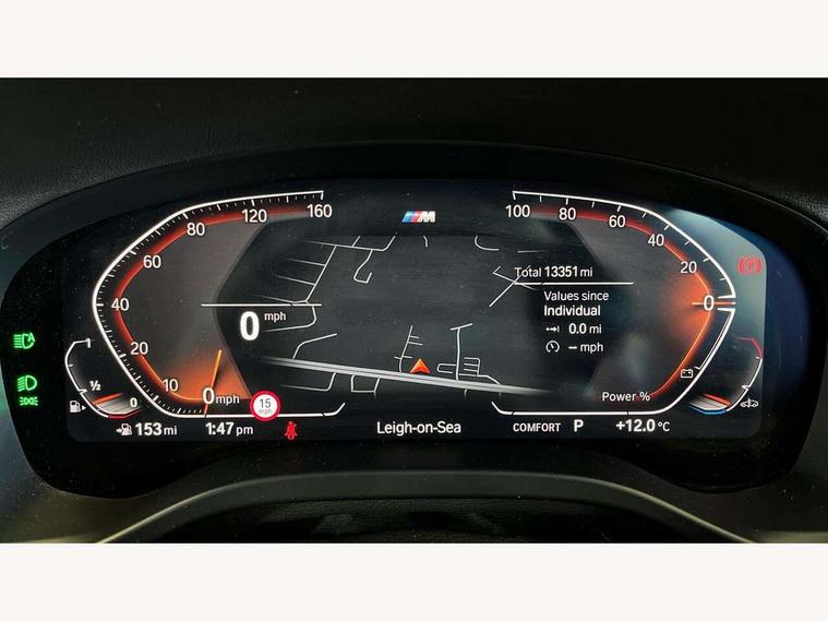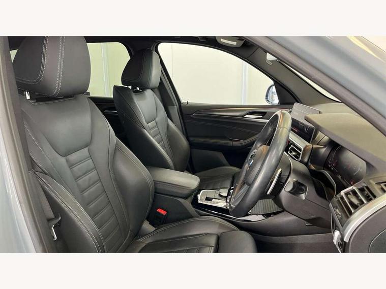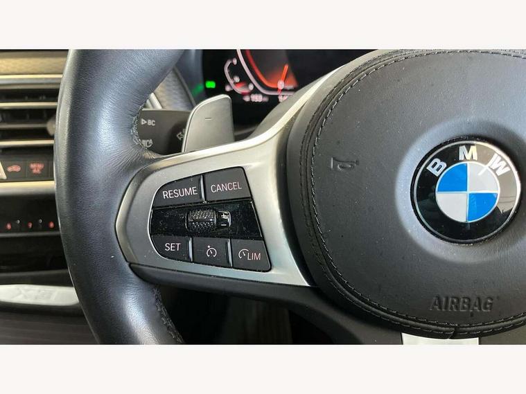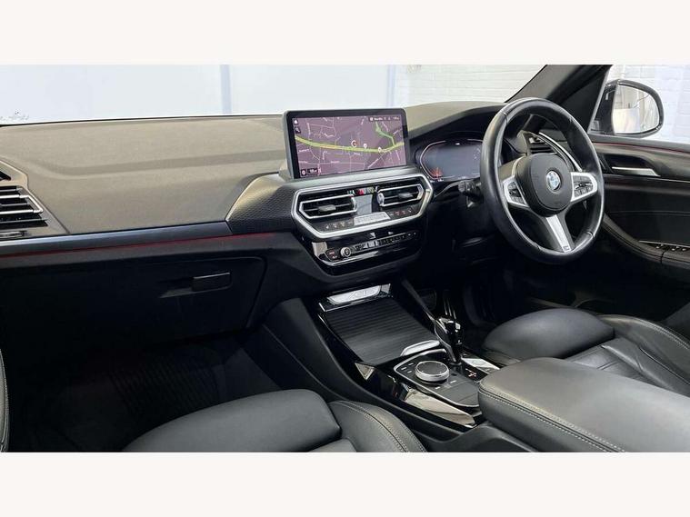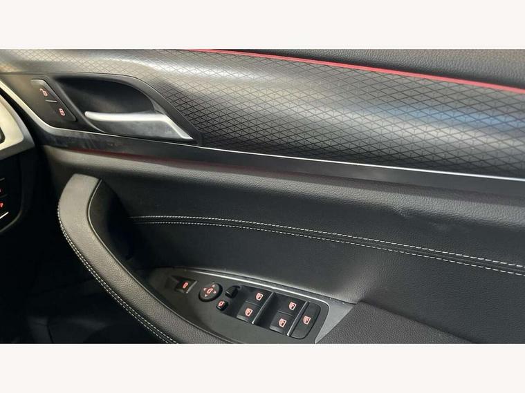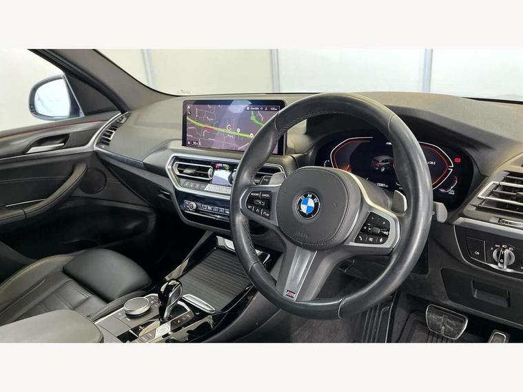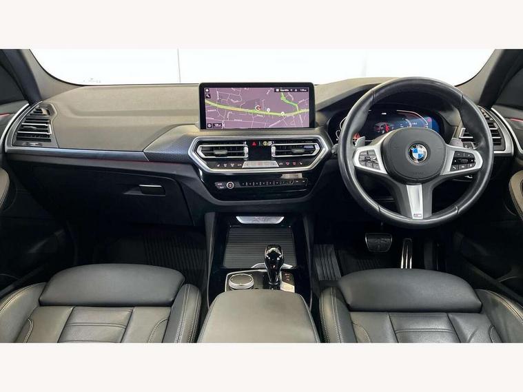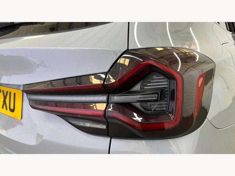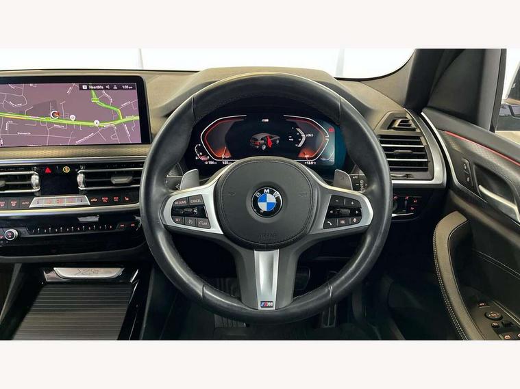 Active Guard, Attentiveness assist, BMW Live Cockpit Professional nav system including 12.3" instrument display + 12.3 high resolution control display, BMW Online services, BMW Teleservices, Brake pad wear indicator in front and rear, Check Control warning system for monitoring of lights and door/luggage compartment open warning, Condition based service - BMW service history, electronic service booklet, integrated owner's handbook, Connected drive services, Electric boot lid, Front/rear Parking distance control, iDrive touch controller with 8 favourite buttons, Instrument cluster with speedometer with mph readout, tachometer, fuel gauge and oil temperature gauge, Lights on warning by audio warning signal when ignition is switched off, Oil sensor for level and grade, warning by check control system, On board computer - average speed+fuel consumption, service interval, clock/date, odometer/trip meter, outside temperature display and ice warning, Optimum shift indicator, Personal Profile - automatic lock when driving away selectable, Run flat indicator, Stop/start system, Variable sports power steering with drive performance control Sport+ mode, Automatic transmission with gearshift paddles, Incorrect fuelling protection, M sport suspension, Multi-link rear suspension, BMW professional radio/CD/MP3, DAB tuner, Acoustic glazing, Automatic windscreen wipers and automatic headlight, Black finish on B pillars, Body colour door handles, Body colour electric adjust heated aspherical door mirrors, Body colour roof mouldings, Body coloured bumpers, Direction indicator, side repeaters, integrated in exterior mirrors, Dynamic brake lights, Exhaust tailpipes - dual, round, split left and right with chrome finisher, Fingertip control / anti-trap function on electric window, Folding wing mirrors with auto dimming, Follow me home headlights, Front and rear bumper system with replaceable deformation elements, Front and rear electric windows, Gloss chrome tailpipes finishers, Green tinted heat insulating glass, Heated windscreen washer jets, High beam assistant, High gloss black shadow line roof rails, High gloss shadowline exterior trim in decorative moulding side frame/recess cover/guide rail/B, C pillars/mirror frame and triangle with mirror base, High level 3rd brake light incorporating LED Technology, Interior rear view electrochromatic mirror with automatic anti dazzle function, LED tail lights, Lightweight engineering, M aerodynamic bodystyling, M Sport entry door sill strips, Model designation, Rain sensor, Rear side wing doors, Rear wing door, Rear wiper, Shark fin antenna, Side exterior M designation badges, Visible VIN plate, Welcome lighting, Windscreen wipers with adjustable interval, 12V power point in luggage area, 12V power socket in front centre console, 2 x USB Type C ports for charging and data transmission (front centre console) and 2 x USB Type C ports for charging (rear centre console), 3 rear headrests, 3 seat bench in 2nd row, 3 zone automatic air conditioning, 4 lashing points to secure luggage, 40:20:40 split folding rear seat with loading system, Ambient lighting, Anthracite headlining, Automatic interior light when door is opened/ignition switched off or via remote key, Floor mats in velour, Foldable storage floor with compartment, Four grab handles integrated in roof lining, Front and rear bottle holders integrated into door trim storage compartments, Front and rear side armrests integrated into door trim, Front centre armrest with storage compartment, Front footwell lights, Front head restraints, Front passenger seat, Front sports seats, Front/rear courtesy lights with soft on/off dimming, Front/rear reading lights, Heated front seats, Isofix rear child seat preparation, Leather gear knob, Lockable glove compartment, Luggage area underfloor compartment, Luggage compartment lighting, M sport leather steering wheel, Multifunction steering wheel, Parcel shelf removeable and storable under boot floor, Reach and rake adjustable steering column, Rear centre armrest with 2 cupholders, Removable / retractable luggage cover, Slope adjustable rear seats, Storage compartment in rear centre console and front/rear door trims, Sun visors with vanity mirrors and ticket pocket, Toolkit located in luggage compartment, Two front cupholders with removable oddments tray/lid, Connected pro pack - X3, ADB - Automatic Differential Brake, Anti-lock braking system (ABS) with brake assist, Automatic Stability Control (ASC), Battery safety cut-off, BMW emergency call, Brake drying, Brake energy regeneration, Braking pre-tensioning, Child locks on rear doors, Cornering brake control (CBC), Crash Sensor - activation of central locking release, hazard warning light and interior lighting, Deactivation of fuel pump in the event of a crash, Driver and front passenger front and side airbags with passenger deactivation and ITS front and rear head airbags, Driver and front passenger knee airbag, DSC+, Dynamic brake control, Dynamic Traction Control - DTC, Electromechanical parking brake, Hill descent control, Hill start assist, Seatbelt security check for front seats, Side impact protection, Three point seatbelts to all seats with front and outer rear pyrotechnic belt tensioners and seat belt force limiters, Two tone horn, Tyre pressure sensor, Ventilated front and rear disc brakes, Warning triangle and first aid kit, Central locking switch for all doors, fuel filler cap and luggage compartment, Electronic engine immobiliser, Locking wheel nuts, Remote control including two integrated key - one button for open/close all lockable content, windows and separate button for open luggage compartment, Remote control Thatcham category 1 alarm, Start/stop button with Comfort Go keyless engine start and auto Start/stop deactivation button, Low rolling resistance tyres,