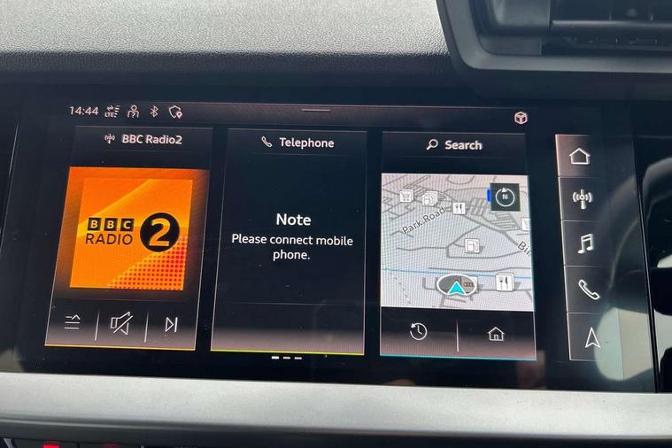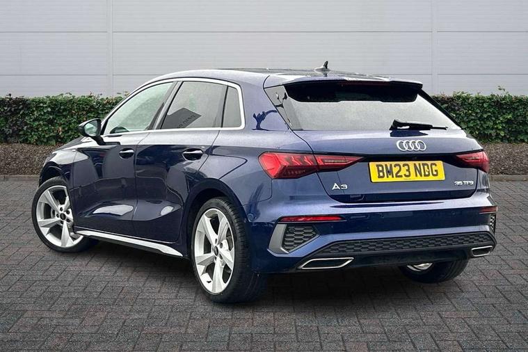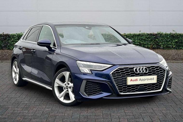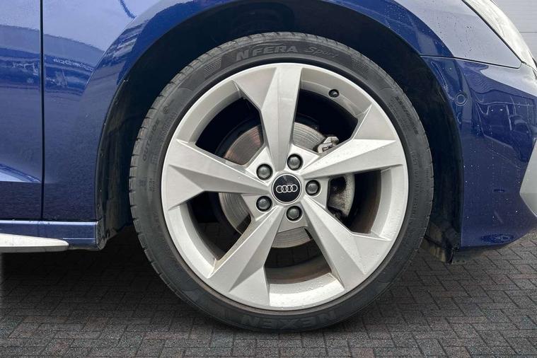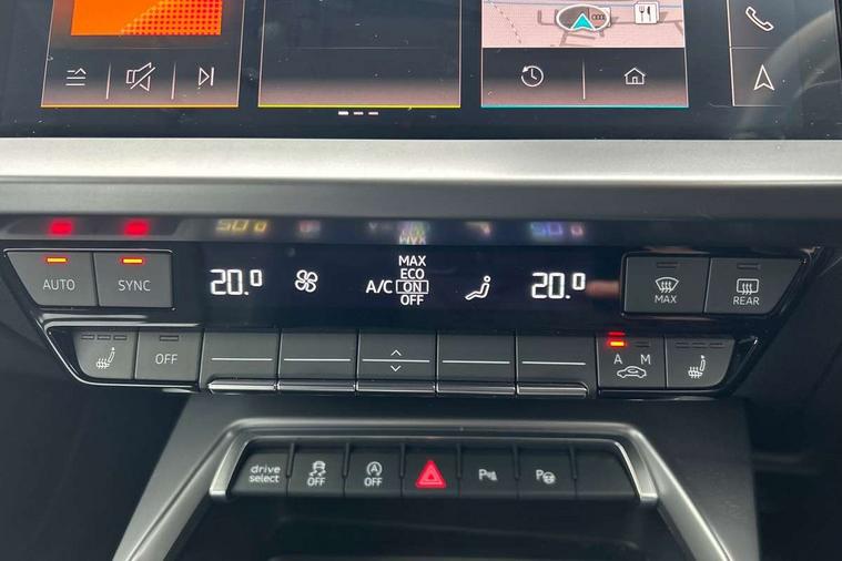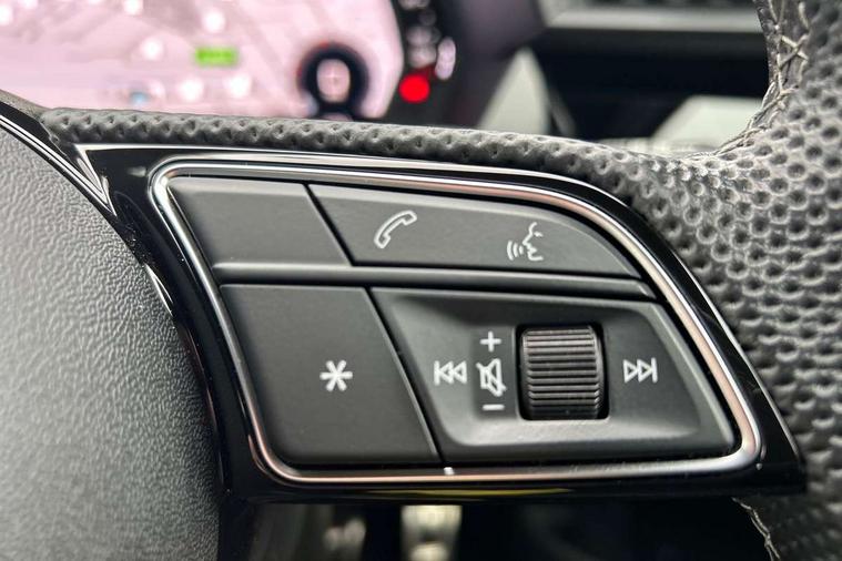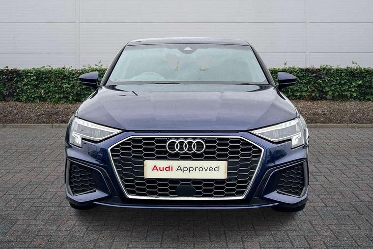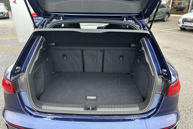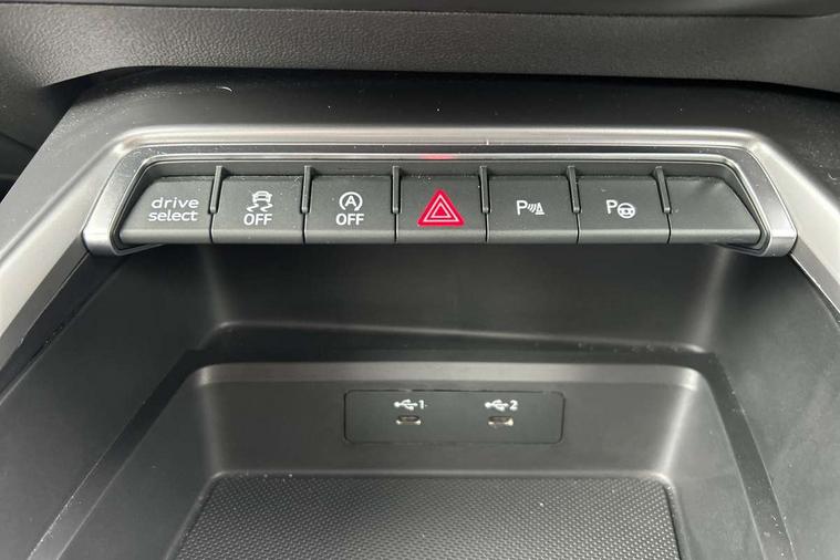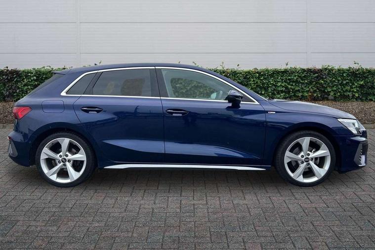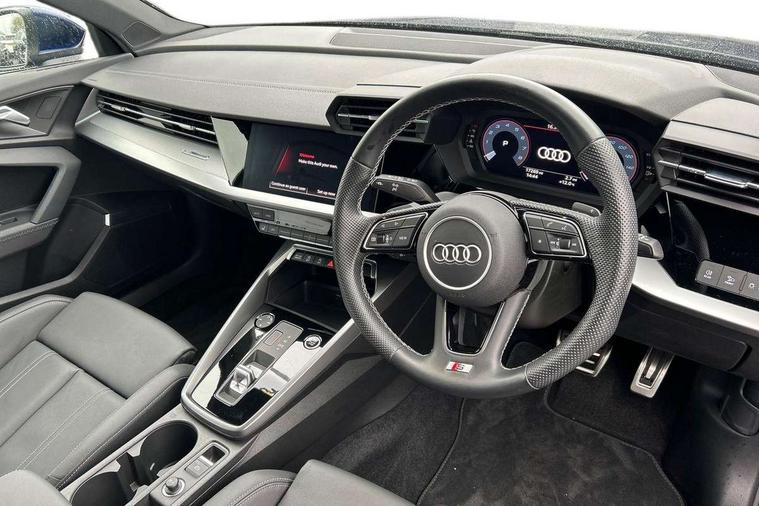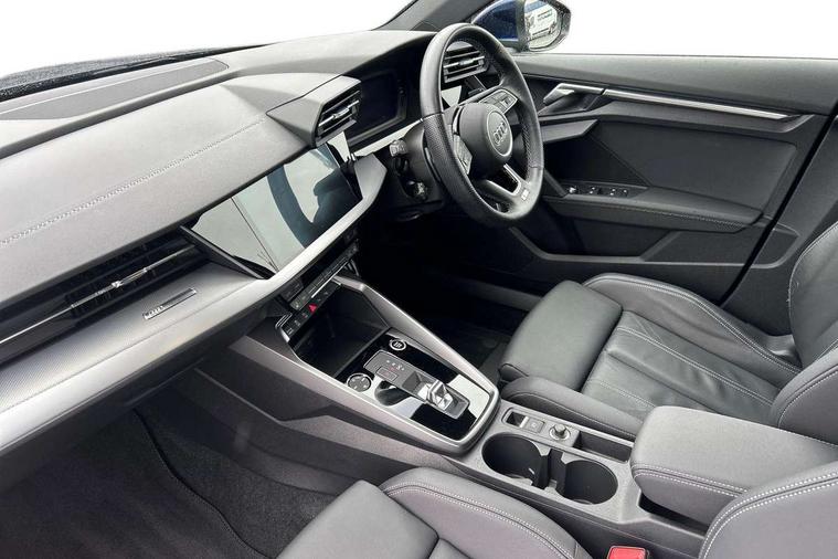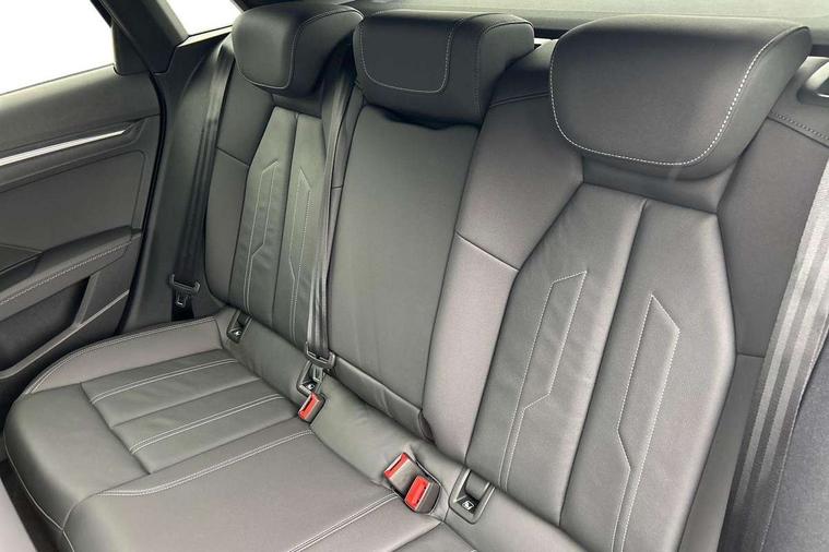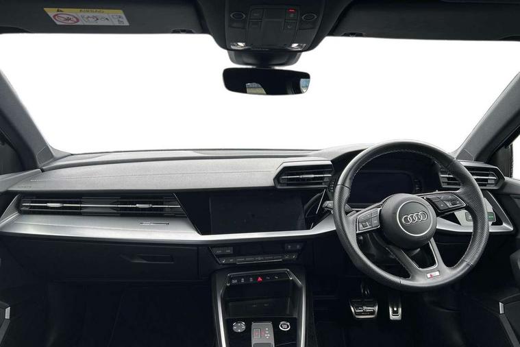 Audi drive select (Auto, Comfort, Dynamic, Efficiency and Individual), Audi smartphone interface, Audi Virtual Cockpit - 10.25" digital and colour instrument cluster, Automatic start/stop system with recuperation, Bluetooth interface, Collision avoidance assistant, e-Call (emergency call), Electromechanical power speed sensitive steering, Lane departure warning system, MMI Navigation Plus with high resolution 10.1" colour touch screen display, Service indicator, Trip computer, Voice control system with natural language interaction, Sports suspension, 2xUSB-C connection with data and charging functions, 6 passive loudspeakers, DAB Digital radio, 3rd brake light, Acoustic glass windscreen, Aluminium window trim, Auto dimming frameless rear view mirror, Body colour exterior mirrors, Electrically adjustable/heated/folding/auto dimming door mirrors with integrated LED indications + kerb view function for passenger side, Front electric windows, Illuminated aluminium inserts front door sills with S logo, LED daytime running lights, LED headlights with LED rear lights and dynamic rear indicators, Light and rain sensors, Privacy glass - dark tinted rear window, rear door and side windows, Rear electric windows, Rear side air outlets in grained matt black, Rear side wing doors, Rear wiper, S line bumpers, S roof spoiler, 12V socket and storage compartment in front centre console, 3 seat bench in 2nd row, 3 spoke leather multifunction steering wheel with paddle shift, 4 way electrically adjustable lumbar support for driver and front passenger, 60/40 split folding rear seat bench, Black cloth headlining, Dual zone electronic climate control, Front and rear centre armrest in leather, Front and rear headrests, Front/rear floor mats, Height and reach adjustable steering wheel, Interior lighting - glove compartment light and right hand side, Luggage compartment floor covering, Manual boot compartment lid, Manually adjustable front seats, Seat side bolsters, Single front passenger seat, Stainless steel pedals and front footrest in black, Twin leather upholstery with front sports seats S embossed logo, Aluminium interior elements pack - A3 Sportback, LED interior lighting pack - A3 Sportback, S line styling pack - A3 Sportback, 3x3 point rear seat belts, Driver and front passenger airbag with passenger airbag deactivation, Electronic Stabilisation Control (ESC) including ABS, ASR and EDL, First aid kit with warning triangle and 2 safety vests, Front side airbags with head airbags and interaction airbag, Pre-sense front with pedestrian and cyclist detection, Seatbelt monitoring, Tyre pressure loss indicator, Anti theft alarm, Anti-theft wheel bolts, Electronically operated child lock, Immobiliser, Remote control central locking, Dark spectrum aluminium inlays, accent surfaces in the dashboard and centre console in platinum grey silk effect paint finish,