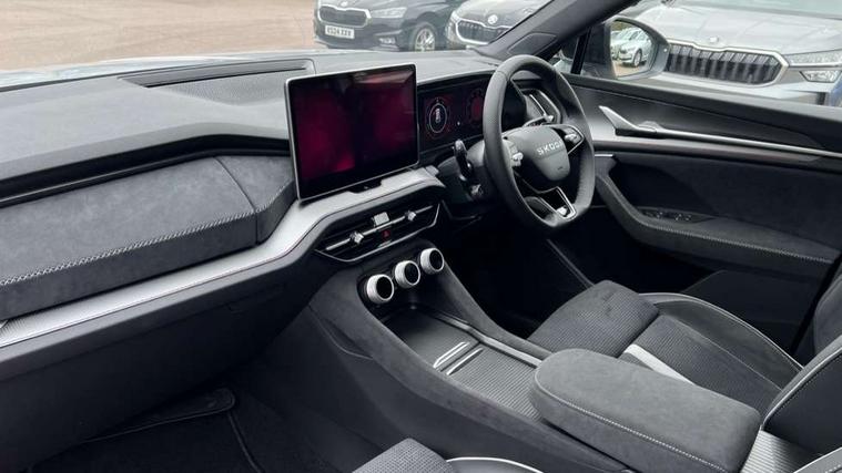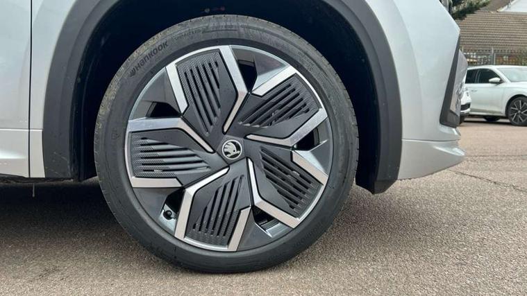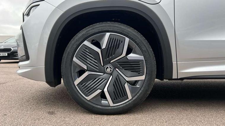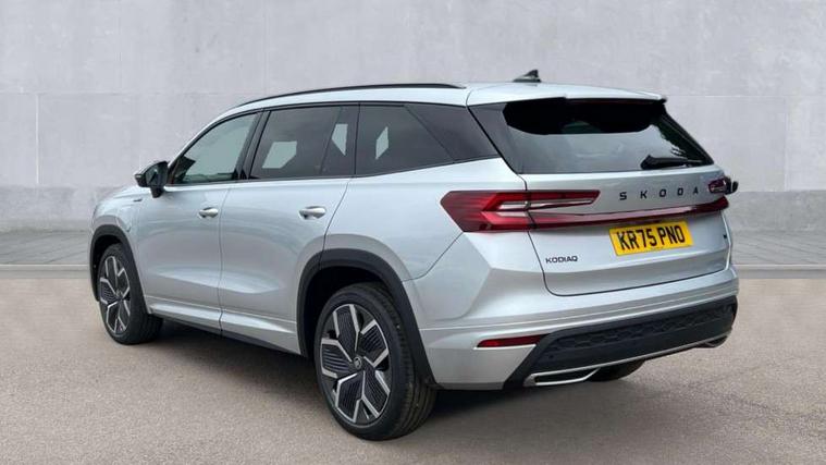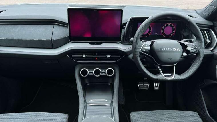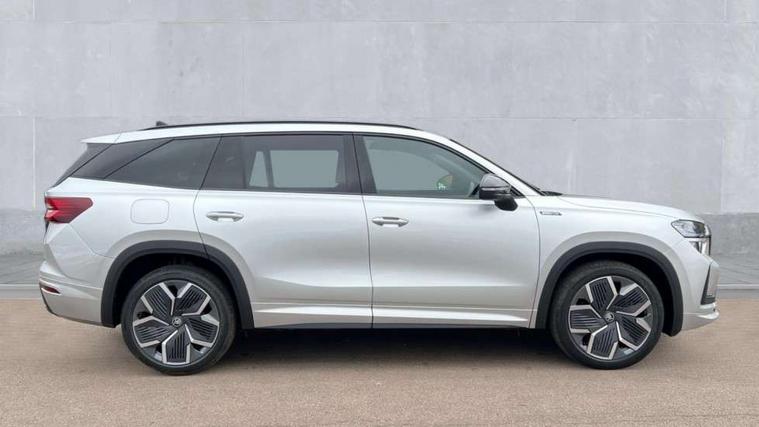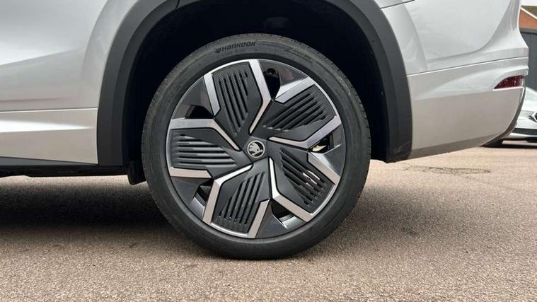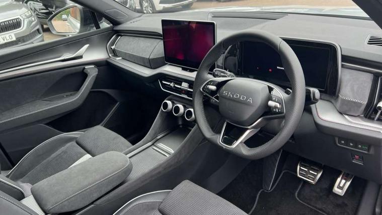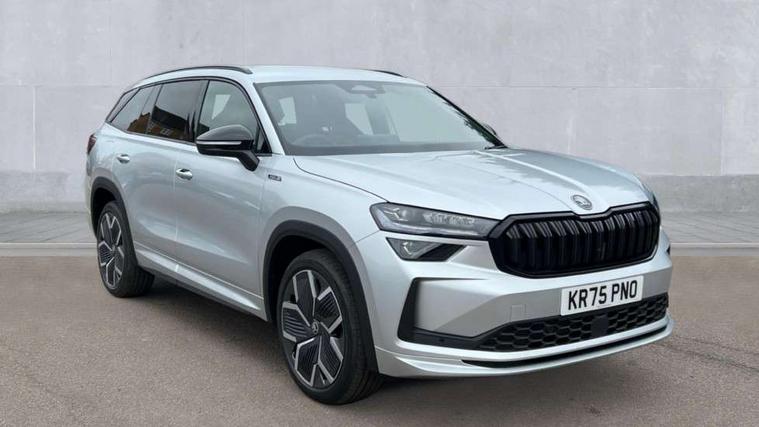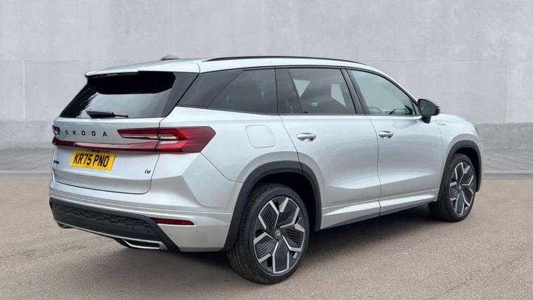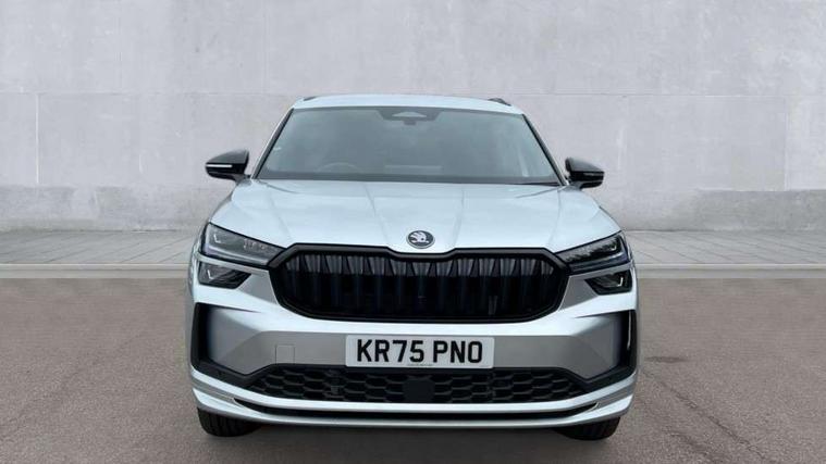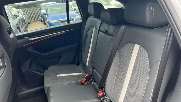 13" satellite navigation touchscreen display, Blind spot detection with door exit warning, Bluetooth system, ChatGPT functionality, Driver alert - Fatigue and drowsiness monitor, Dry display cleaner, Emergency call, Front and rear parking sensors, Front cross traffic assist, Lane assist, PAS, Rear traffic assist, Tailgate unlocking from outside, Traffic sign recognition, USB C Port x 2 in front centre console, Virtual Cockpit - 10.25" digital display, Voice control system, Wireless charging for two smartphones (15W) with cooling function, Wireless SmartLink for Apple CarPlay and Android Auto, 32A charging cable, Stop/start function, 2x USB-C in the rear, DAB Digital radio, Aero front windscreen wipers with intermittent function, Auto dimming rear view mirror, AWL (all weather lighting) and all weather light with cornering function, Black diffuser and decorative tailpipe with a unique dark chrome finish, Black roof rails, Black sports styling including front grille and window surrounds, Black wheel arch surrounds, Body colour door handles, Cornering light and poor weather light, Electric folding /adjustable/separted heated/folding door mirrors, auto dimming with boarding sports and memory function, Electric front and rear windows, Exterior black decorative trims, Front and rear sports bumpers including lower rear chrome strip, Front grille with horizontal light strip, Gloss black door mirrors, Gloss black window frame and D pillar, Heat insulating glass in windshield, Heated rear window, Ice scraper in fuel tank cap, LED daytime running lights, LED matrix headlights with AFS and LED fog lights, LED rear light with welcome effect and dynamic turn signals, LED third brake light in rear spoiler, Light assistant with automatic headlight control and coming home feature, Logo projection in door mirrors, Multiple matrix beam, Privacy glass, Rear roof spoiler, Rear side wing doors, Rear window wiper, Red decorative strip between rear LED lights, Safety reflectors on front and rear doors, Sportline badge on front fenders, Tailgate lettering in Black, Unique dark chrome design logo on alloy wheels, Window control switches with black trim, Windscreen wipers with rain sensor, Without engine designation, 1.5l bottle holder points in all door, 1x centre rear reading light, 3 configurable smart dials with 32mm coloured display, 3 seat bench in 2nd row, 3 spoke multi-function heated leather sports steering wheel with paddle shift, 4 foldable roof handles with rear coat hooks, Aluminium pedals, Ambient interior lighting - Dashboard, front-door stowage compartments, front and rear door panels and footwell lighting, Automatic gear selector on steering column, Chrome interior door handles, Driver/front passenger reading lights, Fabric headlining, Fixed bench 40:60:40 split folding backrests, Front and rear floor mats, Front centre armrest with jumbo box storage compartment, cup holder and 12V socket, Front sport seats, Height adjustable front headrests, Interior black decorative trims, Isofix child seat fittings in outer rear seats and front passenger with top tether, iV badging on boot, Manually adjustable steering column, Pollen filter, Rear centre armrest with cupholders, Rear seat boot backrest release, Single front passenger seat, Skoda lettering on steering wheel, Storage pocket including mobile phone pockets on the backs of the front seats, Sunvisors with illuminated vanity mirrors, Three rear height adjustable headrests, Ticket holder on A Pillar, Tri zone climate control, Umbrella in door panel x1 made from sustainable materials, Upper and lower glovebox with card holder and coin compartment, USB C port by rear view mirror for charging only (15W), Acoustic package - Kodiaq, Performance package - Kodiaq, Sportline design selection pack - Kodiaq, Auto door release and activation of warning lights in the event of an accident, Driver and front passenger airbag with knee airbag and front passenger airbag deactivation, Electric child locks, Electronic parking brake, ESC (incl. ABS+EMD+MSR+ASR+EDL+HBA+DSR+RBS+ESBS+MCB+TSA+XDS), Front assist with braking reaction to vehicles, pedestrians and cyclists, Front disc brakes, Fuel cut off safety device, Height adjustable front 3 point seatbelts + pretensioners, Hill hold assist, Junction assist with automatic emergency braking, Rear disc brakes, Safety vest holder in door, Seat belt reminder for all seats, Three point rear seat belts, Two tone horn, Tyre pressure monitor, Alarm with interior monitoring and tilt sensor with safe function, Anti-theft wheel bolts, Immobiliser, Remote central locking with 2 keys, 20" Rila anthacite polished alloy wheel with black matte aero covers, Breakdown kit, Tool kit,