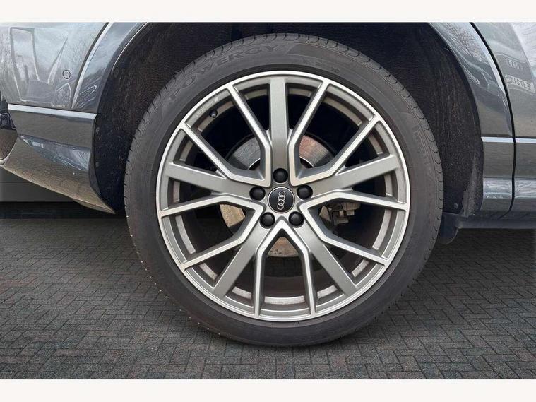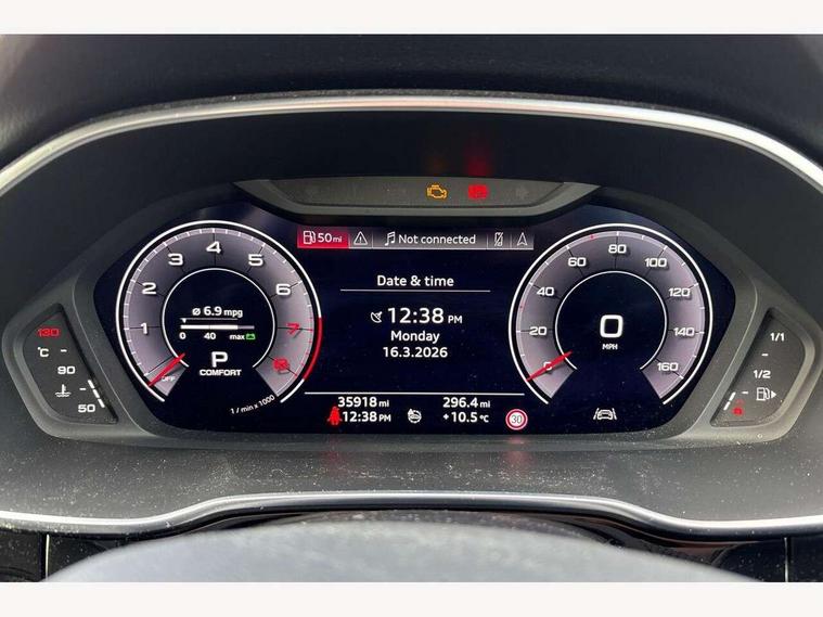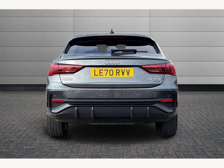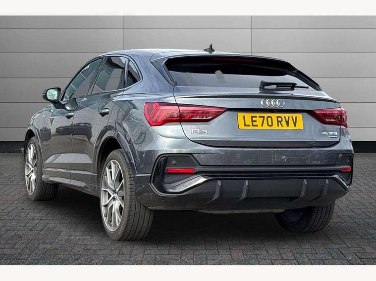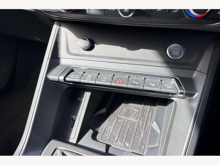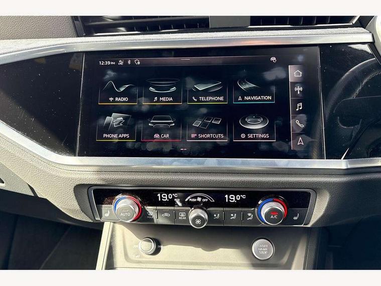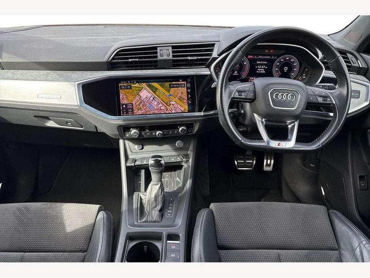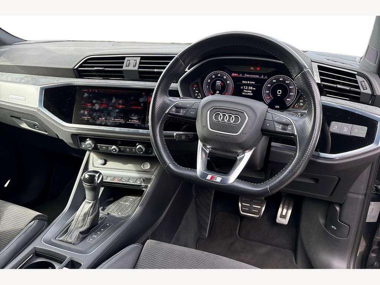 360 degree parking camera, Audi connect safety and service (e-call), Audi drive select, Audi lane departure warning, Audi phone box with wireless charging, Audi side assist, Audi virtual cockpit plus, Bluetooth interface, Camera based traffic sign recognition, MMI Navigation Plus with high resolution 10.1 inch touchscreen colour display, Power operated tailgate, Progressive steering, Rear cross traffic alert, Service interval indicator, Smartphone interface includes wireless Apple carplay/Android Auto, Start stop system with recuperation, Voice control system with natural language interaction, Adaptive suspension with damping control, 1 x USB type C and 1 USB type A charging points, Bang + Olufsen 3D sound system, DAB digital radio module, Acoustic windscreen, Audi Beam uses LEDs to project the Audi Sport logo, Auto dimming door mirrors, Auto dimming frameless rear view mirror, Diffuser grille in grained matt black, Diffuser trim in selenite silver, Electrically folding, adjustable and heated door mirrors with integrated LED side indicators and kerb view function for passenger side, Front and rear electric windows, Front fog lights, Front side air inlets in selenite silver, Front underbody protection in manhattan grey paint finish, Grille surround in aluminium silver matt, Headlight washers, High gloss black finish B and C pillars, Matrix LED headlights with LED rear lights and dynamic front and rear indicator, Panoramic opening glass sunroof, Privacy glass dark tinted rear and rear-side windows (from B-pillar backwards), Rain and light sensors, Rear underbody protection in matt black, Side skirt insert in matt Platinium grey, 12V socket in rear centre console, 3 spoke flat bottomed high multi-function leather sport steering wheel with gearshift paddles, 4 way electric lumbar support for driver and front passenger, 40:20:40 folding with manual adjustment for 60:40 forwards/backwards position and backrest angle, Adjustable rear seat bench/backrest with centre armrest and cupholder, Black cloth headlining, Dual zone electronic climate control, Electrically adjustable front seats, Front and rear black floor mats with contrast stitching, Front and rear headrests, Front and rear roof module including reading lights, Front centre armrest, Glove compartment lighting, Heated front seats, Height and reach adjustable steering wheel, Illuminated door sill trims with S logo, ISOFIX child seat mounting for front passenger with airbag deactivation and outer rear seat including top tether attachment point for outer rear seats, Luggage compartment light, Perforated leather gearknob, Stainless steel luggage compartment sill finisher, Stainless steel pedals, Black styling pack - Q3, Driver Assistance Pack - Q3, Multi coloured extended ambient interior lighting pack - Q3, Non smoking pack - Q3, 3x3 point rear seatbelts, 6 airbags - Driver, front passenger, curtain and side windows, Audi pre-sense front with pedestrain and cyclist recognition, Electrically operated child locks on rear doors, Electromechanical parking brake, Electronic stabilisation control including ABS, ASR and EDL, Hill descent control, Hill hold assist, Pre sense basic, Seatbelt monitoring, Tyre pressure warning, Warning triangle and first aid kit, Advanced key, Anti theft alarm, Anti theft wheel bolts, Remote central locking, Detail dashboard around MMI touch colour display in glass look, black with surround in aluminium look, Leatherette door armrest,