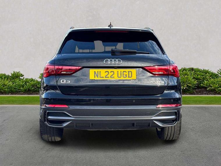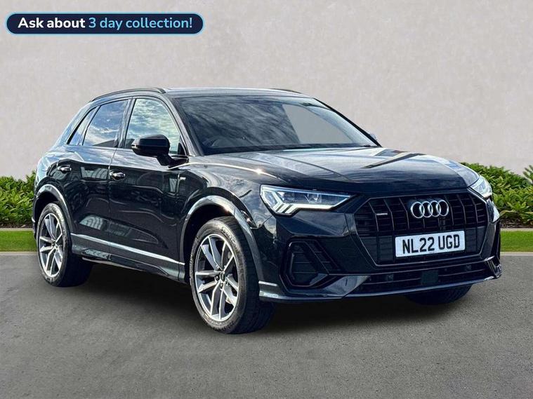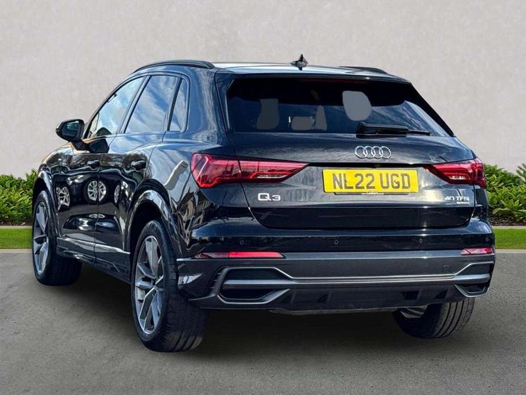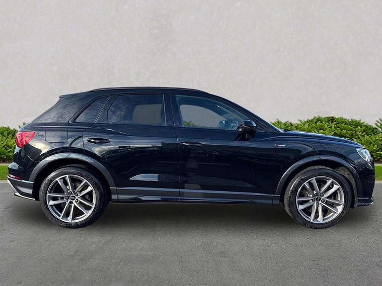 Amazon alexa Integration, Audi connect safety and service (e-call), Audi drive select, Audi lane departure warning, Audi Virtual Cockpit - 10.25" display, Bluetooth interface, Camera based traffic sign recognition, MMI Navigation Plus with high resolution 10.1 inch touchscreen colour display, Power operated tailgate, Progressive steering, Service interval indicator, Smartphone interface includes wireless Apple carplay/Android Auto, Start stop system with recuperation, Voice control system with natural language interaction, Sports suspension, 2 USB-C ports with charge and data functions, 6 passive loudspeakers, DAB digital radio module, Acoustic windscreen, Auto dimming frameless rear view mirror, Black roof rails, Electrically folding, adjustable and heated door mirrors with integrated LED side indicators and kerb view function for passenger side, Front and rear electric windows, Front fog lights, Grille vertical bars in aluminium silver/Matt, High gloss black finish B and C pillars, LED headlights with LED daytime running lights, LED rear lights, LED third brake light, Privacy glass dark tinted rear and rear-side windows (from B-pillar backwards), Rain and light sensors, Rear diffuser strip in matt titanium black, Rear side wing doors, Rear wiper, S line bumpers in contrasting Manhattan grey, Tinted rear windows, Variable front intermittent wipers, 12V socket in rear centre console, 3 seat bench in 2nd row, 40:20:40 folding with manual adjustment for 60:40 forwards/backwards position and backrest angle, Adjustable rear seat bench/backrest with centre armrest and cupholder, Black cloth headlining, Dual zone electronic climate control, Front and rear black floor mats with contrast stitching in rock grey, Front and rear headrests, Front and rear roof module including reading lights, Front centre armrest, Glove compartment lighting, Height and reach adjustable steering wheel, Illuminated door sill trims with S logo, ISOFIX child seat mounting for front passenger with airbag deactivation and outer rear seat including top tether attachment point for outer rear seats, Luggage compartment light, Manual front seats with height adjustment, Perforated leather gearknob, Single front passenger seat, Stainless steel luggage compartment sill finisher, Stainless steel pedals, Black styling pack - Q3, Non smoking pack - Q3, 3x3 point rear seatbelts, 6 airbags - Driver, front passenger, curtain and side windows, Audi pre-sense front with pedestrain and cyclist recognition, Electrically operated child locks on rear doors, Electromechanical parking brake, Electronic stabilisation control including ABS, ASR and EDL, Front seatbelt reminder, Hill descent control, Hill hold assist, Pre sense basic, Seatbelt monitoring, Tyre pressure warning, Warning triangle and first aid kit, Anti theft alarm, Anti theft wheel bolts, Immobiliser, Remote central locking, Detail dashboard around MMI touch colour display in glass look, black with surround in aluminium look, Leatherette door armrest, Piano black inlay,