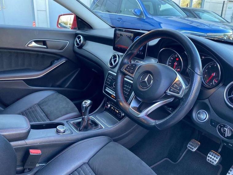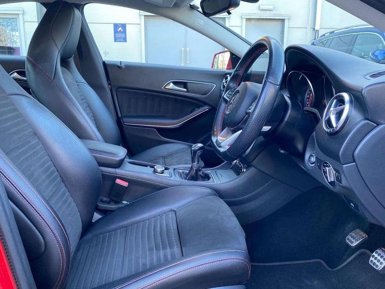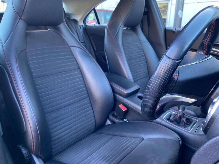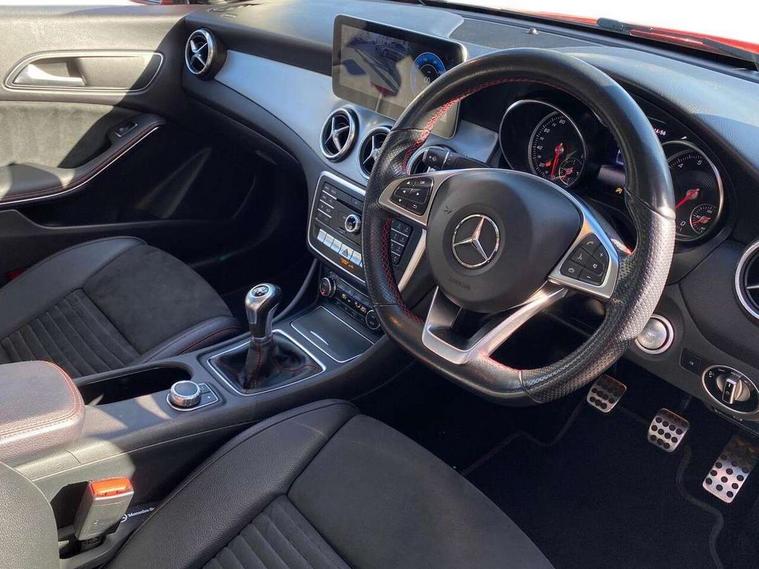 7" tablet style colour display, Attention assist, Bluetooth system, Cruise control + speed limiter, Direct steering, Door/boot open warning light, DYNAMIC SELECT with a choice of driving modes (ECO, Comfort, Sport, Sport+ and Individual), ECO start/stop function, Lamp failure indicator, Low fluid warning light, Outside temperature gauge, Reversing camera, Service indicator (ASSYST), Trip computer, Lowered comfort suspension, Media interface, Mercedes Audio 20 radio/single CD, USB connection, Adaptive brake lights, AMG body styling, Automatic headlights, Automatic rain sensing wipers, Body colour bumpers, Body colour door handles, Body colour side skirt, Body coloured door mirrors, Chrome beltline trim, Diamond grille with pins in chrome and single louvre in silver, Electric adjustable heated door mirrors, Front and rear electric windows, Halogen headlamps with integrated daytime running lights, Heated rear window with timer, LED tail lamp, LED third brake light, Rear fog lights, 1/3 to 2/3 split folding rear seats, 3 spoke flat bottom multi-function sports leather steering wheel in black with topstitching in red, Artico man-made leather/Dinamica upholstery, Auto Mercedes-Benz child seat recognition sensor, Brushed stainless steel sports pedals with rubber studs, Centre console with cupholders, Courtesy light in boot, Door sill illumination, Floor mats with red edging, Front centre armrest with storage box, Front door courtesy lamps, Front footwell lights, Front head restraints, Front seat cushion length adjustment, Front sports seats, Height adjustable front seats, Height/reach adjustable steering column, Illuminated glovebox, Illuminated storage compartment, Isofix rear child seat fastenings, Load securing rings in luggage compartment, Reading lights, Rear footwell lights, Rear head restraints, Seat cushion angle adjustment, Sunvisors with illuminated vanity mirrors, Thermotronic luxury automatic two zone climate control, 3x3 point rear seatbelts, ABS with Brake Assist, Active bonnet, Adaptive brake system, ASR, Brake pad warning light, Child lock for rear electric windows, Child proof door locks, Crash responsive emergency lighting, Drivers knee airbag, Dual stage driver/passenger airbags, Electronic parking brake, ESP curve dynamic assist, Front and rear seatbelt reminder, Front brake callipers with Mercedes Benz lettering, Front passenger airbag deactivation, Front passenger seat occupancy sensor, Front side airbags, Hill start assist, Tyre pressure monitoring system, Warning triangle and first aid kit, Window airbags, Anti theft alarm system, Chrome surround electric key, Immobiliser, Keyless Go, Remote central locking, Chrome air vent surrounds, Light aluminium with longitudinal grain interior trim, 18" AMG 5 twin spoke alloy wheels, Tirefit,