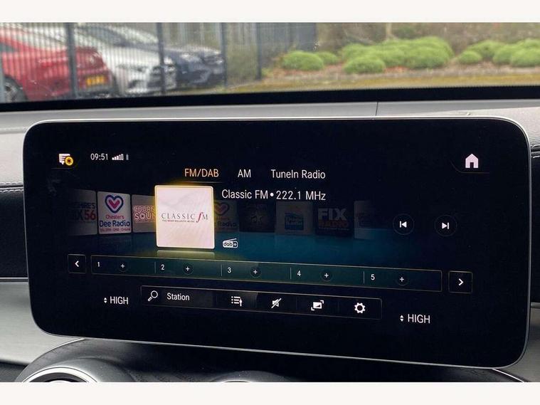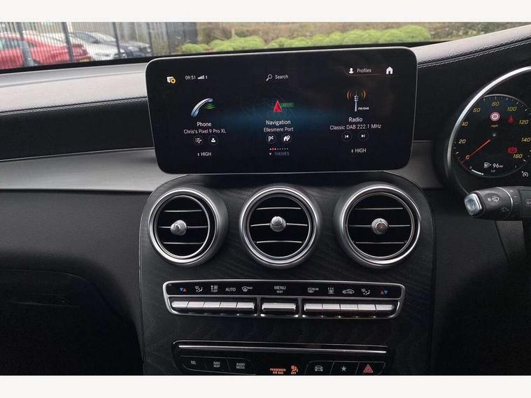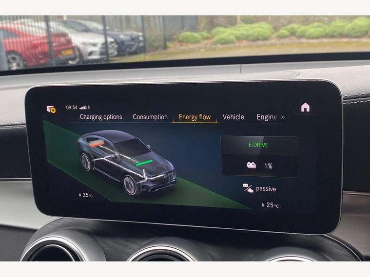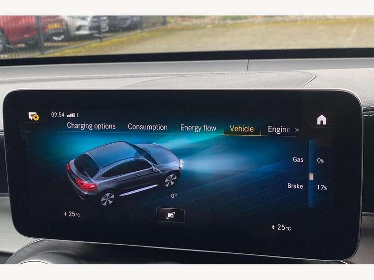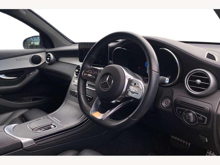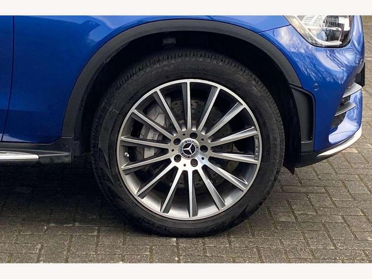 Active parking assist with parktronic system, Attention assist, Bluetooth interface for hands free telephone, Collision prevention assist plus, Cruise control with speedtronic variable speed limiter, Direct steer speed sensitive steering, DYNAMIC SELECT with a choice of driving modes (ECO, Comfort, Sport, Sport+ and Individual), Easy pack automatic powered tailgate, eCall emergency call system, ECO start/stop function, Hard disk navigation, Hey Mercedes Voice activation, Instrument cluster with12.3-inch digital instrument cluster display. High resolution instrument cluster screen with choice of three display styles, MBUX Interior assistant, Mercedes connect me with remote online services, Multi function trip computer, Outside temperature display, rear seatbelt status indicator, Remote and charging services plus, Remote boot release, Reversing camera, Service indicator (ASSYST), Smartphone integration with Apple CarPlay and Android auto, Traffic sign assist, 1 x type 2 and 3 phase 4m straight wallbox cable, 4MATIC permanent four wheel drive, 50 litre fuel tank, 7.4 kW onboard charger, 9G TRONIC plus automatic transmission with steering column gear selector, DIRECT SELECT steering wheel gearshift paddles, Petrol Particulate Filter (PPF), Sports suspension tuned for improved handling and driving dynamics, Advanced sound system, MBUX multimedia system with DAB digital radio and touchpad, Media display 10.25-inch touchscreen display, Pre installation for Mercedes Benz Link, USB ports x 2 in centre console, Adaptive brake lights, Adaptive high beam assist, AMG bodystyling - AMG front apron with sporty air intakes and chrome trim element, AMG diffuser-look rear apron with insert in black, Body colour door mirrors, Body coloured bumpers, Digital light LED headlights, Electric windows one touch open/close, Electrically adjustable and heated door mirrors, EQ badging, Front, side and rear exterior chrome trim, Headlamp assist automatic headlamp activation, Headlight washers, High level LED brake light, Integrated LED daytime running lights, LED indicator lights, LED rear fog lights, LED tail lamp, Motor way mode function and locator lighting, Privacy glass with dark glass from B pillar backwards, Radiator diamond grille, Rain sensor windscreen wipers, Range adjustable headlights, Rear side wing doors, Rear wiper, Roof spoiler, Running boards, Tinted glass all round with single layer safety glass, Tinted rear windows, Two chrome plated tailpipe trim elements, Variable front intermittent wipers, Welcome and follow-me home light functionality, 2 way rear head restraints, 3 seat bench in 2nd row, 3-spoke multifunction sport AMG steering wheel in black nappa leather with flattened bottom section, chrome insert and perforated leather in grip area, 40:20:40 split folding rear seats, Ambient lighting, AMG floor mats with edging and embroidered AMG lettering, AMG sports seats, Artico man-made leather upper dashboard with contrast topstitching, Automatic child seat recognition sensor, Black roof lining, Dividing net - rear, Double cup holder in centre console, Easy-pack removable load compartment cover, Front armrest with storage box, Front door sills with Mercedes Benz lettering, Front head restraints, Front passenger seat, Front seats with electric adjust (backrest, height and seat cushion inclination) with 4 way electric lumbar support and manual cushion depth adjust, Heated front seats, Height/reach adjustable steering column, Illuminated and lockable glove compartment, Illuminated door sills, Leather upholstery, Pre-entry climate control, Rear top tether child seat ISOFIX attachment, Sports pedals with stainless steel surfaces and rubber studs, Steering wheel with touch control buttons, THERMOTRONIC 3 zone automatic climate control, Interior lighting pack - GLC, Mirror pack - GLC, Storage pack - GLC, 3 rear 3 point seatbelts, Active bonnet, Adaptive brake system with HOLD function and brake drying in the wet, ASR traction control, Black seat belts, Brake calipers with Mercedes-Benz lettering + perforated brake discs, Child proof door locks, Dual-stage airbags - driver and front passenger, driver knee bag and window bags for driver, front passenger and rear passengers, Electronic parking brake, Electronic stability programme (ESP) with curve dynamic assist and cross wind assist, Front and rear seatbelt reminder, Front passenger seat occupancy sensor, Front seatbelt pretensioners, Hill start assist, Radar-based recuperation, Tyre pressure monitoring system, Warning triangle and first aid kit, Alarm system/interior protection/immobiliser, Automatic door locking, KEYLESS-GO starting function, Remote central locking, Open pore black ash wood trim, 20" AMG multi spoke design alloy wheels painted in titanium grey with high sheen finish, Summer tyres, Tirefit tyre sealant kit,