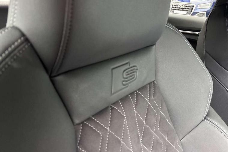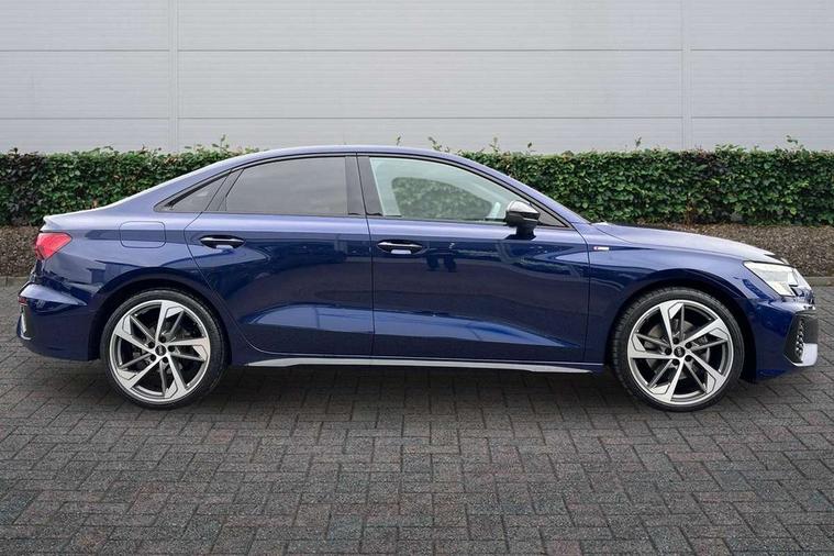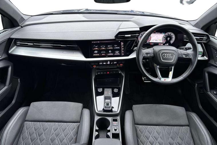 Audi connect emergency call and service, Audi drive select (Auto, Comfort, Dynamic, Efficiency and Individual), Audi smartphone interface, Audi virtual cockpit plus - 12.3" dynamic digital instrument cluster, Automatic start/stop system with recuperation, Bluetooth interface, Collision avoidance assistant, Electromechanical power speed sensitive steering, Lane departure warning system, MMI Navigation Plus with high resolution 10.1" colour touch screen display, Service indicator, Voice control system with natural language interaction, Sports suspension, 2x USB Type C ports (for charging and data transfer), 6 passive loudspeakers, CD player, DAB Digital radio, 3rd brake light, Acoustic glass windscreen, Audi matrix LED headlights, LED rear lights, dynamic front and rear indicators and headlight cleaning system, Auto dimming frameless rear view mirror, Electrically adj heated/folding + automatically dimming exterior mirrors + automatic kerb side function for passenger side exterior mirror, Front electric windows, Illuminated door sills with aluminium inserts at the front with S logo, Integrated LED indicators in door mirrors, LED daytime running lights, Light and rain sensors, Model and engine designation badges at rear, Privacy glass - dark tinted rear window, rear door and side windows, Rear electric windows, S roof spoiler, 12V socket and storage compartment in front centre console, 4 way electrically adjustable lumbar support for driver and front passenger, 40/20/40 split folding rear seat bench with cupholder, Black cloth headlining, Dual zone electronic climate control, Electrically adjustable front seats, Front and rear centre armrest in leather, Front and rear headrests, Front/rear floor mats, Heated front seats, Height and reach adjustable steering wheel, Interior lighting - glove compartment light and right hand side, Luggage compartment floor covering, Seat side bolsters, Stainless steel pedals and front footrest in black, Aluminium interior elements pack - A3, Black styling pack - A3/S3, Dinamica microfibre/mono.pur 550 artificial leather pack - A3 Saloon, Extended ambient lighting pack - A3/S3 Saloon, LED interior lighting pack - A3 Saloon Edition 1/Vorsprung, 3x3 point rear seat belts, Driver and front passenger airbag with passenger airbag deactivation, Electronic Stabilisation Control (ESC) including ABS, ASR and EDL, First aid kit with warning triangle and 2 safety vests, Front side airbags with head airbags and interaction airbag, Hill hold assist, Pre-sense front with pedestrian and cyclist detection, Seatbelt monitoring, Tyre pressure loss indicator, Anti theft alarm, Anti-theft wheel bolts, Electronically operated child lock, Immobiliser, Remote control central locking, Aluminium air vent surrounds, Aluminium trim elements, Dark spectrum aluminium inlays, accent surfaces in the dashboard and centre console in platinum grey silk effect paint finish, 19" 5 arm trapezoid design alloy wheels in titanium matt grey with diamond cut finish,