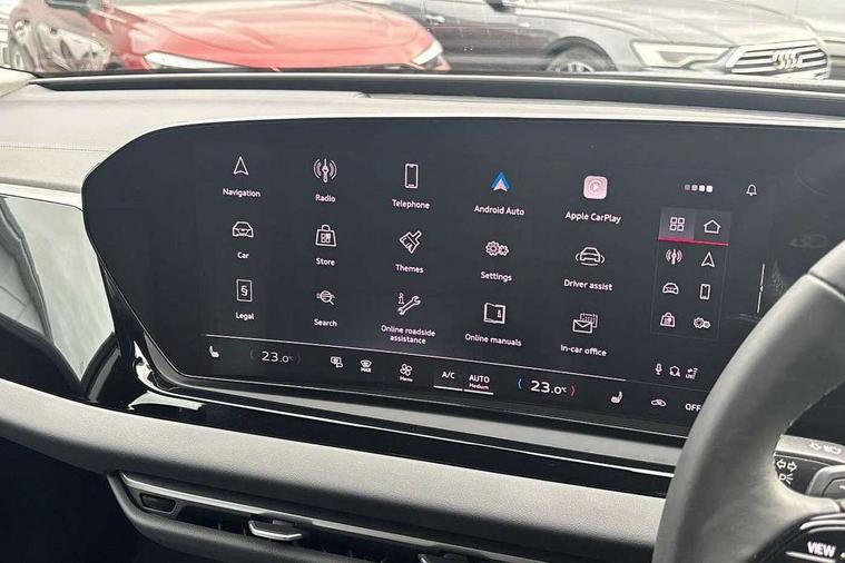 Adaptive cruise control, Advanced driver attention and fatigue montior, Audi application store, Audi assistant, Audi connect emergency call and service, Audi drive select, Audi smartphone interface, Audi virtual cockpit plus with 11.9" OLED colour display, Automatic start/stop system with coasting functionality, Camera based traffic sign recognition, Intersection assist, Lane departure warning, MMI navigation plus with high resolution 14.5" OLED touchscreen colour display, Park assist plus, Parking system plus with 360 display, Progressive steering with servotronic, Rear view camera, Swerve assist and turn assist, Traffic sign based speed limiter, Comfort suspension, 2 USB-C ports in both the front and rear, Audi sound system impressive sound with 10 loudspeakers including centre speaker and subwoofer, 6-channel amplifier with a total output of 180 watts, DAB digital radio reception, Smartphone compartment with wireless charging, Aluminium window trims, Auto dimming rear view mirror, Body colour door mirrors, Door mirrors - electrically adjustable, heated, folding and auto dimming on both sides, Front and rear electric windows, Front door sill trims with aluminium inlays, illuminated, High beam assist, LED headlights Plus incl. digital daytime running lights, turning light, all-weather light, motorway light, manouevring light and intersection light, LED rear lights pro incl. dynamic rear indicators and illuminated light strip with animated coming and leaving home function, LED third brake light, Rear and side windows with heat insulating glass, Rear boot, Rear side wing doors, Sport bumpers, radiator grille and diffuser in scandium grey and diffuser insert in matt selenite silver, White rhombus logo projection light in exterior mirrors, Windscreen with acoustic glazing, 3 rear headrests, 3 seat rear bench, 3-zone automatic climate control, 40:20:40 split folding rear seat bench with centre armrest and cup holders, Comfort front centre armrest, Front and rear floor mats, Front seats with manual adjustment for position and 4-way electric lumbar support, Front sport seats with integrated head restraints, Heated front seats, i-Size child seat mounting on the front passenger side and outer rear seats, i-Size and top tether on the outer rear seats, Luggage compartment lid, electrically opening and closing, Manual steering column height and depth adjustment, Rock grey cloth headlining, Single front passenger seat, Twin leather upholstery, Twin spoke leather steering wheel with multi-function buttons with touch control, shift paddles and trim in chrome look, Ambient lighting package plus - A5, 3x3 point rear seat belts, Driver airbag, Electric child safety locks, First aid kit with warning triangle and vests, Front emergency brake assist, Front passenger airbag, Front passenger airbag deactivation, Front side airbags with head airbag system and front interaction airbag, Hill hold assist, Seat belt monitoring with rear seat occupant reminder, Tyre pressure loss indicator, Anti theft alarm, Anti-theft wheel bolts, Keyless Go, Accent surfaces and control buttons in gloss black, Black dashboard with contrast stitching, Inlays in matt brushed aluminium, silver, Softwrap in leatherette with contrast stitching, Upper and lower interior elements in leatherette, Tyre repair kit,