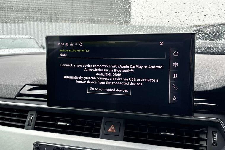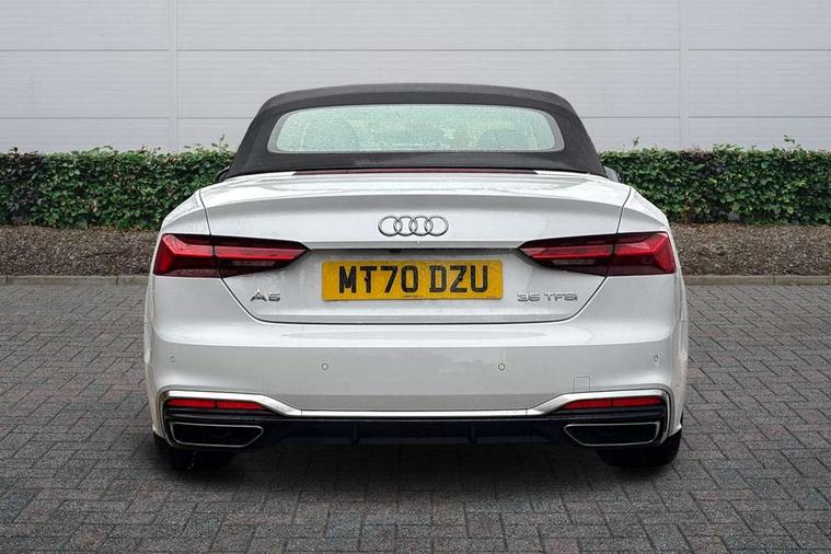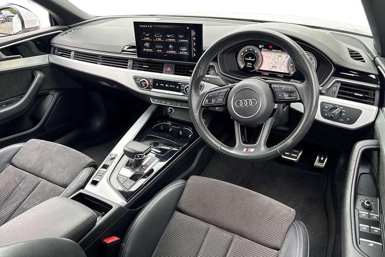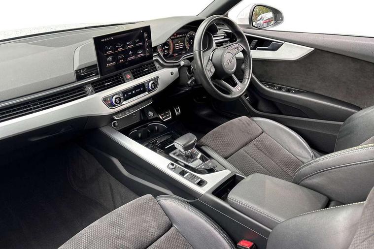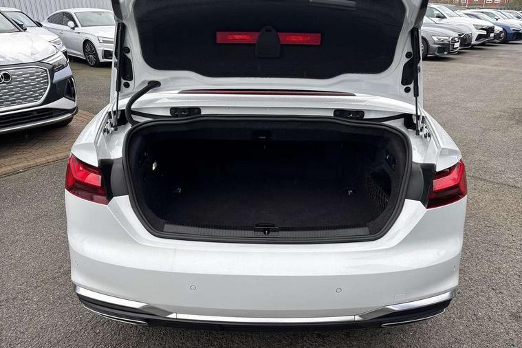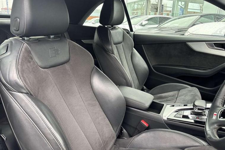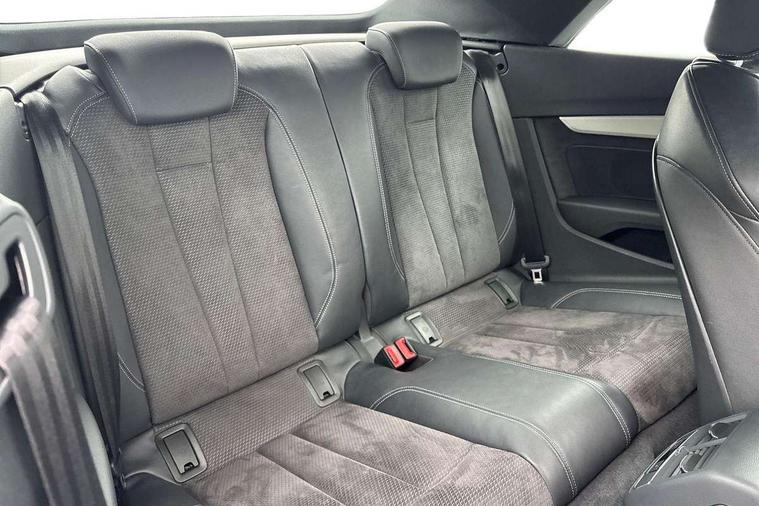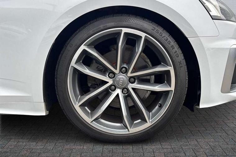 Audi connect safety and service (e-call), Audi drive select (Auto, Comfort, Dynamic and Individual), Audi parking system plus with front and rear sensors, Audi phone box with wireless charging, Audi smartphone interface, Audi virtual cockpit - 12.3" full colour digital instrument cluster, vehicle/engine speed, Radio/media information+Driver assistance systems, Automatic start-stop system with coasting functionality and efficiency programme, Bluetooth interface, Electric boot lid release, Electro-mechanical power steering, Email, calendar and text messages displayed via MMI, MMI nav+ with MMI touch - 10.1" high resolution MMI display, touch sensitive, 3D map, route/country info, dynamic route guide, personal route assist, Rear view camera, Service interval indicator, Voice control system, Sports suspension lowered by 23mm, 8 passive loudspeakers, CD player, DAB digital radio reception, Two additional USB ports for rear passenger in rear centre console, Two SDXC card slots, Audi matrix LED headlights with LED rear lights + dynamic front and rear indicators, Auto dimming rear view mirror, Body colour bumpers, Body colour door handles, Body colour front spoiler lip, Body colour side sill trim, Body coloured door mirrors, Electric adjustable heated door mirrors, Electric folding door mirrors, Electric front windows, Front fog lights, Honeycomb structure radiator grille in grained matt black, Matt aluminium silver tailpipe trim, Rain and light sensors, S line badges on front wings, S line front and rear bumpers with side skirts, S Line rear diffuser in matt titanium black with trim strip in matt aluminium silver, Side air inlets in grained matt black with matt aluminium silver inlay, Towbar preparation, Windscreen with acoustic glazing, 4 way electric lumbar support for driver and front passenger, 50/50 split folding 2 seater rear bench seat, Adjustable steering column, Black cloth headlining, Black perforated leather gearknob, Contrast stitching on seats, steering wheel and gear lever gaiter, Deluxe 3 zone electronic climate control, Front centre armrest, Front head restraints, Front/rear floor mats, Heated front seats, Illuminated door sill trim with S logo, ISOFIX child seat mounting and top tether, Luggage compartment mat, Manual seat adjustment, Rear headrests, Stainless steel pedals, Sunvisors with vanity mirrors, Tool kit, LED interior light pack - A5/RS5, 6 airbags - Driver, front passenger, curtain and side airbags, Electromechanical parking brake, Electronic Stabilisation Control (ESC) including ABS, ASR and EDL, Front passenger airbag deactivation, Height adjustable front seatbelts, Hill hold assist, Multi collision brake assist, Pop-up bonnet for pedestrian protection, Seatbelt monitoring, Tyre pressure warning, Variable restraint system, Warning triangle and first aid kit, Anti theft alarm system, Anti theft wheel bolts, Immobiliser, Keyless Go, Remote central locking, Matt brushed aluminium inlays, Tyre repair kit,