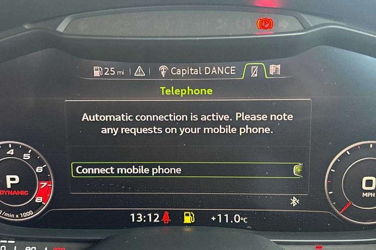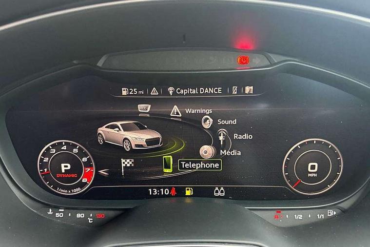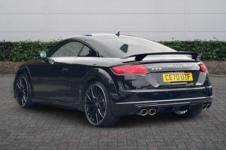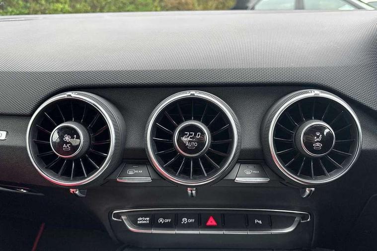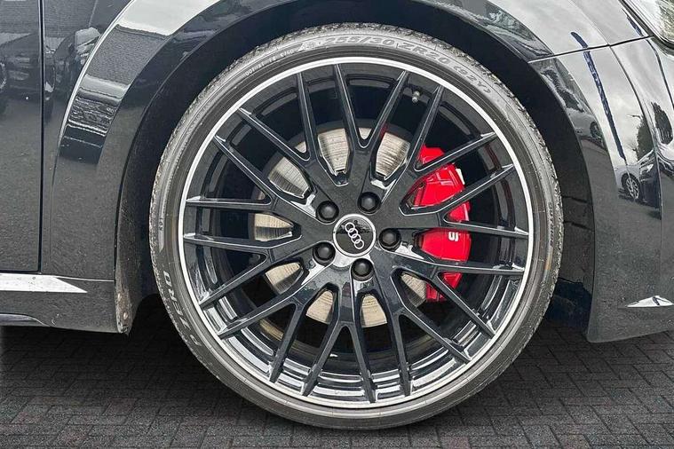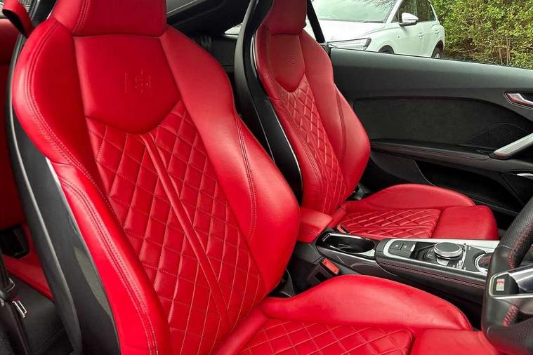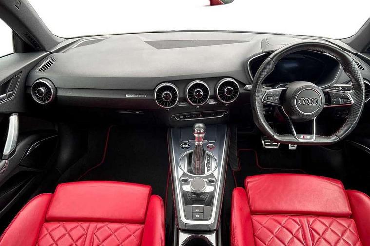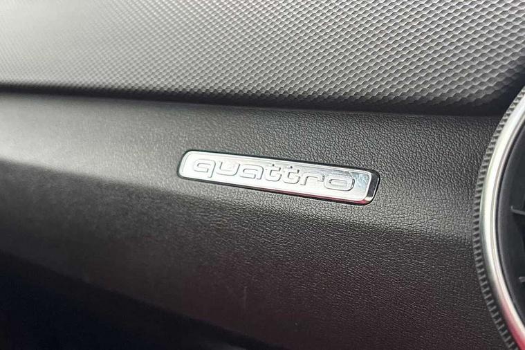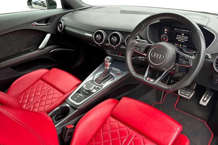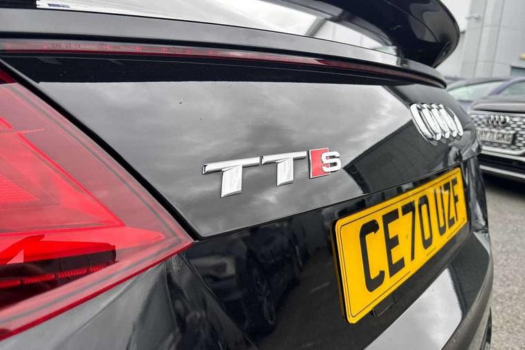 Audi active lane assist, Audi connect, Audi drive select with 4 Pre configured modes, Audi phone box, Audi smartphone interface, Audi Virtual Cockpit with sport gauge, Cruise control + speed limiter, MMI Navigation plus, MMI touch panel, Mobile phone preparation with bluetooth interface, Progressive power assisted steering, Service interval indicator, Start/Stop system with energy recuperation, TP memo, Audi magnetic ride, TTS suspension, AM/FM radio, Bluetooth audio streaming, DAB Digital radio, MMI Radio with CD player and SD/XC card slot, Audi Beam uses LEDs to project the Audi Sport logo, Auto dimming rear view mirror, Auto headlight range control, Black chrome tailpipe, Black door mirrors, Dark privacy glass from B-pillar backwards, Dynamic rear indicators, Electric folding door mirrors, Electric front windows, Green tinted heat insulating glass, Headlight wash system, LED daytime running lights, LED headlights with LED rear lights + dynamic rear indicators, Light and rain sensors, Platinum grey rear diffuser, S body styling, Sunband for windscreen, 12V socket, 3 spoke flat bottomed high multi-function leather sport steering wheel with gearshift paddles, 4 way electric lumbar support for driver and front passenger, Black headlining, Chrome slate grey interior trim, Deluxe auto air conditioning with integrated digital display, Door sill trims with aluminium inlay and TTS logo, Extended aluminium look with stainless steel pedals, Front centre armrest, Heated front seats, Height adjustable driver's seat, Height adjustable front head restraints, Height/reach adjust steering wheel, Interior elements in quartz anthracite, ISOFIX child seat mounting for front passenger seat with airbag deactivation, Perforated leather gearknob, Rear head restraints, Rear top tether child seat ISOFIX attachment, Split folding rear seat, Top tether anchor plate for isofix child seat, Black styling pack - TT, Leather pack - TTS, LED interior light pack - TT/TT RS, Non smoking pack - TT/TT RS, 3 point front seat belts, ABS, ASR traction control, Brake energy regeneration, Curtain airbags, Driver and front passenger airbag with front passenger airbag deactivation, EDL traction control, Electromechanical parking brake, ESP, First aid kit, Front side airbags, Head airbags, Hill hold assist, Seatbelt warning, Tyre pressure warning, Warning triangle, Anti theft alarm, Anti theft wheel bolts, Immobiliser, Keyless Go, Remote central locking, Matt brushed aluminium inlays, Tool kit, Tyre repair kit,