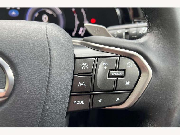 4 driving modes EV/Eco/Normal/Sport, 7" display in instrument binnacle, Bluetooth telephone connectivity, eCall emergency system, Electric speed sensitive power steering, Intelligent parking sensors - 4 front and 4 rear, Lane change flasher function, Lexus link connect - Cloud based navigation, cloud based voice assistant, always online and 9.8" VGA touchscreen, Push button starter, Reversing camera with back guidelines, Service interval indicator, Tailgate, Wireless Apple CarPlay/Android Auto, All Wheel Drive (AWD), Hybrid automatic transmission, Vehicle Dynamics Integrated Management (VDIM), Vehicle Stability Control (VSC), 10 speakers, 4 USB ports - 2 front, one USB C, 2 rear USB C, DAB Digital radio, Auto dimming interior rear view mirror, Automatic headlights, Bi LED headlights, Double hidden exhaust pipes, Front and rear one touch power windows, with anti-jam protection, Heated, auto-folding, auto-dimming outside mirrors with reverse tilt function and turn indicators, LED brake lights and rear lights with emergency brake signal, LED daytime running lights, LED Indicators, Light green UV acoustic rear doors & rear glass, Power back door system, Rain sensor windscreen wipers, Rear side wing doors, Rear wiper, Roof rails, 12V accessory port centre console and luggage compartment, 2 cupholders in front centre console, 2 x fixed shopping bag hooks in boot, 2 x sun visors with vanity mirror and lamp, 3 seat bench in 2nd row, 4 x tie down hooks in the boot, 6 tie down hooks in boot, 6 way manually adjustable front seats, 60/40 split folding rear seat, Adjustable rear seat backrest, Card holder installed in driver and passengers sun visors, Centre armrest with storage box, Dual climate control air conditioning system, Front and rear head restraints, Front and rear textile carpet mats, Front passenger seat, Heated front seats, Leather gear lever, LED interior illumination, Power adjustable leather steering wheel with paddle shifts, Rear centre armrest with 2 cupholders, Tahara leather upholstery, Whiplash Injury Lessening (WIL) feature (active headrest) for seats, 2 x Isofix child rear seat restraints, 3 point ELR front seatbelts with pretensioners, 3x3 point rear seat belts, ABS, Adjustable seat belt anchor points, Driver and front passenger 2 stage airbag, Driver/front passenger side airbags, Drivers knee airbag, E-Latch electric door release, EBD + Brake Assist, ECB (Electronically Controlled Brake System), Electronic parking brake, Front and rear curtain shield airbags, Front center airbag, Front passenger seat cushion airbag, Hill assist control, Lexus safety system - dynamic radar cruise control, pre collision system day and night, lane tracing assist, road sign, automatic high beam, OTA, Manual rear child locks, Passenger airbag cut-off device, Traction control, Tyre pressure warning, Anti-theft system with alarm, intrusion sensor, glass breakage sensor, tilt sensor and engine immobiliser, Locking wheel nuts, Speed sensitive auto door locking, Ultra Wide Band (UWB) Anti-theft system, VIN Window etching, Black microdot inlay, Tyre repair kit,