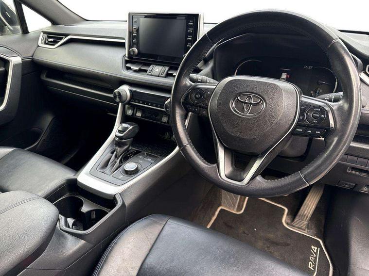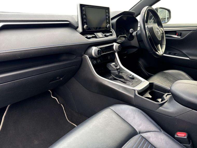 7" colour TFT display, Adaptive cruise control with lane trace assist, Adjustable speed limiter, Apple car play and Android auto, Blind spot monitoring with rear cross traffic alert, Bluetooth system, Cyclist Detection, Drive mode selector, eCall emergency call system, ECO-driving indicator, Electric power steering, EV audible alert, Hybrid system indicator, Lane departure warning system, Lights on warning, Night Time Pedestrian Detection, Pedestrial detection, Power boot opening and closing, Rear parking camera, Rear parking sensors, Remote boot door release in cabin, Tachometer, Touch 2 Go navigation system including 3D maps and voice control, Traffic sign recognition, Trip computer, Voice control system, Vehicle Stability Control (VSC), 6 speakers, 8" Multimedia display touch screen, Auxiliary socket for external MP3 player, DAB audio, Steering wheel mounted audio controls, Toyota touch media system, USB connection, Auto dimming interior mirror, Auto high beam, Automatic headlamp levelling, Automatic headlights, Automatically retractable door mirrors, Bi-tone black roof, Black door mirrors, Black rear spoiler, Black roof rails, Black Shark-fin antenna, Body colour door handles, Body coloured bumpers, Door mirror puddle lights, Electric adjustable door mirrors, Emergency brake-light signal (EBS), Follow me home headlights, Front fog lights, Gloss black front bumper insert, Gloss black rear bumper insert, Headlight cleaners, Heated door mirrors, LED daytime running lights, LED High mounted stop lamp, LED rear lights, Meshed upper front grille, Power front windows, Power rear windows, Privacy glass, Projector LED headlights, Rear screen wiper - intermittent, Rear windscreen defogger, Silver front under-run, Silver rear under-run, Trailer Sway Control, Turning signal integrated indicators in door mirrors, 3 rear headrests, 60/40 split fold rear seat back, Black roof lining, Boot light, Clean air filter, Driver and front passenger personal light, Driver and front passenger Whiplash Injury Lessening seats, Driver and passenger sunvisors with illuminated vanity mirrors, Dual sided deck board in boot, Dual zone automatic air conditioning, Floor mats, Folding rear centre armrest, Front and rear bottle holders, Front centre armrest, Front footwell lights, Front headrests, Front seat and rear pockets, Front sport seats, Front/rear roof mounted assist grips, Heated driver and front passenger seats, Isofix child seat preparation, Leather gear shift with chrome surround, Light blue ambient lighting on front cupholders and open tray, Manual telescopic and tilt 3-spoke leather steering wheel with Chrome insert, Manually reclining and sliding front passenger seat, Pollen filter, Power height-adjustable sliding reclining and lumbar support for driver seat, Rear coat hooks, Rear door armrests, Rear passenger air vents, Reclining rear seats, Satin chrome interior door handles, Sunglasses holder, Synthetic leather upholstery, 3x3 point rear seatbelts, ABS/EBD, Adjustable front driver and passenger seat belt extender, Brake assist function, Child proof door locks, Collision mitigation braking system, Driver/Front Passenger airbags, Driver/front passenger side airbags, Drivers knee airbag, Electronic parking brake, Electronic Stability Programme (ESP), Emergency brake light system (EBS), Front and rear curtain airbags, Front and rear seatbelt reminder, Hill start assist, Passenger airbag cut-off device, Seatbelt pretensioners with load limiters, Traction control, Tyre pressure warning, Alarm/immobiliser, Glass-breaking alarm sensors, Light - on and Key in reminder, Remote central locking, Smart entry + Smart start, Speed sensitive auto door locking, Tilt detection sensors, Piano black centre console with silver insert, Soft-touch black lower dashboard, Soft-touch black upper dashboard with silver insert, Full size spare wheel,