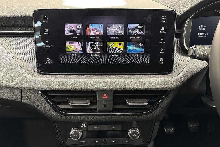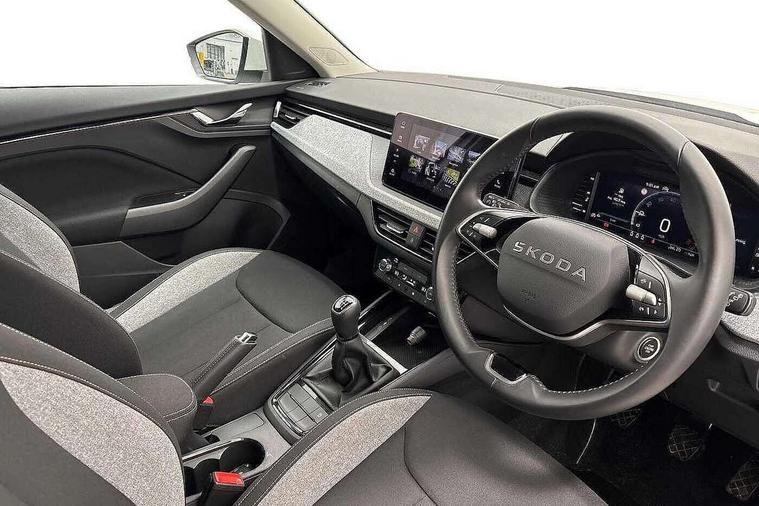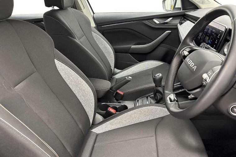 Advanced driver attention and drowsiness monitor, Bluetooth system, E-call, Front assist system, PAS, Rear parking sensors, Rear view camera, Service indicator, Speed limiter, Traffic sign recognition, Virtual cockpit with 10.25" display, Voice control system, Wireless smartlink, 4 USB C ports, 8 Speakers, 9.2" Skoda navigation display, DAB Digital radio, Auto dimming rear view mirror, Automatic headlight control with coming home and leaving home feature, Black roof rails, Body colour bumpers, Body colour door mirrors and handles, Chrome grille surround, Front and rear electric windows, Full LED headlights, Heated rear window, LED brake lights, LED daytime running lights, LED front turning lights, LED high beam, LED low beam, LED third brake light, Rear LED fog light, Rear side wing doors, Rear wiper, Ticket holder inside windscreen, 12V socket in luggage compartment, 3 seat bench in 2nd row, Black hotstamping, Cargo elements, Chrome inner door handles, Driver and passenger sun visors with vanity mirror, Dual zone climate control, Front and rear roof lights, Front centre armrest, Front head restraints, Glove compartment with illumination, Height adjustable driver seat, Height adjustable front passenger seat, Ice scraper, Inner circulation control with pollen filter, ISOFIX on front passenger seat, Isofix preparation for back seats, Krepp recycled decor inserts, Leather gearknob and handbrake lever, Loft cloth upholstery, Manual lumbar support for front seats, Net package and top tether hooks in boot space, Net under rear shelf, Overhead glasses storage compartment, Pocket on the back of both front seats include mobile phone pockets, Rake/reach adjustable steering wheel, Reading lights, Satin black door inserts, Single front passenger seat, Textile floor mats, Third rear headrest, Top tether for front passenger seat, Umbrella in driver's door, 3x3 point rear seatbelts, Airbags - driver and front passenger, Disc brakes, ESP, Extended and predictive pedestrian/cyclist protection, Front passenger airbag deactivation switch, Front side airbags with curtain airbags, Hill hold control, Manual leather parking brake, Manual rear child locks, One tone horn, Seatbelt reminder for driver an co-driver, Traction control, Tyre pressure monitor, Anti-theft alarm system with interior monitoring, backup horn, towing protection and remote central locking with SAFE system, Anti-theft wheel bolts, Electronic engine immobilizer,