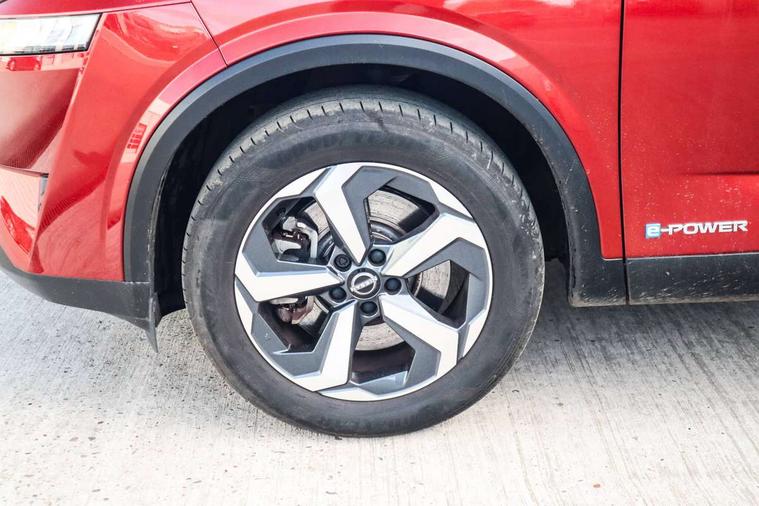 Android auto/Apple CarPlay (Wired), Blind spot warning, Drive modes (sport, normal, eco), Electric speed sensitive power steering, Emergency and breakdown call, Front and rear parking sensors, Full Digital 12.3" TFT Digital Combimeter, Google maps services - search, weather, 3D maps and Google street view, Idle stop/start system, Intelligent around view monitor, Intelligent Cruise control (ICC), Intelligent driver alert system, Intelligent forward collision warning, Intelligent lane intervention, Lane departure prevention, Lane departure warning system, Maximum speed limiter, Moving object detection, Nissan connect 12.3 inch touchscreen infotainment system, Nissan connect navigation, Push button starter, Rear cross traffic alert, Rear view camera, Remote control services - door locks, lights, horn and car locator, Telematics - notifications and connectivity services, TomTom live traffic services, Traffic sign recognition with legal speed adjustment, Trip computer, Virtual personal assistant and firmware over the air capability, Wireless apple carplay, 6 speakers, AM/FM audio system with DAB, Bluetooth audio streaming, Front USB connections (Type-A and Type-C), Rear USB charging only ports (Type-A and Type-C), Auto dimming rear view mirror, Auto rear wiper when reversing, Automatic hazard signal with emergency stop signal, Body colour mirror caps, Body coloured door handles, Bodyside mouldings, Chrome side window finisher, Door handle with button, e-POWER badging, Electric auto folding door mirrors, Electrically adjustable and heated door mirrors with LED turn indicator, Follow me home headlights, High beam assist, Intelligent auto headlights, LED daytime running lights, LED Headlights, LED rear lights, One touch front and rear electric windows with remote opening and closing, Partially body coloured bumpers, Privacy glass, Rear bumper with graphite insert, Rear reversing light (bulb lighting), Rear roof spoiler, Rear side wing doors, Rear styling plate, Shark fin antenna, Splash free rain sensing wipers, Super UV and infrared cut glass, Three blink turn signal, 12v power socket in dashboard and luggage, 2x Rear coat hooks, 3 bench rear seats in 2nd row, 3 rear headrests, 4 folding assist grip, 6-way manually adjustable driver's seat, 60/40 split folding rear seat bench, Ambient lighting around centre console, Centre console storage tray, Chrome interior door handles, Cloth monoform upholstery, Driver and front passenger sunvisors with illuminated vanity mirrors, Driver seat back pocket, Dual zone automatic climate control with pollen filter, e-POWER shifter, Front and rear door storage, Front centre console and armrest, Front cupholders x 2, Front door with bottle holders, Glovebox with light, Hard trunk cover, Height adjustable driver's seat, Height adjustable front headrests, Height adjustable passenger seat, Leather steering wheel, Luggage board system, Luggage space lighting, Manually adjustable passenger (slide recline + lifter), Multifunction steering wheel, Passenger seat back pocket, Rear armrest with 2 cupholders, Rear door bottle holders, Single front passenger seat, Soft PVC kneepad, Steering wheel switches, Sunglasses holder, Tilt/telescopic adjustable steering wheel, Two rear isofix child seat anchorage points with top tether, Welcome light and console tray ambient lighting, 3x3 point rear seatbelt pretensioners + load limiters, ABS with EBD and brake assist, Active brake limited slip, Auto hold function, Child locks on rear doors, Curtain and front side, far side airbags, Driver and passenger airbags, Driver, passenger and 2nd row rear seat belt reminder, Electronic parking brake, Front seatbelt pretensioners + load limiters, Height adjustable front seatbelts, Hill start assist, Intelligent blind spot intervention, Intelligent front emergency braking with pedestrian, cyclist recognition and junction assist, Intelligent rear automatic braking, Tyre pressure monitoring system, Vehicle dynamic control, Capless fuel filler, Engine immobiliser, Intelligent Key, Remote central door locking with deadlocking, Thatcham Cat.1 alarm, Interior instrumental panel B finisher, 18" Diamond cut alloy wheels, Tyre puncture repair kit,