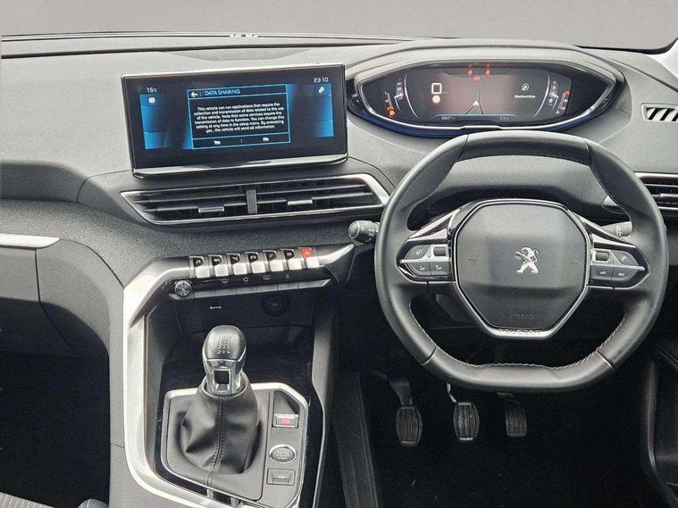 180 degree colour reversing camera, 3D connected navigation with 10" HD touchscreen, Bluetooth telephone facility, Drive modes select (Eco, normal and sport), Driving Time Warning (DAA1), Emergency services call system, Extended Traffic sign recognition, Exterior temperature indicator with ice warning, Mirror screen with mirror link, apple carplay and android auto, Multi function trip computer, PEUGEOT i-Cockpit with 10" high definition capacitive touchscreen, Peugeot i-cockpit with compact multi-function sports steering wheel, PEUGEOT i-Cockpit with configurable 12.3" Head-up digital instrument panel, Programmable cruise control and speed limiter, Speed limit recognition and recommendation, Voice recognition, Dynamic stability control and electronic anti-skid system, Stop/start function, 6 speakers radio with mp3 compatible, DAB Digital radio, USB socket, Aluminium longitudinal roof bars, Automatic triggered rear windscreen wiper in reverse gear, Black rubber side window trim, Black with chrome detailed front wing trim, Body colour door handles, Body colour rear roof spoiler with stainless steel edging trim, Body protectors (bottom of front and rear bumpers + wheel arches + protection at bottom of doors) in black, Chrome frameless 'Classic' grille, Chrome rear bumper facia, Dark tinted rear side windows + tailgate window, Diamond Black door mirror shells, Door mirror mounted LED courtesy floor lighting, Eco LED headlights, Electric folding door mirrors with exterior courtesy LED lighting, Electric operated/heated door mirrors, Front and rear door and sill protectors with polished stainless steel insert, Front bumper lower trim in Silver, Front windscreen wiper with magic wash cleaning system, Gloss black B and C pillar and aerodynamic deflector trim, Gloss black front bumper air scoops, Gloss black rear cluster connecting strip, Gloss black windscreen trim, Headlights left on audible warning, Heated rear windscreen with integrated antenna, LED daytime running lights, LED front indicator, LED rear number plate lighting, LED side indicator lights integrated into door mirrors, LED third brake light, One touch electric front/rear windows with pinch protection, Rear LED Peugeot signature 'Claw Effect' lights, Rear side wing doors, Stainless steel roof arches, 1/3 to 2/3 split folding rear seats, 12V Sockets in dashboard, rear cabin and load area, 2 cupholders in front centre console, 2 cupholders in rear armrest, 2 x Rear reading spotlights, 2x Rear coat hooks, 3x Isofix child seat fittings in the front passenger and outer rear seats, 4 Grab handles retractable and damped, Blue ambient lighting for connecting zone, Blue ambient lighting to front door panels, Blue ambient lighting to headup instrument panel, Brumeo fabric trimmed door armrests, Centre front armrest with butterfly wing opening and illuminated storage compartment, Driver seat lumbar adjustment, Driver seat manual adjustment (longitudinal and back rest angle), Dual zone automatic climate control, Electric power steering with reach and rake adjustable steering column, Flocked glovebox interior, Foldable front passenger seat with picnic table, Footwell illumination, Front interior light with 2 reading spotlights and rear interior light with timer, Front passenger seat manual adjustment (longitudinal and back rest angle), Front seat back map pockets, Gear shift indicator, Height adjustable front seats, Illuminated glovebox, Individual left and right controls in boot for seat folding, Leather steering wheel with detail stitch, LED interior lighting in storage spaces and load area, LED roof interior lighting, Rear bench seat with central armrest and ski hatch, Rear centre console ventilation system, Roof lining - Salin light grey, Satin chrome dashboard trim, Satin chrome digital instrument panel and touchscreen trim, Satin chrome front door panel recess trim, Satin chrome interior door handles, Satin chrome scorpion's tail and toggle switch trim, Seatbelt not fastened audible and visual alert for front seats, Seatbelt unfastened on the move audible and visual alert for front and rear seats, Sunvisors with illuminated vanity mirrors, Two position boot floor, Safety plus pack with high beam assist - 3008, Visibility pack - 3008, 3x Rear three-point retractable seatbelts with force limiters in the outer rear seats, ABS (Anti-lock Braking System) with EBD (Electronic Braking Distribution) and EBA (Emergency Braking Assistance), Adaptive driver and front passenger airbags with passenger airbag deactivation function, Driver and front passenger side airbag, Electric child locking functionality on rear windows and doors, Electric parking brake, Front and rear curtain airbags, Front optimised safety headrests and 3 x rear retractable headrests with height adjustable, Front three point retractable seatbelts with pre tensioners and force limiters, Front ventilated disc brakes and rear disc brakes, Hill start assist, Two tone horn, Automatic door locking when moving off, Automatic hazard light activation upon heavy brake application, Electronic immobiliser, key operated exterior door lock from the left hand door, Perimetric and volumetric alarm with lift and tilt sensor, Peugeot Open and Go System, Remote control central locking with two plip keys, Brumeo fabric Dashboard, front and rear door panel finish, Puncture repair kit including compressor, sealant cartridge and towing eye,