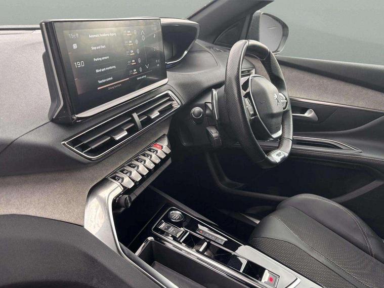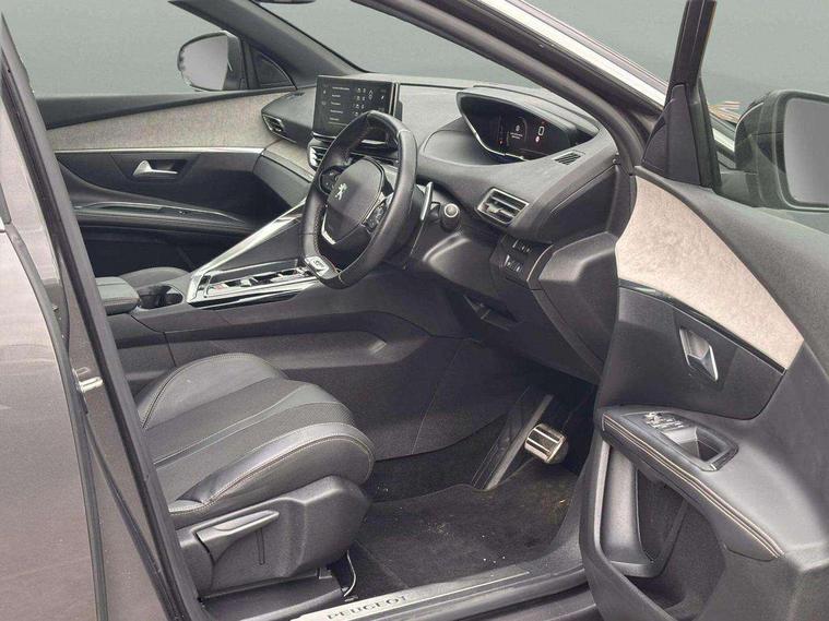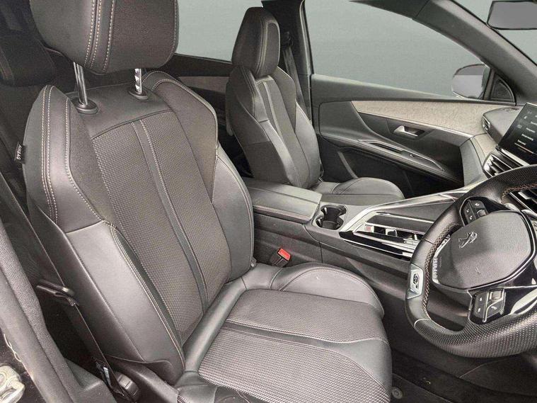 3D connected navigation with 10" HD touchscreen + voice recognition system, Apple car play and Android auto, Bluetooth telephone connection, Drive mode selector (Eco, Normal and Power), Driving timer alert system, Emergency services call system, Extended traffic sign recognition, Exterior temperature indicator with ice warning, Front and rear parking sensors, Lane departure warning system, Multi function trip computer, Peugeot i-cockpit with configurable 12.3" headup digital instrumental panel and compact sports steering wheel, Rear passenger USB charging sockets (x2) (type A), Speed limit recognition and recommendation, Dynamic stability control and electronic anti-skid system, Bi Tuner radio including DAB, USB socket, Aluminium front door sills, Auto self levelling headlights, Automatic activation of hazard warning lights, Black diamond door mirror covers, Black diamond roof, Body colour door handles, Body protectors in black, Dark tinted rear side and tailgate windows, Dynamic frameless design in front radiator grille, Electric adjustable heated door mirrors, Front windscreen wiper with magic wash cleaning system, Full LED headlights with fog mode, Gloss black B and C pillar and aerodynamic deflector trim, Gloss black rear cluster connecting strip, Gloss black windscreen trim, GT emblem (front wings and tailgate), Headlights left on audible warning, Heated rear windscreen with integrated antenna, LED daytime running lights in fang style, LED front indicator, LED rear number plate lighting, LED side indicator lights integrated into door mirrors, LED third brake light, One touch electric front/rear windows with pinch protection, Power folding door mirrors, Rear LED PEUGEOT signature Claw Effect lights (with daylight function) with clear lens and scrolling LED direction indicators, Rear side wing doors, Rear windscreen wiper with auto activation when reversing, Stainless steel door sill scuff plates, Twin exhaust effect trim, 2 cupholders in front centre console, 2 rear reading spotlights, 2 separate seats in 3rd row, 2nd row window blinds, 3 bench rear seats in 2nd row, 3 x 12V power sockets, 4 Grab handles retractable and damped, Aikinite stitching in armrest, gear lever and dashboard facia, Aluminium pedals, Automatic dual zone climate control, Aviation tables on seat back of first row, Blue ambient lighting for connecting zone, Blue ambient lighting for front cupholders, Blue ambient lighting to front door panels, Blue ambient lighting to head up instrument panel, Brumeo fabric trimmed door armrests, Central front armrest with butterfly wing opening and illuminated storage compartment, Electric power steering with reach and rake adjustable steering column, Flocked front door pocket interior with blue ambient lighting, Flocked glovebox interior, Fold flat front passenger seat with picnic table, Footwell lighting, Front interior light with 2 reading spotlights and rear interior light with timer, Front passenger seat manual adjustment (longitudinal and back rest angle), Height adjustable passenger seat, Illuminated glove box, central storage area and load area, Illuminated vanity mirror, Isofix child seat fittings x 3 in the second row, LED interior lighting, Map pocket on front seat backs, Mistral floor mats with Aikinite contrast stitching, Mistral full grain perforated leather steering wheel with aikinite stitch detail and satin chrome 'GT' emblem, Rear ventilation system, Retractable parcel shelf, Roof lining and windscreen pillars in Mistral black, Satin chrome digital instrument panel and touchscreen trim, Satin chrome front door panel recess trim, Satin chrome interior door handles, Satin chrome scorpion's tail and toggle switch trim, Seatbelt not fastened audible and visual alert for front seats, Seatbelt unfastened on the move audible and visual alert for front and rear seats, Second row underfloor storage, Single front passenger seat, Third row seats (can be stored under bootfloor or removed completely), Twin rear coat hooks, Drive assist plus package - 5008, Visibility pack - 5008 GT, ABS + EBD + EBA, Adaptive driver and front passenger airbags including passenger airbag deactivation function, Electric child locking functionality on rear windows and doors, Electronic parking brake + Hill assist, ESP and ASR traction control with deactivation switch, Five 3 point rear safety belts, Front and rear curtain airbags, Front optimised safety headrests and rear retractable headrests (x3), height adjustable, Front side airbags, Front three point retractable seatbelts height adjustable with pre tensioners and force limiters, Front ventilated disc brakes, Rear disc brakes, Rear three-point retractable seatbelts (x3) with pre-tensioners and force limiters in the outer rear seats, Single tone horn, Automatic door locking when moving off, Electronic code immobiliser, Perimetric and volumetric alarm with lift and tilt sensor, Peugeot Open and Go System, Remote control central locking with two plip keys,