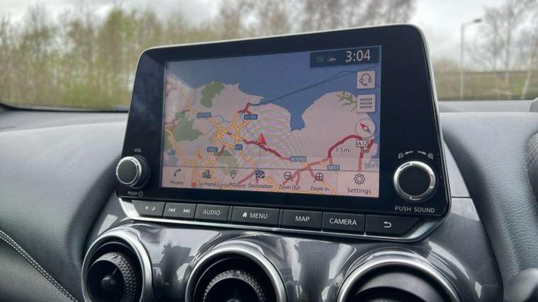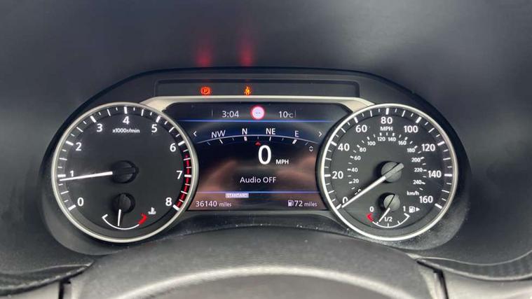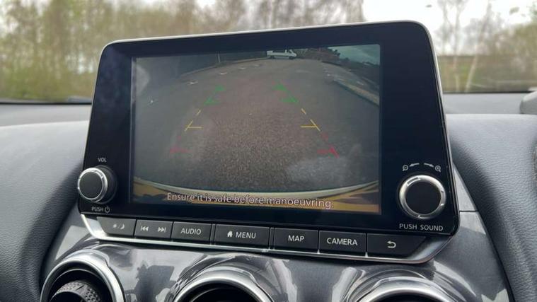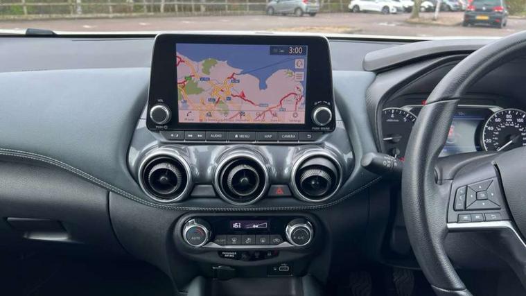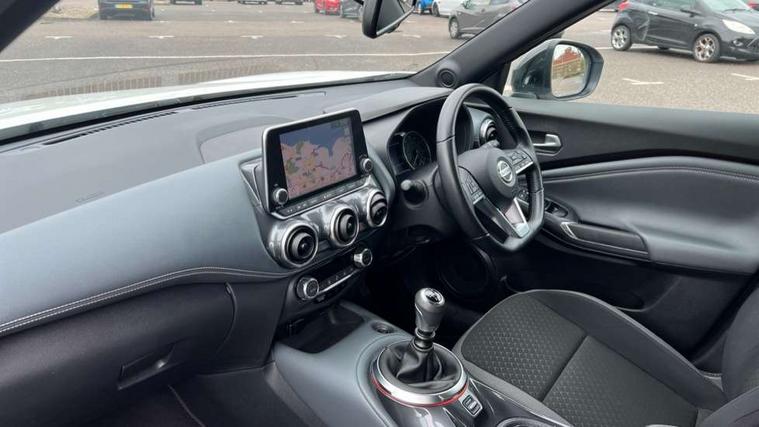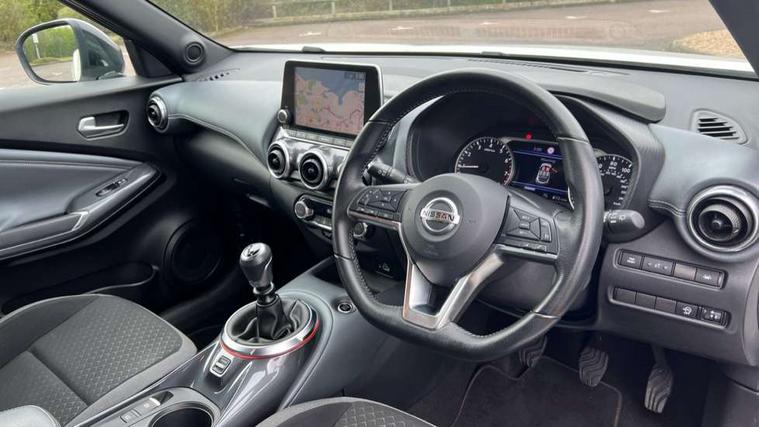 7" full colour TFT screen combimeter, 8" infotainment colour display with touch screen, Apple CarPlay and Google Android auto, Drive modes select (Eco, normal and sport), Emergency and breakdown call, Front parking sensor, Idle start/stop system, Intelligent lane intervention, Lane departure warning system, Nissan connect nav with TomTom traffic, Nissan connect services and Wifi connection, Outside temperature sensor, Power Steering, Rear parking sensor, Traffic sign recognition, Trip computer, Gasoline particulate filter, 6 speakers, Bluetooth system, USB, Aux-in and 12V socket, DAB Digital radio, Rear console USB port, Auto dimming interior rear view mirror, Automatic hazard signal with emergency stop signal, Body colour bumpers, Body colour door handles, Electrically adjustable door mirrors with integrated indicators, Follow me home headlights, Front and rear electric window with one touch driver and passenger window, Heated and auto folding door mirrors, High beam assist, LED daytime running lights, LED front fog lights, LED headlamps, LED rear fog lamp, LED rear lamps, Rain sensor windscreen wipers, Rear privacy glass, Rear spoiler, Rear wiper, Three blink turn signal, 3 height adjustable rear headrests, 60/40 split folding rear seat, Automatic climate control, Card holder on driver sunvisor, Cloth upholstery, Door ambient lighting, Driver and passenger sliding and reclining seats, Driver seat back pocket, Driver side rear coat hanger, Driver/passenger sunvisors and illuminated vanity mirrors, Front and rear cabin lights, Front armrest, Front door pockets with bottle holders, Front head restraints, Front/rear passenger grab handles, Gear console ambient circle lighting, Grey synthetic leather kneepad, Height adjustable driver's seat, Internal chrome door handles, Leather gearshift knob, Leather steering wheel, Luggage board, Luggage space lighting, Monoform sporty seats, Multifunction steering wheel, Passenger seat back pocket, Rear door bottle holders, Telescopic steering wheel adjustment, Two cupholders in front centre console, Two rear isofix child seat anchorage points with top tether, Voice recognition switch on steering wheel, Welcome light and console tray ambient lighting, ABS with EBD and brake assist, Active ride control, Active Trace Control, Driver and passenger airbags, Driver and passenger side airbags, Electric handbrake with auto hold function, Electronic Stability Programme (ESP), Front and rear curtain airbags, Height adjustable seatbelts, Hill start assist, Intelligent emergency braking with pedestrian and cyclist recognition, Seatbelt reminder for driver/front passenger and rear seats, Single tone horn, Three 3 point rear seatbelts, Traction control, Tyre pressure monitoring system, VDC Dynamic Vehicle Control, Ventilated rear brake discs, Alarm, Immobiliser, Intelligent Key with push button starter, Remote central locking,