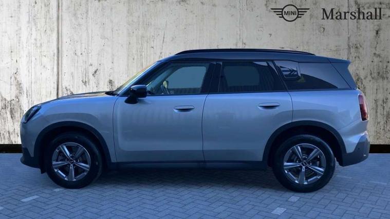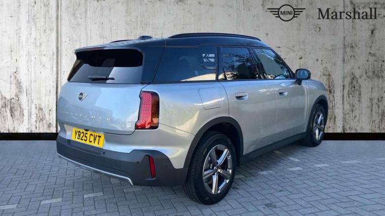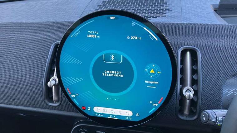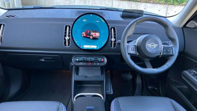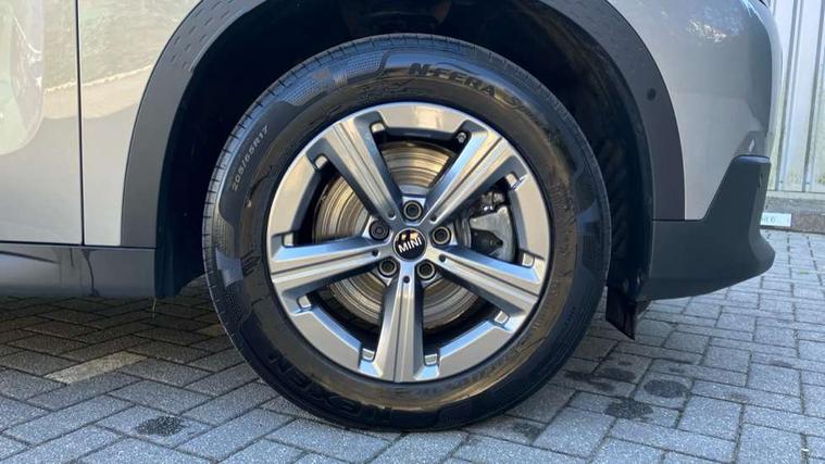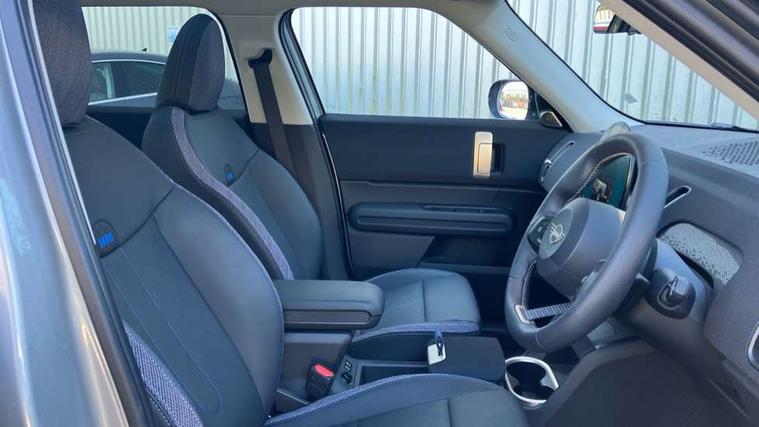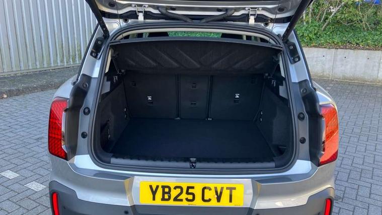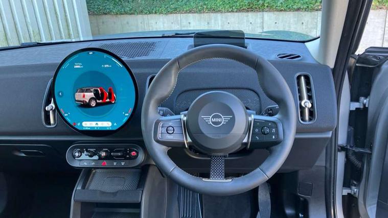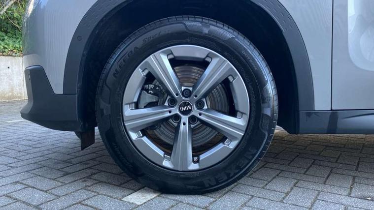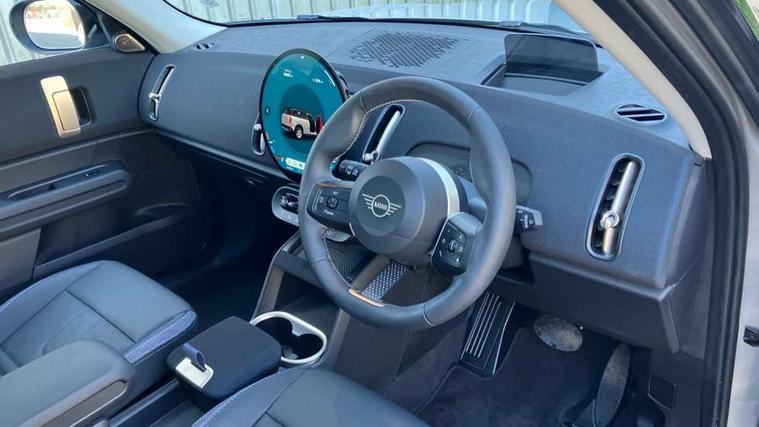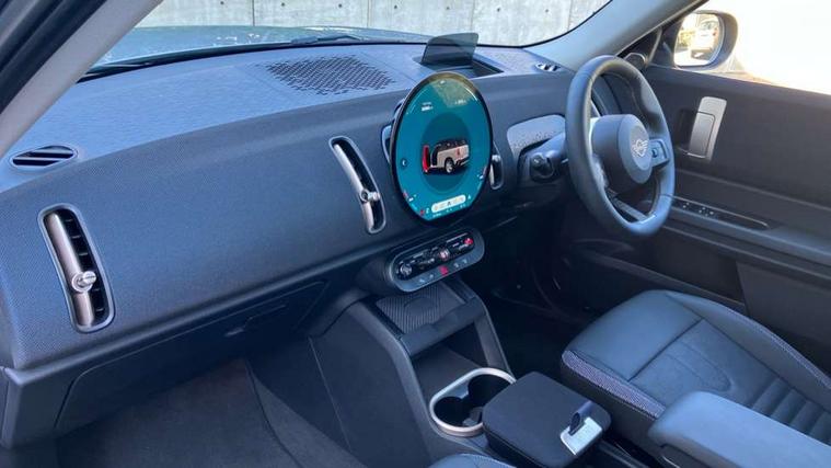 Bluetooth connection, Circular OLED Screen, Compatible mobile phone bluetooth with audio streaming, Cruise Control (DCC), Digital dashboard display, Driving assistant, E-call, Electro-mechanical speed dependant steering assistance, MINI Experience Modes, Mini navigation system, MINI TeleServices, Parking assistant in camera and ultrasound based assistance system, rear view camera, parking aid and distance control, Auto transmission with Paddles, Larger capacity fuel tank, 6 speakers, DAB Digital radio, Personal eSim, Auto tailgate, Electric adjustable heated door mirrors, Front and rear electric windows, Heated rear window, LED daytime running lights, LED Headlights, LED rear lights, LED third brake light, Rain sensor with auto headlights, Rear side wing doors, Rear window wiper, Roof rails, 3 seat bench in 2nd row, 60/40 split rear bench seat, Auto air conditioning, Floor mats, Front armrest, Front headrests, Heated steering wheel, Height and length steering column adjustment, Light headliner, Rear headrests, Single front passenger seat, Sport Vescin Steering Wheel, Sunvisors with vanity mirrors, Vescin/Cloth upholstery, 3x3 point rear seat belts, 6 Airbags - front, side, head and seat belt tensioners, ABS, DSC - Dynamic Stability Control, Electronic handbrake, Electronic Stability Programme (ESP), Front ISOFIX (iSize), Hill hold assist, Hill start assist, Manual rear child locks, Traction control, Tyre pressure monitoring system, Warning triangle, Alarm system with tilt sensor, monitoring doors, bonnet interior and tailgate, Auto drive away locking, Deadlocking function, Electronic vehicle immobiliser, Locking wheel bolts, Remote control locking, Start/stop toggle with keyless go, Black/Blue dashboard knit, MINI Mobility Kit,