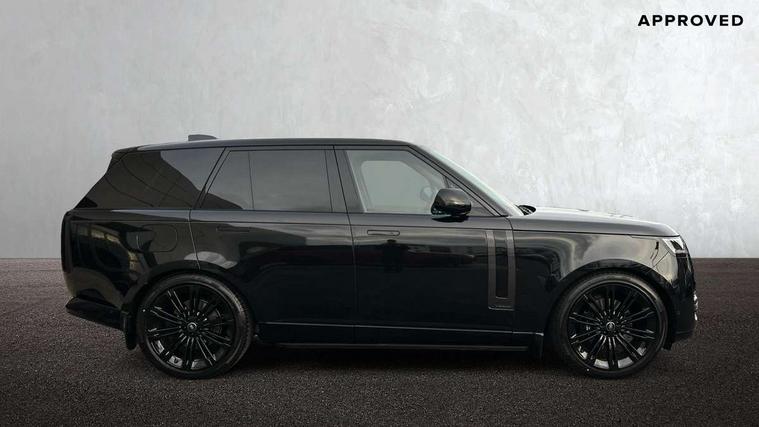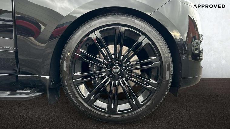 13.1" Touchscreen, 3D surround camera inc frwd traffic detection, vehicle clearance guidance, 3D view, clearsight ground view, manoevure light, 360 parking aid, wade sensing, Adaptive cruise control with steering assist, All Terrain Info Centre, All wheel steering, Blind spot assist, Bluetooth connectivity streaming, Configurable programs, Driver monitoring and response with driver facing camera & driver distraction monitor, Eco mode, Electric power assisted steering (EPAS), Emergency call service, Front and rear parking aid, Head up Display, Interactive driver display, Lane keep assist, Park assist, Powered gesture tailgate/boot lid, Rear collision monitor, Rear traffic monitor, Remote, Traffic sign recognition with adaptive speed limiter, Wi-Fi Enabled with data plan, Wireless Apple CarPlay/Android Auto, Wireless device charging, 8 speed automatic transmission, Active damper technology system, Adaptive dynamics, Adaptive off-road cruise control, All Wheel Drive (AWD), Automatic access height, Terrain Response 2 Auto, Twin speed transfer box, Digital Audio Broadcast radio-DAB, Meridian 1600W signature sound system, Pivi pro including smart settings, Connected navigation pro, nuance speech, USB socket, Acoustic laminated windscreen, Animated directional indicators, Automatic headlights, Automatic levelling headlights, Centre high mounted stop light, ClearSight interior rear view mirror, Electric windows with one touch open/close and anti trap, Engine cover, Flush deployable exterior door handles, Front and rear recovery eyes, Front fog lights including cornering lamp, Headlamp power wash, Heated rear window, Heated washer jets, Illuminated metal treadplates with Autobiography script, Laminated front and rear side glass, LED tail lights, Power fold, auto-dimming, heated door mirrors with approach lights, Rain sensing windscreen wipers, Rear boot, Rear fog lights, Rear side wing doors, Side repeater indicators in mirror, Solar attenuating windscreen, Standard bonnet, Winter wiper park position, 3 seat bench in 2nd row, 30 Colours configurable cabin lighting with 4 lighting zones, Air quality sensor, Auto folding loadspace cover, Bright metal pedals, Cabin air purification pro, Customer configurable single point entry, Driver and passenger front seat armrests, Easy boot loading, Ebony Carpet, Electric rear side window sunblinds, Four zone climate control, Front and rear cupholders, Front and rear grab handles, Front centre console refrigerator compartment, Front head restraints, Heated steering wheel, Hook in load space, Loadspace light, Luggage tie down in loadspace, Multifunction steering wheel, Rear centre armrest, Rear head restraints, Rear ISOFIX, Satin chrome gearshift paddles, Single front passenger seat, Soft close doors, SV bespoke carpet mats, Twin blade sunvisors with Illuminated vanity mirrors, Upper and lower glovebox, Online pack with data plan - Range Rover, 3x3 point rear seat belts, Anti-lock braking system (ABS), Black brake calipers, Brake hold function, Cornering brake control (CBC), Customer configurable autolock, DSC - Dynamic Stability Control, Electronic brake force distribution, Electronic parking brake, Electronic traction control, Emergency braking, Front airbags with passenger seat occupant detector, Front side airbags, Hill descent control, Hill launch assist, Illuminated seat belt buckles, Low traction launch, Occupant protection assist, Power operated child locks, Roll stability control, Tyre pressure monitoring system (TPMS), Immobiliser, Intrusion sensor and alarm, Keyless entry, Locking wheel nuts, Remote central locking, Noble chrome controls,
