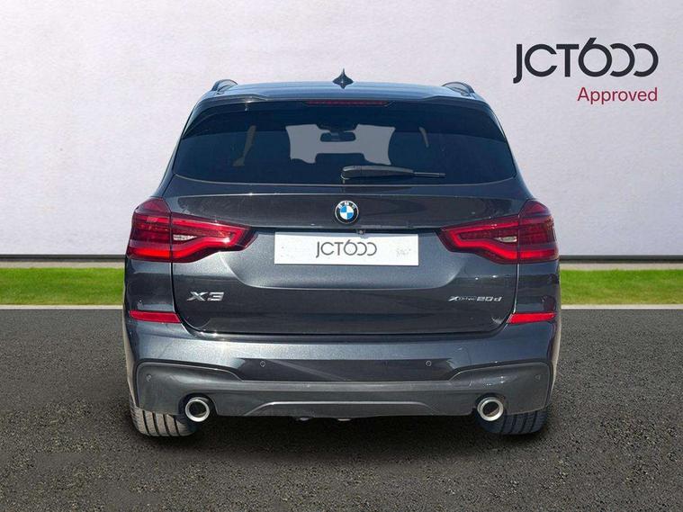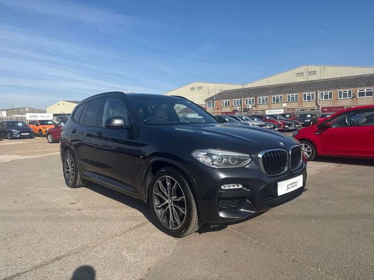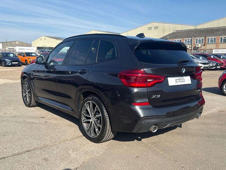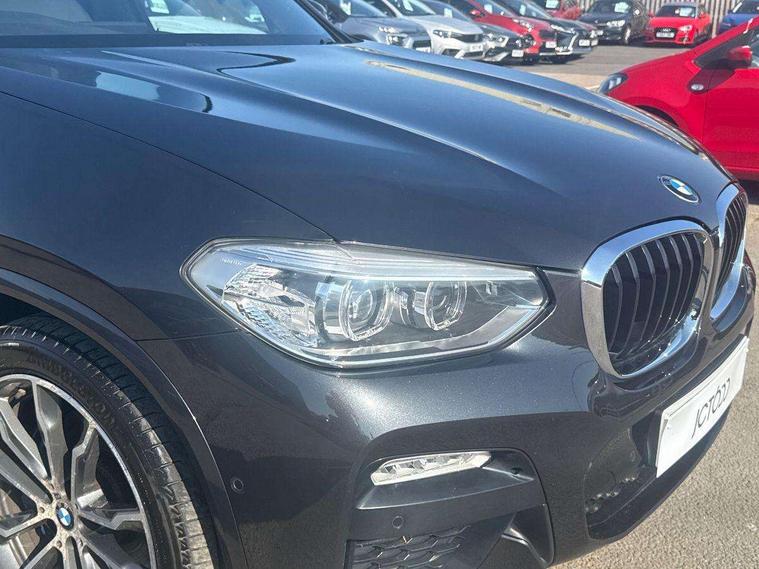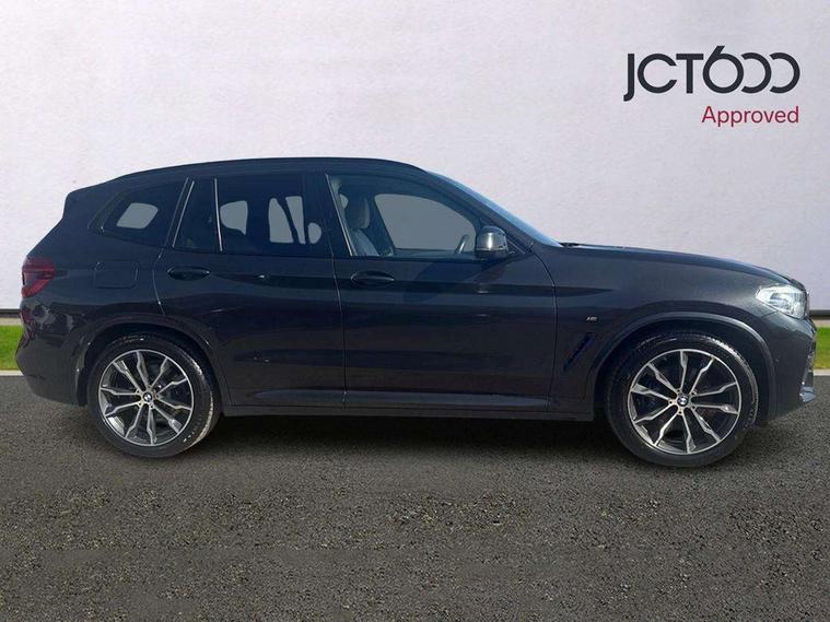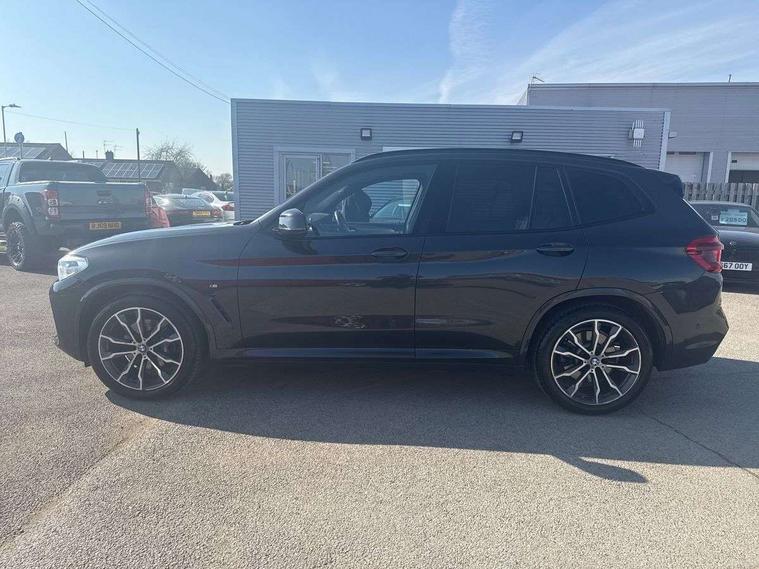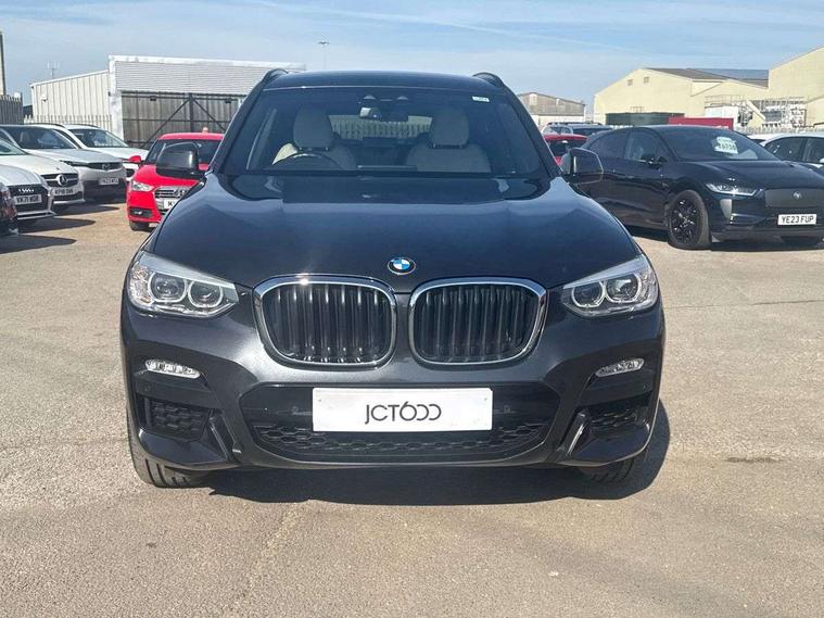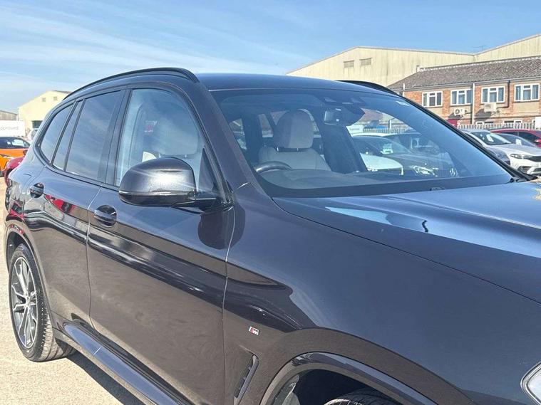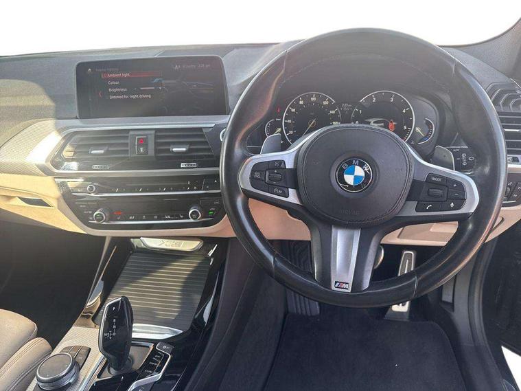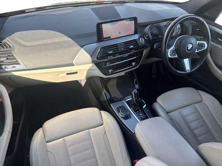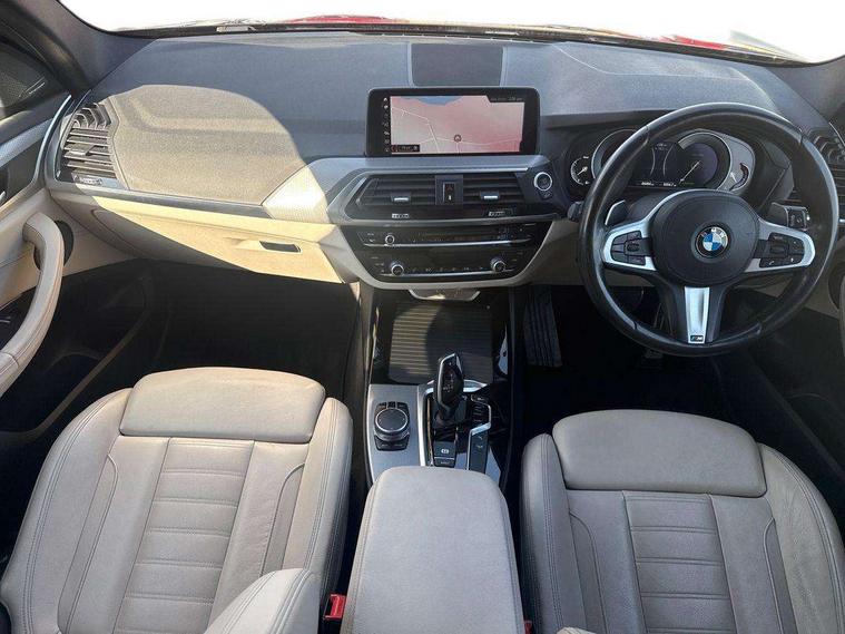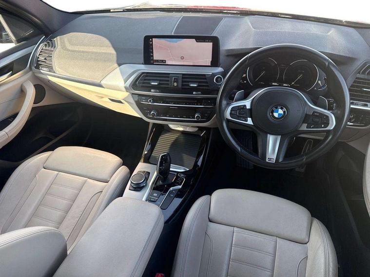 Active Guard incl speed limiting and lane departure functions with auto steering, and front collision warning with brake intervention, Attentiveness assist, Automatic tailgate operation, BMW Live Cockpit Professional sat nav system including 10.25" high resolution display and Intelligent Voice Assistant, BMW Online services, BMW Teleservices, Brake pad wear indicator in front and rear, Check Control warning system for monitoring of lights and door/luggage compartment open warning, Control display - 6.5" colour display screen, Electric Power Steering (EPS) with Servotronic, Front/rear Parking distance control, iDrive Controller with 8 favourite buttons, Lights on warning by audio warning signal when ignition is switched off, Navigation system - BMW Professional multimedia with Hard disc drive (HDD) and 10.25" touch display, Oil sensor for level and grade, warning by check control system, On board computer - average speed+fuel consumption, service interval, clock/date, odometer/trip meter, outside temperature display and ice warning, Optimum shift indicator, Personal Profile - automatic lock when driving away selectable, Real time traffic information, Semi digital instrument cluster, Stop/start system, Automatic transmission with gearshift paddles, Diesel particulate filter, Incorrect fuelling protection, Larger capacity fuel tank, Multi-link rear suspension, Performance Control, Auxiliary socket for external MP3 player, BMW professional radio/CD/MP3, DAB Digital radio, Acoustic glazing, Black finish on B pillars, Body colour door handles, Body colour electric adjust heated aspherical door mirrors, Body colour roof mouldings, Body coloured bumpers, Chrome kidney grille with high gloss black vertical slats, Direction indicator, side repeaters, integrated in exterior mirrors, Dual chrome exhaust, Dynamic brake lights, Exterior mirrors - electrically folding with anti-dazzle, Fingertip control / anti-trap function on electric window, Follow me home headlights, Front and rear bumper system with replaceable deformation elements, Front and rear electric windows, Green tinted heat insulating glass, Heated windscreen washer jets, Height adjustable headlamps, High gloss black door sill finishers, High gloss black shadow line roof rails, High gloss shadowline exterior trim in decorative moulding side frame/recess cover/guide rail/B, C pillars/mirror frame and triangle with mirror base, High level 3rd brake light incorporating LED Technology, Interior rear view electrochromatic mirror with automatic anti dazzle function, LED front fog lights, LED tail lights, Lightweight engineering, M aerodynamic bodystyling, Model designation, Rain sensor including auto headlights activation, Rear wiper, Shark fin antenna, Visible VIN plate, Welcome lighting, Windscreen wipers with adjustable interval, 12V socket in centre console and luggage area, 3 rear headrests, 3 zone automatic air conditioning, 4 lashing points to secure luggage, Ambient lighting, Anthracite headlining, Anthracite Velour floor mats, Driver/passenger sunvisors with ticket holders + illuminated vanity mirrors, Foldable boot floor with storage compartment, Four grab handles integrated in roof lining, Front and rear bottle holders integrated into door trim storage compartments, Front and rear side armrests integrated into door trim, Front centre armrest with storage compartment, Front footwell lights, Front sports seats, Front/rear courtesy lights with soft on/off dimming, Front/rear reading lights, Height adjustable front/rear head restraints, Isofix rear child seat preparation, Leather gear knob, Luggage area underfloor compartment, Luggage compartment lighting, M Sport multifunction leather steering wheel, Parcel shelf removeable and storable under boot floor, Reach and rake adjustable steering column, Rear centre armrest with 2 cupholders, Rear seat centre armrest with two cupholders, Removable / retractable luggage cover, Slope adjustable rear seats, Storage compartment in rear centre console and front/rear door trims, Through loading system with 40/20/40 split folding rear seat, Toolkit located in luggage compartment, Two front cupholders with removable oddments tray/lid, Vernasca leather upholstery, Connected pack professional - X3, ABS/EBD, ADB - Automatic Differential Brake, Automatic Stability Control (ASC), Battery safety cut-off, BMW emergency call, Brake assist, Brake assist function, Brake drying, Brake energy regeneration, Braking pre-tensioning, Child locks on rear doors, Cornering brake control (CBC), Crash Sensor - activation of central locking release, hazard warning light and interior lighting, Deactivation of fuel pump in the event of a crash, Driver and front passenger front and side airbags with passenger deactivation and ITS front and rear head airbags, DSC+, Dynamic brake control, Dynamic Traction Control - DTC, Electromechanical parking brake, Front seat belts warning, Hill descent control, Hill start assist, Seatbelt security check for front seats, Side impact protection, Three point seatbelts to all seats with front and outer rear pyrotechnic belt tensioners and seat belt force limiters, Two tone horn, Tyre pressure monitoring system, Ventilated front and rear disc brakes, Warning triangle and first aid kit, Central locking switch for all doors, fuel filler cap and luggage compartment, Electronic engine immobiliser, Locking wheel nuts, Remote control including two integrated key - one button for open/close all lockable content, windows and separate button for open luggage compartment, Remote control Thatcham category 1 alarm, Start/stop button with Comfort Go keyless engine start and auto Start/stop deactivation button, Low rolling resistance tyres,