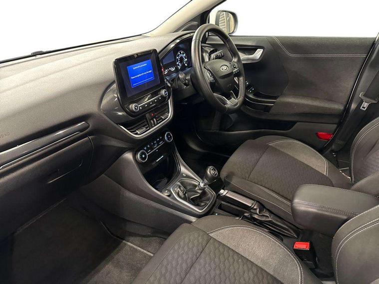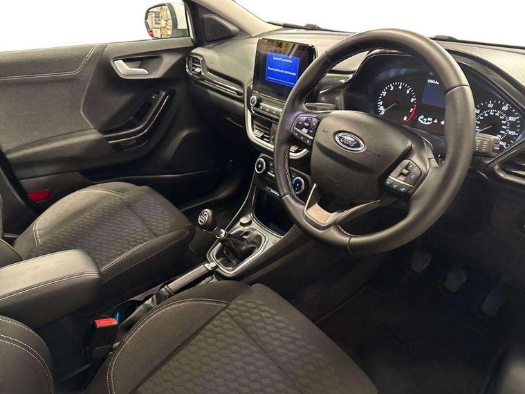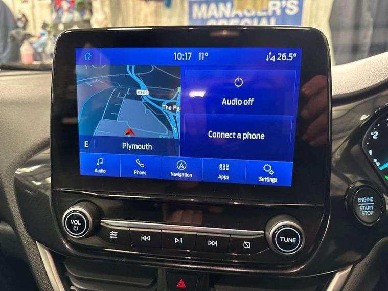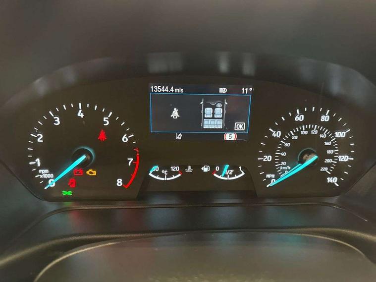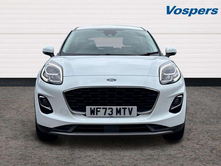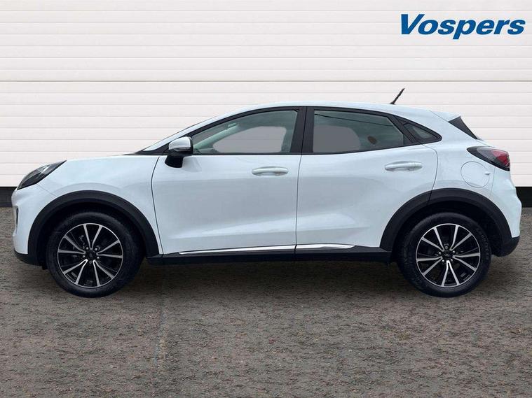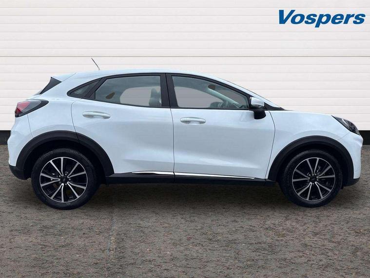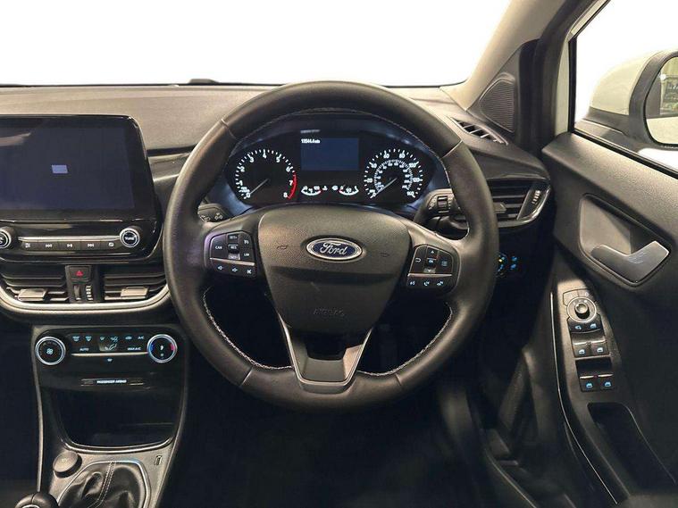 Driver impairment monitor, Emergency call service, Ford easy fuel, Lane keeping aid with lane departure warning, Power assist steering, Power start button, Rear parking sensor, Selectable drive modes(Normal, Eco, Sport, Slippery and Trail), Speed sign recognition, Standard suspension, Automatic headlights with auto high beam, Automatic rain sensing wipers, Body colour rear spoiler, LED rear lamps, Power foldable heated door mirrors with puddle lamps, Projector headlamps with LED day time running lights and front fog lamps, Quickclear heated windscreen, Rear side wing doors, Rear wiper, Third brake light, 3 seat bench in 2nd row, Centre console with armrest and stowage, Electronic automatic temperature control (EATC), Ford megabox extended bootspace, Front and rear head restraints, Front floor mats, Manual 2 way passenger seat adjustment, Manual 4 way driver seat adjust with lumbar adjustment, Sensico leather steering wheel/gear knob/handbrake, Single front passenger seat, Titanium cloth upholstery, Ford SYNC 3 navigation pack - Puma, 3 rear seatbelts, Child safety lock, Electronic stability control (ESC) and hill start assist, Pedestrian/cyclist detection & post-collision braking, Pre collision assist system, Tyre pressure monitoring system (TPMS), Thatcham alarm, 17" 10 spoke absolute black machined finish alloy wheel,
