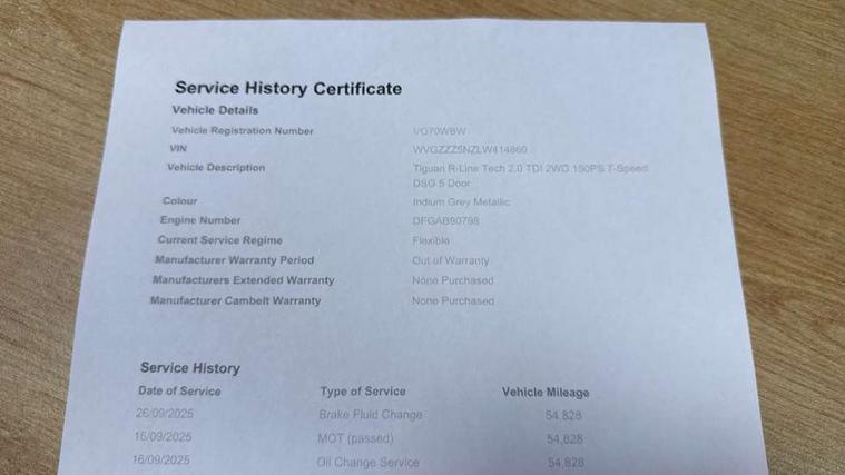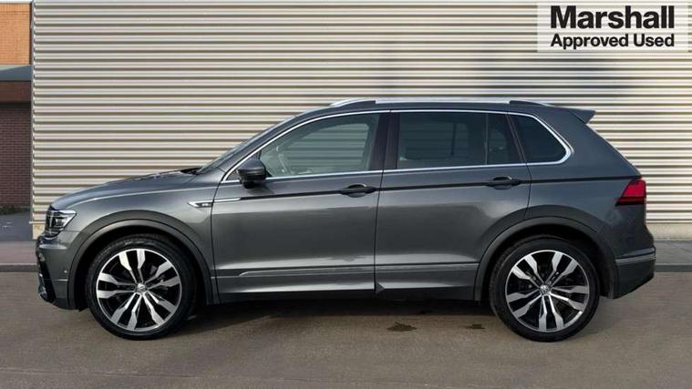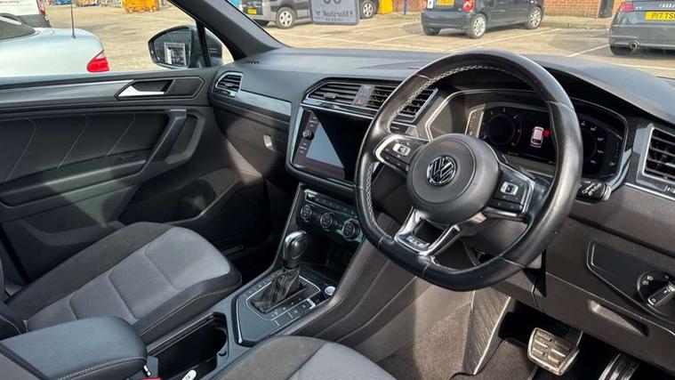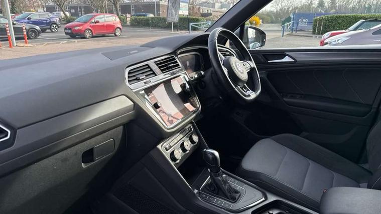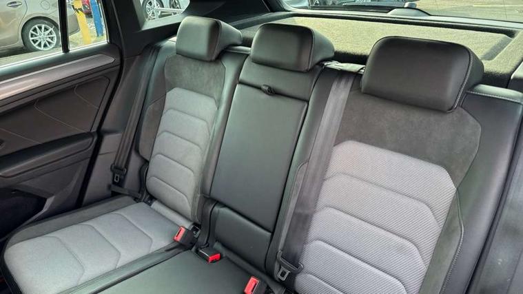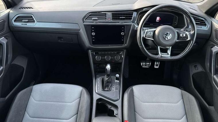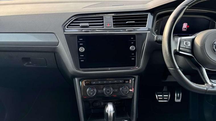 2D/3D map view, Active information display, Adaptive cruise control, App-Connect, Area view with park assist steering and front and rear parking sensors, Bluetooth phone integration system, Car information display, Distance control assist, Driver alert system with fatigue detection, Driver profile selection, Front assist, radar sensor controlled distance monitor, city emergency braking + predictive pedestrian protection, Fully electric tailgate + keyless entry and start, Instrument cluster, Lane assist, Lights on warning, Multifunction computer with visual gear change recommendation for fuel consumption, Outside temperature display, Progressive power assisted steering, Service interval indicator, Speed limiter, Start/Stop function, Warning sound and light for doors and tailgate open, Battery regeneration during braking, Diesel particulate filter, Misfuel prevention device for diesel engine, XDS electronic differential lock for improved traction and handling, 2 x USB connection + USB charging socket, 4 X 20 watt output, DAB Digital radio, SD card slot, Simultaneous pairing of 2 compatible mobile devices, SMS functionality - read, compose and send SMS messages using touch-screen display, Title and cover art display, 3D effect cherry red LED rear tail lights, Aluminium decorative inserts in dash and door panels, Auto dimming interior mirror, Automatic activation of hazard warning lights, Body colour door handles, Body colour door mirrors, Body colour rear spoiler, Body colour side skirt, Body coloured bumpers, Chrome side window surrounds, Chrome trimmed radiator grille, Coming/leaving home lighting function, Dusk sensor + auto driving lights, Electric panoramic sunroof with sunblind, Electrically heated and foldable door mirrors, door mirror puddle lights and reverse activated kerb view adjustment on passenger's door mirror, Front and rear electric windows, Heated rear window, High level 3rd brake light, LED headlights with dynamic light assist daytime running lights and cornering front fog lights, LED rear number plate lights, Piano black front air intake and rear diffuser, R Line body kit, R Line side sills, Rain sensor windscreen wipers, Rear tinted glass from B-pillar backwards approx 65% tinted, Rear windscreen washer and wiper with interval delay, Side skirts and rear bumper with chrome insert, Silver front underbody protection and rear diffuser, Silver roof rails, Trailer Stability Programme, Unique R Line badging, Windscreen wipers/ intermittent wipe + 4 position delay, 12V socket in centre console storage area, 2 cup holders in front, 3 rear headrests, 3 zone climate control, 4 load lashing points, 40:20:40 split folding rear seats, Bag hook in luggage compartment, Black headlining, Foldable front passenger seat backrest, Front + rear carpet mats, Front centre armrest with 12v socket, Front centre armrest with storage + rear 2 air vents, Front seat back storage pockets, Front seat R Line logo with rear seat backrest, Front seatback folding tables, Height/reach adjust steering wheel, Illuminated driver/passenger vanity mirrors, Illuminated scuff plates, Instrument lighting white adjustable panel illumination, Interior light with delay, Isofix Preparation 2 Rear child seats, Leather gear knob, Load through provision with 2 cupholders when folded, Lockable cooled glovebox, Luggage compartment lighting, Map pockets on front seats, Passenger seat height adjuster, Removable luggage cover, Sliding/reclining rear seats, Stainless steel pedals, Storage compartment in driver's door, Storage compartment in passenger's door, Storage compartment in rear doors, Storage compartments in luggage area left and right, Storage tray on dashboard, Sunglasses storage, Three spoke leather trimmed multifunction steering wheel with aluminium inserts and R Line Logo including paddle shift, Unique R Line door sill protectors, Variable boot floor, height adjustable and removable, Ambient lighting pack - Tiguan, R Line styling pack - Tiguan, 3 rear 3 point seatbelts, ABS+EBD+Brake assist, Active bonnet, Active pedestrian safety system, Curtain airbags, Driver/Front Passenger airbags, Driver/Passenger whiplash optimised head restraints, Drivers knee airbag, DTC - Drag torque control, Electronic parking brake with auto hold, ESC with EDL, ASR, EDTC and trailer stabilisation function, First aid kit, Front seat side impact airbags, Front side airbags, Front ventilated disc brakes and rear disc brakes, Head airbag system, Height adjustable front 3 point seatbelts + pretensioners, Hill hold control, Passenger airbag deactivate switch, Passenger knee airbag, Pre crash preventive occupant protection, Rear side airbags, Rigid safety cell with front and rear crumple zones, Two tone horn, Warning sound and light for front seat belts if unfastened, Warning triangle, Alarm with interior protection, Electronic engine immobiliser, Remote central locking with 2 remote folding keys, Chrome door trim inserts, Dark grey decorative inserts in dash and door panel, Piano black decorative inserts in centre console, 20" Suzuka alloy wheels with mobility self sealing tyres + anti theft wheel bolts, Steel space saver spare wheel,