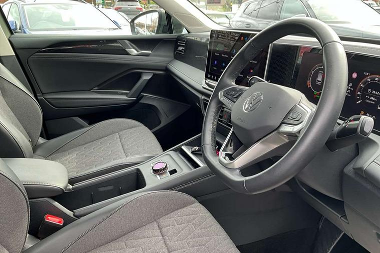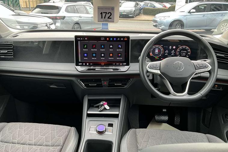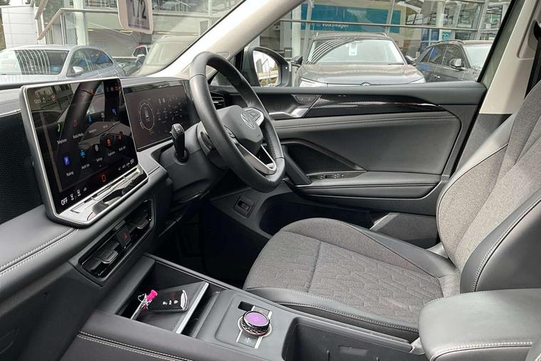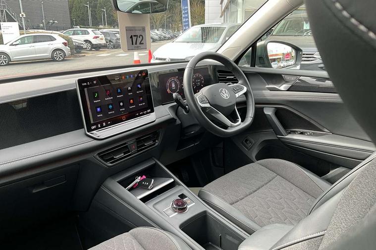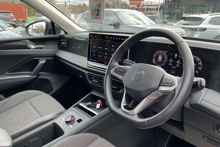 Adaptive cruise control (ACC), Advanced driver attention and drowsiness monitor, Bluetooth mobile phone interface, Car2X technology, Digital Cockpit Pro - 10.25" high resolution dash display screen with customisable menus and information, Dynamic road sign display, E-Sim card for online connectivity, eCall emergency call service, Front Assist - Autonomous emergency braking with pedestrian and cyclist monitoring, Lane change system, Side assist, Rear traffic alert and Exit warning system, Lane keeping system Lane Assist, Multifunction front facing camera, Oncoming vehicle braking when turning including swerve support, Park assistance plus with front and rear parking sensors, Power assisted steering with speed sensitive, Start/stop system with regenerative braking, Warning signal and warning light for front and rear seatbelts not fastened, Wireless App-Connect, Front wheel drive, Digital radio reception (DAB), Diversity antenna for FM reception, Ambient lighting with logo projection, Auto dimming interior rear view mirror, Automatic headlight control system, Body coloured bumpers and air intake with chrome trim, Body coloured door handles, Body-coloured exterior mirror housings, Coming/leaving home lighting function, Heat insulating glass in side and rear windows, Heat insulating windshield, Heated rear window, High level 3rd brake light, Illuminated door handle recesses, Illuminated lightline between headlamps, Rain sensor windscreen wipers, Rear fog light on one side, reversing light on both sides, Rear side wing doors, Rear wiper, 12V outlet in center console rear and in luggage compartment, 12V socket in centre console, 3 bench rear seats in 2nd row, Air care climatronic 3 zone air conditioning system with rear air conditioning control panel, Carpet mats, front and rear, Centre console with illuminated storage compartment with sliding cover and two drinks holders, Ceramique headlining, Door and side trim panel in foam film and woven fabric, Front centre armrest, ISOFIX anchors for child seats on outer rear seats and front passenger seat compatible with i-Size, Mechanical rear seat release, Power adjustable lumbar support in front, Rear bench seat, split folding, longitudinally movable and folding with load-through hatch and centre armrest, Safety optimised front head restraints, Single front passenger seat, Sun visors with illuminated vanity mirrors, Three rear head restraints, Variable luggage compartment floor, Comfort package with park assist plus and Safelock - Tiguan, Design package - Tiguan, 3 point seat belt for centre rear seats, 3 Point seat belts in front with pretensioners, 3 point seatbelts in outer rear with ECE label, Driver and front passenger airbag with front passenger airbag deactivation, Electronic parking brake with auto hold, Front and rear curtain airbags, Front and rear side airbags, Front centre airbag, Front disc brakes, Manual child proof rear door locks, Rear disc brakes, Two tone horn, Warning triangle, Anti theft wheel bolts, Soul instrument panel,
