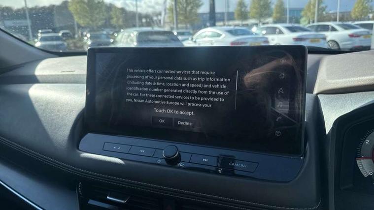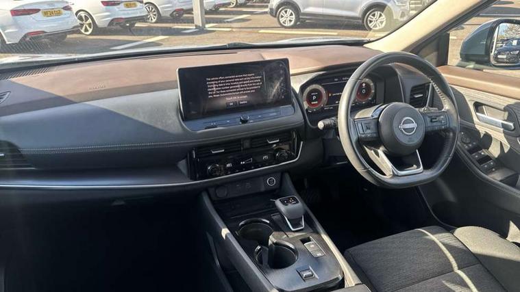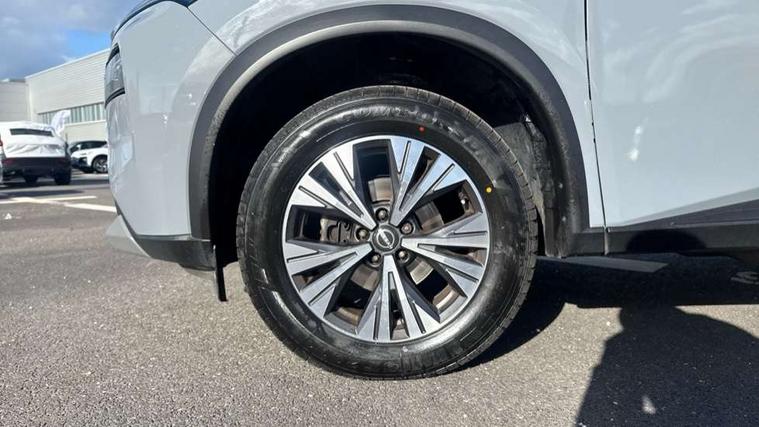 Android auto/Apple CarPlay (Wired), Blind spot warning, Drive modes (sport, normal, eco), Electric speed sensitive power steering, Emergency and breakdown call, Front and rear parking sensors, Full Digital 12.3" TFT Digital Combimeter, Google maps services - search, weather, 3D maps and Google street view, Idle stop/start system, Intelligent around view monitor, Intelligent Cruise control (ICC), Intelligent driver alert system, Intelligent forward collision warning, Intelligent lane departure warning, Intelligent lane intervention, Intelligent lane keep assist, Maximum speed limiter, Moving object detection, Nissan connect 12.3 inch touchscreen infotainment system, Nissan connect nav with TomTom traffic, Push button starter, Rear cross traffic alert, Rear view camera, Remote control services - door locks, lights, horn and car locator, Telematics - notifications and connectivity services, TomTom live traffic services, Traffic sign recognition with legal speed adjustment, Trip computer, Virtual personal assistant and firmware over the air capability, Wireless apple carplay, Wireless charging pad, 6 speakers, AM/FM audio system with DAB, Bluetooth audio streaming, Front USB connections (Type-A and Type-C), Rear USB charging only ports (Type-A and Type-C), 3rd brake light, Auto dimming rear view mirror, Auto rear wiper when reversing, Body colour mirror caps, Body coloured door handles, Bodyside mouldings, Chrome side window finisher, Electric auto folding door mirrors, Electrically adjustable and heated door mirrors, Follow me home headlights, Headlights auto levelling system, High beam assist, Intelligent auto headlights, LED daytime running lights, LED Headlights, LED rear lights, One touch front and rear electric windows with remote opening and closing, Partially body coloured bumpers, Rain sensing wipers, Rear privacy glass, Rear reversing light (bulb lighting), Rear roof spoiler, Rear side wing doors, Rear styling plate, Shark fin antenna, Splash free wipers, Super UV and infrared cut glass, Three blink turn signal, 12v power socket in dashboard and luggage, 3 bench rear seats in 2nd row, 3 rear headrests, 60/40 split folding rear seat bench, Butteryfly console, Chrome interior door handles, Cloth monoform upholstery, Driver and front passenger sunvisors with illuminated vanity mirrors, Driver seat back pocket, Dual zone automatic climate control with pollen filter, Front centre console and armrest, Front cupholders, Front door with bottle holders, Height adjustable driver's seat, Height adjustable front headrests, Height adjustable passenger seat, Leather shift knob, Leather steering wheel, Luggage board system, Luggage space lighting, Multifunction steering wheel, Passenger seat back pocket, Rear armrest with 2 cupholders, Rear door bottle holders, Single front passenger seat, Tilt/telescopic adjustable steering wheel, Two rear isofix child seat anchorage points with top tether, 3x3 point rear seatbelt pretensioners + load limiters, ABS with EBD and brake assist, Active brake limited slip, Auto hold function, Child locks on rear doors, Curtain and front side, far side airbags, Driver and passenger airbags, Driver, passenger and 2nd row rear seat belt reminder, Electronic parking brake, Front seatbelt pretensioners + load limiters, Height adjustable front seatbelts, Hill start assist, Intelligent blind spot intervention, Intelligent front emergency braking with pedestrian, cyclist recognition and junction assist, Intelligent rear automatic braking, Tyre pressure monitoring system, Vehicle dynamic control, Engine immobiliser, Intelligent Key, Remote central door locking with deadlocking, Thatcham Cat.1 alarm, 18" Diamond cut alloy wheels, Tyre puncture repair kit,