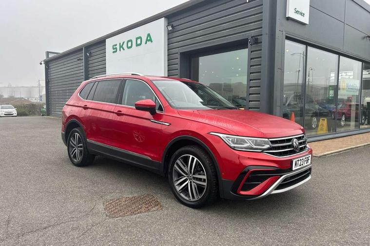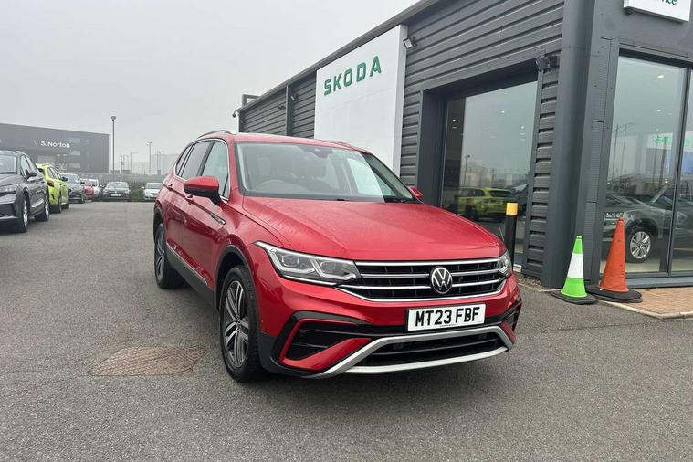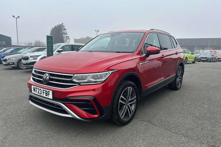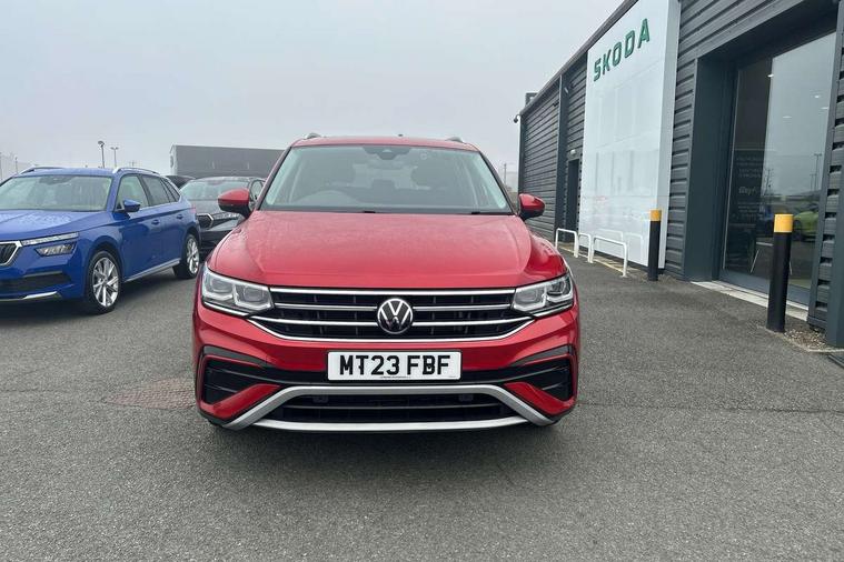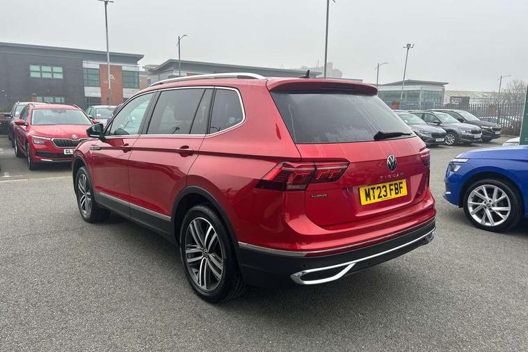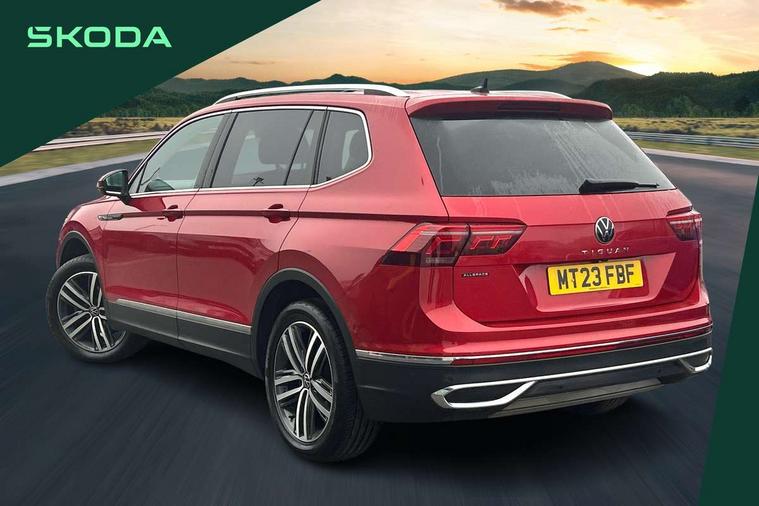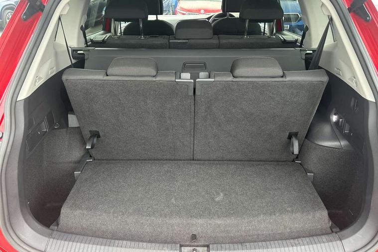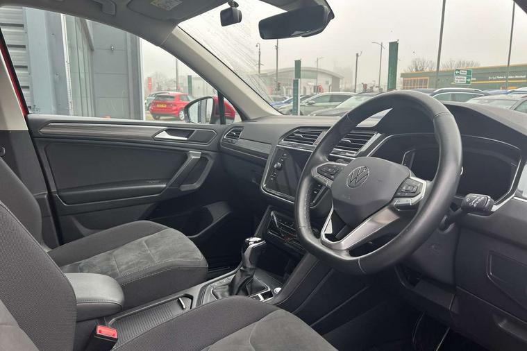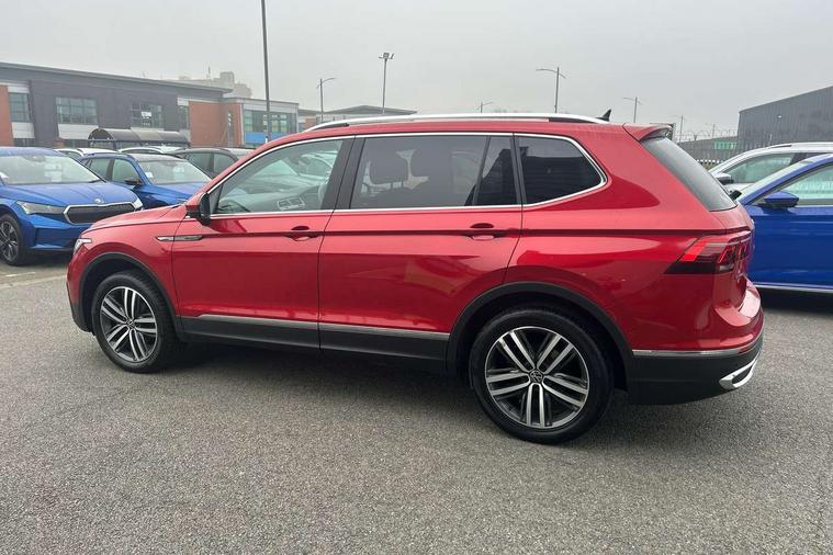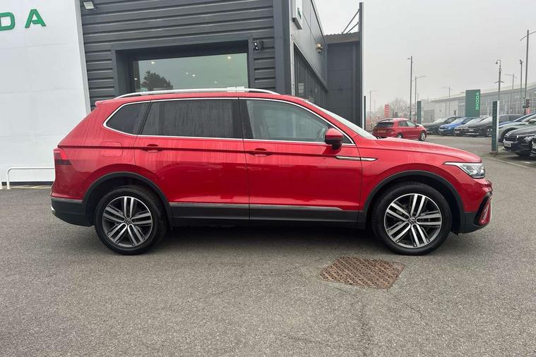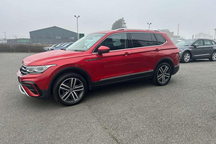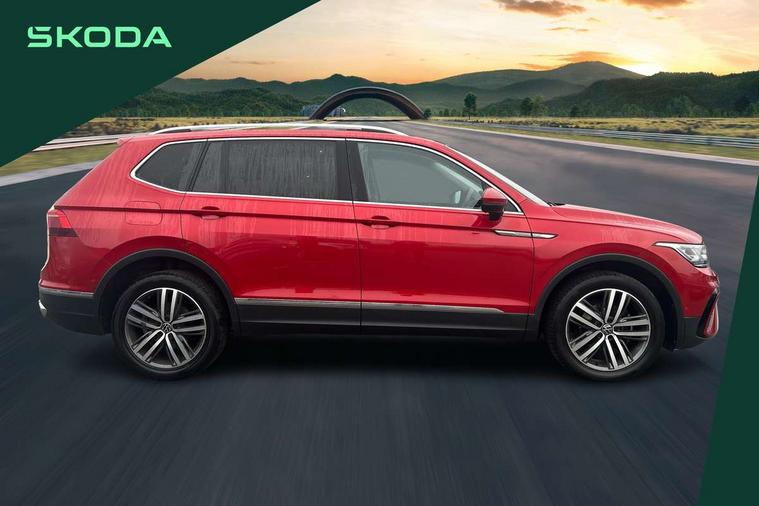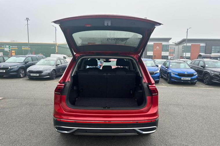 App-Connect, Adaptive cruise control, Digital cockpit pro, Driver alert system, Driver profile selection, Dynamic road sign display, eCall emergency call service, Electric boot lid, Lane change system side assist and rear traffic alert, Lane keeping system Lane Assist, Mobile phone interface comfort with inductive charging feature, Multifunction front facing camera, Power assisted speed sensitive steering, Speedo and rev counter, electronic odometer, trip, service interval display and exterior temperature gauge, Front wheel drive, Start-stop system with battery regeneration (recuperation - energy recovery during braking), 2 USB-C ports in the front, 1 USB-C charging socket on the center console in the rear, 8 speakers, DAB Digital radio, Diversity antenna for FM reception, Auto dimming interior rear view mirror, Automatic headlight control system, Body coloured comfort bumpers, Chrome mouldings on side window, Coming/leaving home lighting function, Exterior badge deletion, Exterior mirror housings painted in silver, Heated windscreen washer jets, Privacy glass, Rain sensor, Rear fog light, Rear side wing doors, Rear wiper, Silver roof rails, Third brake light, Tilting and sliding panoramic sunroof, 12-volt outlet in centre console rear and luggage compartment, 12V socket in centre console, 3 head restraints in rear, 3 individual folding 2nd row seats, 3rd row 2 individual seats, Air Care Climatronic 3 zone automatic climate control with enhanced air filter and controls in the rear, Door and side trim panel, Drawers under front seats, Driver and front passenger seat height adjustment, Foldable front passenger seat backrest, Front + rear carpet mats, Front centre armrest, Front footwell illumination, Heated front seats, Illuminated scuff plates, ISOFIX anchorage points for mounting 2 child seats on rear seats and i-Size child seats, Leather gearshift handle, Leather-wrapped heated multi-function steering wheel with paddle shift, LED interior light with switch off delay/dimmer and 2 front/rear LED reading lights, Sun visors with illuminated vanity mirrors, Ambience pack - Tiguan Allspace, Driver assistance package - Tiguan Allspace, Easy open and close pack with safelock - Tiguan Allspace, 3 point seat belt for centre rear seat, 3 rear three point seatbelts, ABS+EBD+Brake assist, Driver and front passenger safety-optimised head restraints, Driver's and front passenger's airbag with front passenger's airbag deactivation switch, Electronic parking brake, Electronic Stability Control (ESC) inc EDL (Electronic Differential Lock) and ASR (Traction Control), Height adjustable front 3 point seatbelts + pretensioners, Manual rear child locks, Pedestrian monitoring, PreCrash preventive occupant protection Front and rear, Rear disc brakes, Side airbag in front and rear with curtain airbag, Two tone horn, Warning buzzer for seatbelts if unfastened, Anti theft alarm system with interior monitoring, backup horn and towing protection, Anti-theft wheel bolts, Electronic steering lock, Remote central locking with 2 remote folding keys, Chequered flag tinanium decorative inserts,