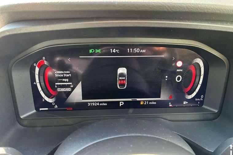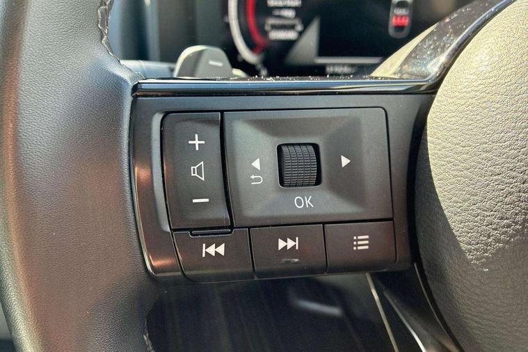 Android auto/Apple CarPlay (Wired), Blind spot warning, Drive modes (sport, normal, eco), Electric speed sensitive power steering, Emergency and breakdown call, Full Digital 12.3" TFT Digital Combimeter, Google maps services - search, weather, 3D maps and Google street view, Idle stop/start system, Intelligent around view monitor, Intelligent Cruise control (ICC), Intelligent driver alert system, Intelligent forward collision warning, Intelligent lane intervention, Lane departure prevention, Lane departure warning system, Maximum speed limiter, Moving object detection, Nissan connect 12.3 inch touchscreen infotainment system, Nissan connect navigation, Push button starter, Rear cross traffic alert, Rear parking sensors, Rear view camera, Remote control services - door locks, lights, horn and car locator, Telematics - notifications and connectivity services, TomTom live traffic services, Traffic sign recognition with legal speed adjustment, Trip computer, Virtual personal assistant and firmware over the air capability, Wireless apple carplay, 6 speakers, AM/FM audio system with DAB, Bluetooth audio streaming, Front USB connections (Type-A and Type-C), Rear USB charging only ports (Type-A and Type-C), Auto dimming rear view mirror, Auto rear wiper when reversing, Automatic hazard signal with emergency stop signal, Body colour mirror caps, Body coloured door handles, Bodyside mouldings, Chrome side window finisher, Door handle with button, Electric auto folding door mirrors, Electrically adjustable and heated door mirrors with LED turn indicator, Follow me home headlights, High beam assist, Intelligent auto headlights, LED 3rd brake light, LED daytime running lights, LED Headlights, LED rear lights, One touch front and rear electric windows with remote opening and closing, Partially body coloured bumpers, Privacy glass, Rear bumper with graphite insert, Rear reversing light (bulb lighting), Rear roof spoiler, Rear side wing doors, Rear styling plate, Shark fin antenna, Splash free rain sensing wipers, Super UV and infrared cut glass, Three blink turn signal, 12v power socket in dashboard and luggage, 2x Rear coat hooks, 3 bench rear seats in 2nd row, 3 rear headrests, 4 folding assist grip, 6 Luggage hooks - 4 on floor, 2 on side, 6-way manually adjustable driver's seat, 60/40 split folding rear seat bench, Ambient lighting around centre console, Centre console storage tray, Chrome interior door handles, Cloth monoform upholstery, Driver and front passenger sunvisors with illuminated vanity mirrors, Driver seat back pocket, Dual zone automatic climate control with pollen filter, Electrically adjustable lumbar support for driver, Front and rear door storage, Front centre console and armrest, Front cupholders x 2, Front door with bottle holders, Glovebox with light, Hard trunk cover, Height adjustable driver's seat, Height adjustable front headrests, Height adjustable passenger seat, Luggage board system, Luggage space lighting, Manually adjustable passenger (slide recline + lifter), Multifunction steering wheel, Passenger seat back pocket, Rear armrest with 2 cupholders, Rear door bottle holders, Single front passenger seat, Soft PVC kneepad, Steering wheel gearshift paddles, Steering wheel switches, Sunglasses holder, Tilt/telescopic adjustable steering wheel, Two rear isofix child seat anchorage points with top tether, Welcome light and console tray ambient lighting, 3x3 point rear seatbelt pretensioners + load limiters, ABS with EBD and brake assist, Active brake limited slip, Auto hold function, Child locks on rear doors, Curtain and front side, far side airbags, Driver and passenger airbags, Driver, passenger and 2nd row rear seat belt reminder, Electronic parking brake, Front seatbelt pretensioners + load limiters, Height adjustable front seatbelts, Hill start assist, Intelligent blind spot intervention, Intelligent front emergency braking with pedestrian, cyclist recognition and junction assist, Intelligent rear automatic braking, Tyre pressure monitoring system, Vehicle dynamic control, Capless fuel filler, Engine immobiliser, Intelligent Key, Remote central door locking with deadlocking, Thatcham Cat.1 alarm, Interior instrumental panel B finisher, 18" Diamond cut alloy wheels, Tyre puncture repair kit,