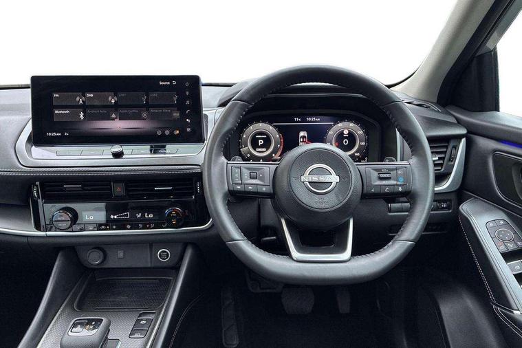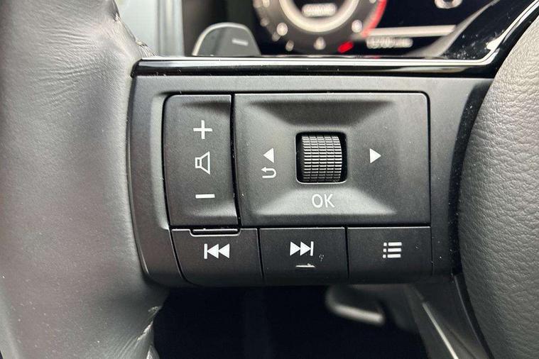 360 degree Intelligent around view monitor with moving object detection, Blind spot intervention, Blind spot warning, Drive assist custom mode, Drive modes (sport, normal, eco), Driver drowsiness and attention warning, Electric speed sensitive power steering, Emergency and breakdown call, Emergency lane keep assist, Emergency Stop Signal (ESS), Engine start/stop button, Event data recorder, Front and rear parking sensors, Full Digital 12.3" TFT Digital Combimeter, Google virtual personal assistance, Idle stop/start system, In-car WIFI hotspot, Intelligent Cruise control (ICC), Intelligent forward collision warning, Intelligent speed assist, Lane departure warning system, Nissan connect 12.3 inch touchscreen infotainment system, Nissan connect navigation with google maps, Nissan connect services 2.0 (Google Automotive System), Outside temperature sensor, Rear cross traffic alert, Reversing detection, Traffic jam pilot, Wireless Apple CarPlay/Android Auto, Wireless charging pad, Limited slip differential, 2 front USB-C ports, 2 rear USB-C ports, 6 speakers, AM/FM audio system with DAB, Bluetooth audio streaming, Auto rear wiper when reversing, Body colour mirror caps, Body coloured door handles, Bodyside mouldings, Chrome side window finisher, Electric auto folding door mirrors, Electrically adjustable and heated door mirrors with LED turn indicator, Follow me home headlights, High beam assist, Intelligent auto headlights, LED 3rd brake light, LED daytime running lights, LED Headlights, LED rear lights, One touch front and rear electric windows with remote opening and closing, One touch passenger window, Partially body coloured bumpers, Rear privacy glass, Rear roof spoiler, Rear side wing doors, Rear styling plate, Shark fin antenna, Splash free rain sensing wipers, Super UV and infrared cut glass, Three blink turn signal, 3 bench rear seats in 2nd row, 3 rear headrests, 60/40 split folding rear seat bench, Chrome interior door handles, Cloth upholstery, Dark headlining, Driver seat back pocket, Dual zone automatic climate control with pollen filter, Front door with bottle holders, Height adjustable front headrests, Luggage board system, Luggage space lighting, Multifunction steering wheel, Passenger seat back pocket, Rear door bottle holders, RGB ambient light (Full area coverage), Single front passenger seat, Smooth leather steering wheel, Steering wheel gearshift paddles, Tilt/telescopic adjustable steering wheel, Two rear isofix child seat anchorage points with top tether, 3x3 point rear seatbelt pretensioners + load limiters, Autonomous emergency braking, Child locks on rear doors, Curtain and front side, far side airbags, Driver and passenger airbags, Driver, passenger and 2nd row rear seat belt reminder, Electric handbrake with auto hold function, Front seatbelt pretensioners + load limiters, Height adjustable front seatbelts, Hill start assist, intelligent front emergency braking, Rear automatic braking, Tyre pressure monitoring system, Vehicle dynamic control, Engine immobiliser, Intelligent key with walk away lock and approach unlock functions, Remote central door locking with deadlocking, Thatcham alarm, 18" Diamond cut alloy wheels, Tyre puncture repair kit,