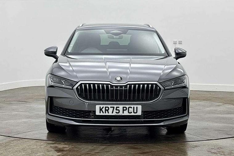 13" touchscreen display with satellite navigation, 4x USB-C ports (2x in front centre console and 2x in rear) (45W), Adaptive cruise control with speed assist, lane assist plus and traffic tram assist, Blind spot detection with door exit warning, Bluetooth system, CareConnect and Emergency Call, ChatGPT functionality, Drive mode selection, Driver fatigue sensor, Easy boot close funtion, Front assist with extended predictive pedestrian protection, Front cross traffic assist, Quick start all heating software functionality, Stop/start engine system, Traffic sign recognition, Turn assist with evasive assistance, Virtual Cockpit - 10.25" digital display, Voice control system, Washer for rear camera, Wireless charging for one smartphone (15W) with cooling function, Wireless smartlink apple carplay, SmartLink+ android auto, Mode 3 charging cable, DAB Digital radio, Display cleaner, FM radio connection, Web radio connection, Acoustic side windows and interior noise suppression, Backdrop lighting, Body colour door handles, Body coloured door mirrors, Chrome roof rails, Chrome window surround, Dark chrome grille surround, Dynamic range control with poor weather light and integrated fog light, Electrically adjustable, heated, folding and driver side auto-dimming door mirrors with memory function, integrated indicators and logo projection, Frameless auto-dimming rear view mirror with USB-C, Ice scraper in fuel tank cap, LED 3rd brake light, Light assist with High beam control, Light assistant (coming/leaving home/tunnel light), Privacy glass, Rear fog lights (x2), Rear roof spoiler, Rear side wing doors, Rear windscreen wiper, Unique dark chrome design logo on alloy wheels, Windscreen wipers with rain sensor, 12V socket 1x centre console 1x boot, 14-way electrically adjustable, memory, front seats with 4-way pneumatic lumbar support, and extendable thigh support with smart comfort entry aid, 2x cargo elements in boot, 2x light in boot, 3 seat bench in 2nd row, 4x foldable bag hooks in boot, 60:40 Split folding rear seats, Advanced massage function for front seats, Bottle holders in the front doors 1.5 litre bottle and rear 1.5 litre bottle, Cup holder in front with easy open mat, Front armrest with storage box, Front sports comfort seats, Heated and ventilated front seats, Height adjustable front and rear head restraints, Illuminated glovebox, Interior lights with control switches, Isofix child seat fittings in outer rear and front passenger seats, LED front and rear reading lights, Single front passenger seat, Skoda lettering on steering wheel, Storage compartment with cover, Storage pockets on back of front seats, Sun visors with illuminated vanity mirrors, Ticket holder on A Pillar, Tri zone climate control, Umbrella in driver's door, Light and view package - Superb, Transport package - Superb Estate, 3 rear seatbelts, 8 Airbags - Front driver and passenger, front side driver and passenger, centre, curtain front and rear, drivers knee, Crew protect assist, Driver and passenger seatbelts with warning light, Electronic parking brake, ESC including ABS, EBV, MSR, ASR, EDS, HBA, DSR, RBS, CBC, multi-collision brake (MKB) and Auto hold, Hill hold assist, Power operated child lock in rear doors, Alarm with interior monitoring tilt sensor and back up horn, Backrest remote release from trunk, Electronic engine immobiliser, Keyless start/stop, Remote central locking with SAFE system, Third key, Walk away locking, Decorative front door sills, Tyre repair kit,