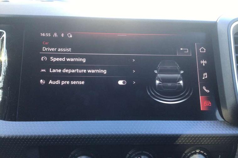 10.25" Digital instrument cluster display classis style instrument dials + speed, odometer, time, outside temperature, telephone menu + fuel level warning, Audi smartphone interface with connect compatible smartphone via USB directly MMI display + Nav, music, third party apps controlled via MMI controller, Automatic start/stop system, Bluetooth interface, Cruise control, Driver's information system, Electromechanical power steering, Emergency e-call, Lane departure warning system, Rear parking sensor, Service interval indicator, Speed limiter, Voice control system, Washer fluid level indicator, Dynamic suspension, 2 x USB type C connection points, 6 passive loudspeakers, DAB Digital radio, MMI radio plus with 10.1" colour MMI display screen and MMI touch, Auto dimming rear view mirror, Body coloured bumpers, Body coloured door mirrors, Electric front and rear windows, Electrically adjustable, heated, folding door mirrors with integrated LED side indicator, Front side air inlets in grained matt black and C frame in anthracite black, Heat insulating glass windscreen and side windows, Heated rear windscreen, High level LED brake light, LED headlights with LED rear lights + dynamic rear indicators + headlight adjustment and high beam, turning light + LED daytime running lights, Radiator grille and rear diffuser in matt anthracite black, Radiator protective grille frame in matt aluminium silver, Rain and light sensors, Rear fog lights, Rear side wing doors, Rear wiper, Side front spoiler lips in grained matt black, 12V socket in centre console with two cup holders, 3 rear seats with headrests, 3 seat bench in 2nd row, 3 spoke leather multifunction plus steering wheel, 40:60 Split folding rear seat or folded fully, Black front and rear floor mats, Door sill trims with aluminium inlay, Driver and passenger seat with manual height adjust with forward and backwards adjustment, Front head restraints, Front passenger seat, Grey cloth headlining, Height and reach adjustable steering wheel, ISOFIX child seat mounting for front passenger and outer rear seats including top tether attachment point of outer rear seats, Leather gear knob with aluminium trim, Leather handbrake grip, Luggage compartment light with front and rear reading lights, Manual air conditioning, Manually adjustable lumbar support in front seats, Novum cloth upholstery with front sport seats, Luggage compartment pack - A1, 3x3 point rear seatbelts, Audi pre-sense front with pedestrain and cyclist recognition, Brake assist function, Driver and front passenger airbag with front side and head airbags, Electronic Stability Control including ABS, EBD, ASR and EDL, Front passenger airbag deactivation switch, Hill hold assist, Manual rear child locks, Seatbelt height adjustment for front seats, Seatbelt monitoring, Tyre pressure warning light, Warning triangle and first aid kit, Anti theft alarm, Anti theft wheel bolts and loose wheel warning, Immobiliser, Remote central locking with 2 foldaway keys, Aluminium trim for control switches, air vents and digital instrument cluster, Black dashboard, Silver grey accent areas including air vents, door handle recesses and centre console in diamond paint finish, Slate grey inlays polygon structure in fine paint finish,