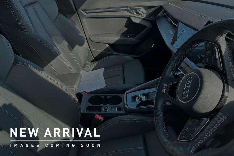 Audi drive select (Auto, Comfort, Dynamic, Efficiency and Individual), Audi smartphone interface, Audi Virtual Cockpit - 10.25" digital and colour instrument cluster, Automatic start/stop system with recuperation, Bluetooth interface, Camera based traffic sign recognition, Collision avoidance assistant, e-Call (emergency call), Electromechanical power speed sensitive steering, Lane departure warning system, MMI Navigation Plus with high resolution 10.1" colour touch screen display, Service indicator, Trip computer, Voice control system with natural language interaction, Sports suspension, 2xUSB-C connection with data and charging functions, DAB Digital radio, 3rd brake light, Acoustic glass windscreen, Aluminium window trim, Auto dimming frameless rear view mirror, Body colour exterior mirrors, Electrically adjustable/heated/folding/auto dimming door mirrors with integrated LED indications + kerb view function for passenger side, Front electric windows, Illuminated aluminium inserts front door sills with S logo, LED daytime running lights, Light and rain sensors, Privacy glass - dark tinted rear window, rear door and side windows, Rear electric windows, Rear side air outlets in grained matt black, Rear side wing doors, Rear wiper, S line bumpers, S roof spoiler, 12V socket and storage compartment in front centre console, 3 seat bench in 2nd row, 3 spoke leather multifunction steering wheel with paddle shift, 4 way electrically adjustable lumbar support for driver and front passenger, 60/40 split folding rear seat bench, Black cloth headlining, Dual zone electronic climate control, Front and rear centre armrest in leather, Front and rear headrests, Front/rear floor mats, Height and reach adjustable steering wheel, Interior lighting - glove compartment light and right hand side, Luggage compartment floor covering, Manual boot compartment lid, Seat side bolsters, Single front passenger seat, Stainless steel pedals and front footrest in black, Twin leather upholstery with front sports seats S embossed logo, Aluminium interior elements pack - A3 Sportback, LED interior lighting pack - A3 Sportback, S line styling pack - A3 Sportback, Technology pack pro with 360 camera - A3 Sportback, 3x3 point rear seat belts, Driver and front passenger airbag with passenger airbag deactivation, Electronic Stabilisation Control (ESC) including ABS, ASR and EDL, First aid kit with warning triangle and 2 safety vests, Front side airbags with head airbags and interaction airbag, Pre-sense front with pedestrian and cyclist detection, Seatbelt monitoring, Tyre pressure loss indicator, Anti theft alarm, Anti-theft wheel bolts, Electronically operated child lock, Immobiliser, Remote control central locking, Dark spectrum aluminium inlays, accent surfaces in the dashboard and centre console in platinum grey silk effect paint finish,