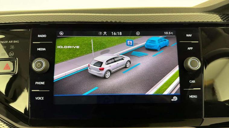 Adaptive cruise control without follow-to-stop and speed limiter, Bluetooth mobile phone interface, Driver alert system, Emergency call service, Front assist system, Power assisted speed sensitive steering, Preparation for We connect and We connect plus, Speedo and rev counter, electronic odometer, trip, service interval display and fuel gauge, Standard rear axle, Travel Assist - Lane keeping system and traffic jam assist, Travel assist including emergency assist, Trip computer, Warning signal and warning light for front and rear seatbelts not fastened, Washer fluid level indicator, Wireless app connect, Front wheel drive, Rear shock absorpion, Start-stop system with battery regeneration (recuperation - energy recovery during braking), DAB Digital radio, Diversity antenna for FM reception, Automatic dimming interior rear view mirror, Body colour bumpers, Body colour door handles, Body colour door mirrors, Electric front windows, Heat insulating darkened glass in side and rear windows, Heat insulating glass windscreen, Power folding adjustable/heated exterior mirrors and front passenger exterior mirror lowering function, Rain sensor, Rear electric windows, Rear fog light, Rear windscreen washer and wiper with interval delay, Third brake light, 12V power socket in centre console, 2 front and 2 rear reading lights, 2 USB-C ports in the front, 2 USB-C charging sockets on the center console in the rear, 3 rear head restraints, 60/40 split folding rear seat and rear seat bench not split, Ceramique headliner, Chrome plated radiator grille inserts, air vent surrounds and light switch surrounds, Door and side trim panel, Driver and front passenger seat height adjustment, Driver/passenger sunvisors with illuminated vanity mirrors, Front centre armrest, Front seat backrest storage pockets, Front standard seats, Handbrake lever handle in leather, Hartley/Thomas cloth upholstery, Isofix child seat preparation easy-fit (for two outer rear seats, and front passenger seat) compatible with I-size, Leather trimmed gear knob, Luggage compartment cover, Luggage compartment floor, Luggage compartment lighting, Multifunction steering wheel, Standard pedal cluster, Light and vision pack - Polo, 3 point height adj front seatbelts + pretensioners, 3x3 point rear seatbelts, ABS, Driver and front passenger airbag with front passenger airbag deactivation, Drivers and front passengers safety optimised head restraints, ESC (Electronic stability control) + EDL (Electronic Differntial lock) and ASR (Traction control), Extended and predictive pedestrian/ cyclist protection, Front curtain and side airbags with center airbag, Front disc brakes, Hill hold control, Rear drum brakes, Single tone horn, Tyre pressure loss indicator, Alarm with interior protection, Anti-theft alarm system with interior monitoring, backup horn, and towing protection, Anti-theft wheel bolts, Electronic engine immobiliser, Lava stone black gloss/matt decorative inserts in dash and front door panels, Low rolling resistance tyres,