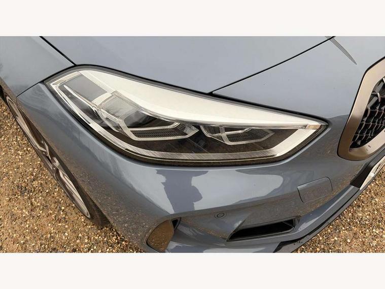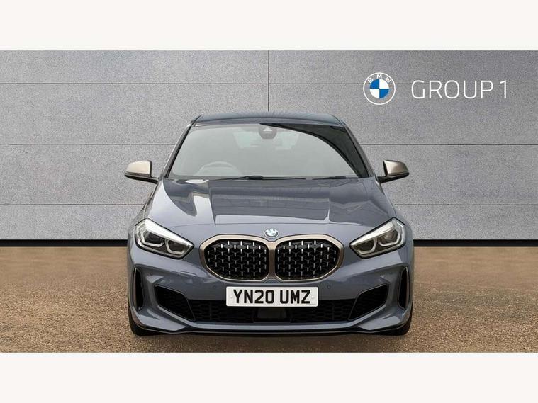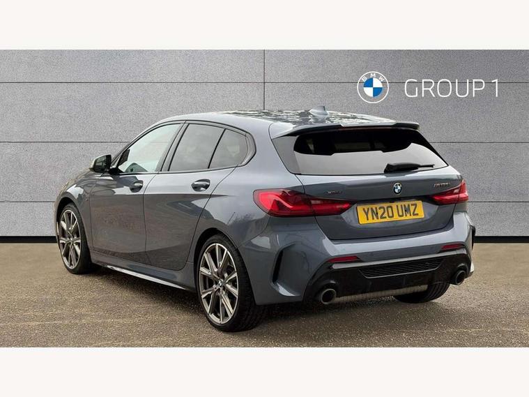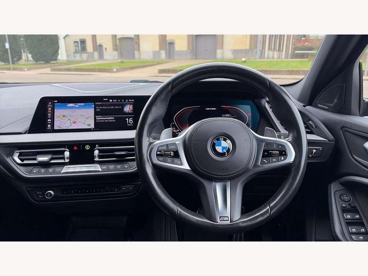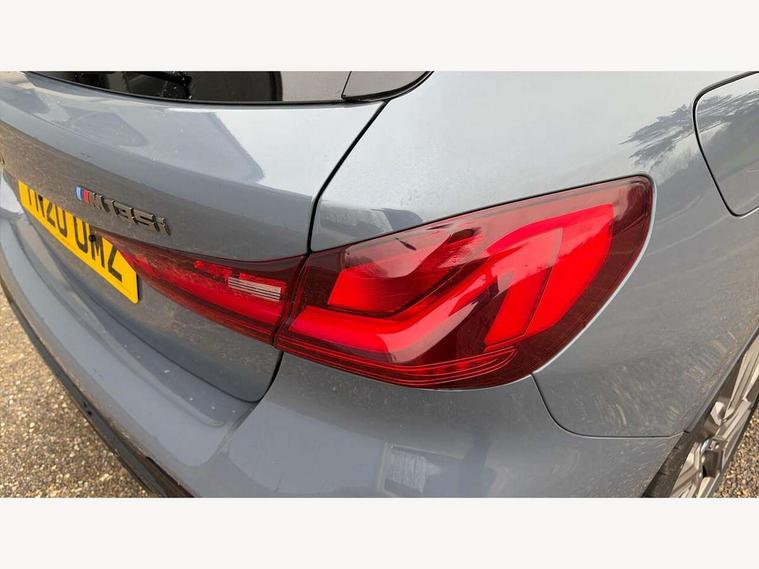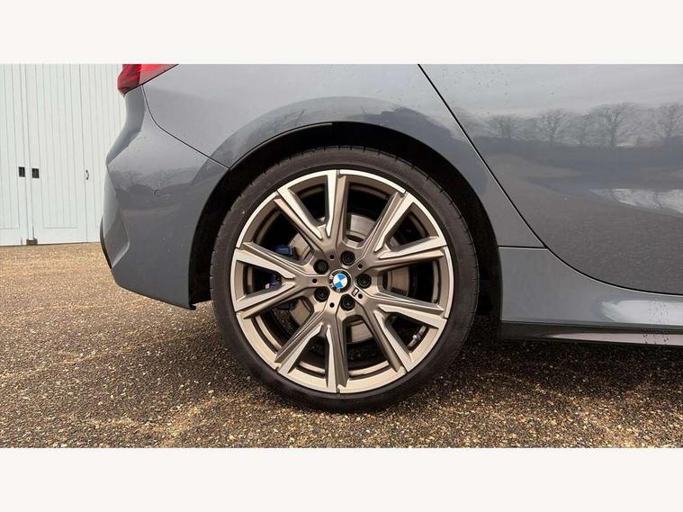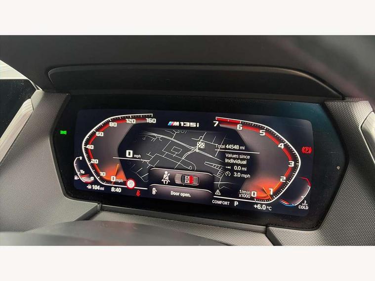 Active guard plus, Attentiveness assist, BMW Live Cockpit Professional sat nav system including 10.25" high resolution display and Intelligent Voice Assistant, BMW Online services, BMW Teleservices, Check Control warning system for monitoring of lights and door/luggage compartment open warning, Eco pro mode, Gearshift time display in manual mode, Integrated owners handbook, M Sports steering, Oil sensor for level and grade, On board computer, Optimum shift indicator, Personal Profile, Pull away assistant, Speed limiter, Sporty fast gear shifting in sport mode, Aluminium lightweight construction, Anti roll bar front and rear, Balancer shaft, Double VANOS, Drive Performance Control, Eight speed sport automatic transmission with electronic selector lever, Electronic differential lock, Engine cover with M performance designation, High precision injection, Larger fuel tank capacity (50 litres), Launch control, Petrol Particulate Filter, VALVETRONIC engine management, Bluetooth audio streaming, DAB Digital radio, Auto dimming rear view mirror, Automatic headlight beam throw control, Body colour door handles, Cerium grey exterior mirror caps, Direction indicator side lights in exterior mirrors, Electric folding and anti dazzle exterior mirrors, Fading support, Follow me home headlights, Front and rear electric windows with open and close fingertip control, anti trap facility and comfort closing, Front door sill finishers with M135i designation, Green tinted heat protection glazing, Heated, electrically adjustable exterior mirror aspheric on driver side, convex on passenger side, High gloss shadow line exterior trim, High gloss shadowline window frame, Recess cover mirror frames and B/C pillar embelisher trim, High level third brake light, Kidney grille frame in Cerium Grey with Mesh design, LED daytime running lights, LED eyebrow turn indicators, Lightweight engineering, M logo designation side in cerium grey, M performance exhaust system, M rear spoiler, Matt black air guide grilles, Model designation on right side of tailgate, Nearside reverse light in rear light cluster, Rain sensor including auto headlights activation, Rear fog lights, Rear window wiper, Round exhaust system with twin cerium grey tailpipes in left and right split, Shark fin antenna, Visible VIN plate, Welcome lighting, Windscreen wipers with integrated washing jets, 12V power socket in centre console, 2 cupholders in front centre console, 3 rear seat head restraints, 3 spoke M sports design leather steering wheel finished in nappa leather with specific M badge, Anthracite headlining, Anthracite Velour floor mats, Child seat ISOFIX attachment for two outer rear seats and front passenger seat with anchorage points, Conditioned based service, Driver and front passenger seat heating, Driver side folding compartment in instrument panel, Folding rear clothes hook, Folding rear seats, Four grab handles integrated in roof lining, Front and rear door pockets, Front and rear side armrest integrated into door trim, Front armrest foldable with integrated storage compartment, Front M seats, Glove compartment, Height adjustable front head restraints, Manual adjust steering wheel, Multi-function controls for steering wheel, Rear seat backrest with manual 60:40 split folding with 3 top tether clips integrated on rear of seat panels, Storage compartment in centre console, Sun visors with vanity mirrors and insert tab, Two zone automatic air conditioning, Connected pack professional - 1 Series, Extended Lighting pack - 1 Series M135i, Extended storage pack - 1 Series, Interior lights pack - 1 Series, Luggage compartment pack - 1 Series, M Sport exterior styling aerodynamics pack - 1 Series 135i, 2 tone horn, 3 point seatbelts on all seats, front pyrotechnic belt tensioners, stopper and belt force limiters, rear coded belt buckles, Airbags - Front driver and passenger, front and rear head, front side, curtain head protection, Anti lock braking system (ABS) with brake assist, BMW emergency call, Brake drying, Braking readiness, Crash sensor activating central locking release, hazard warning lights, fuel cut off, interior lighting + activation of safety battery terminal clamp, Driver and front passenger seat belt security check, Dynamic stability control + (DSC+), Dynamic Traction Control - DTC, Electrically operated hand brake, Front and rear disc brakes, Front passenger manual airbag deactivation, M Sport braking system, M sport seatbelt, Rear child proof door locks, Seatbelt warning, Side impact protection, Torsen mechanical limited slip differential, Tyre pressure monitoring system, Warning triangle and first aid kit, Automatic drive away locking facility, Central locking switch for all doors, fuel filler cap and luggage compartment, Deadlocking function system to all doors, Locking wheel bolts, Remote control with integrated key with High-gloss Black inlay and M designation and 1 button for open/ close lock, window, open luggage compartment, Start/stop button with comfort go keyless engine start and auto start stop deactivation button, Thatcham Cat.1 alarm and immobiliser, Contrast stitching on instrument panel, 18" Burnished M double spoke Bi-colour alloy wheels finished in Cerium grey matt - style 556M, BMW mobility system, Reduced rolling resistance tyres,