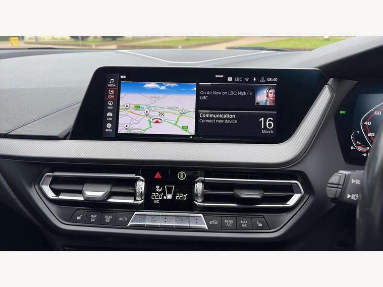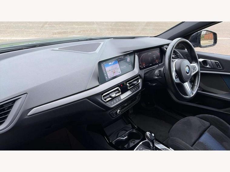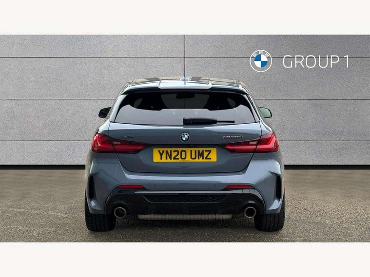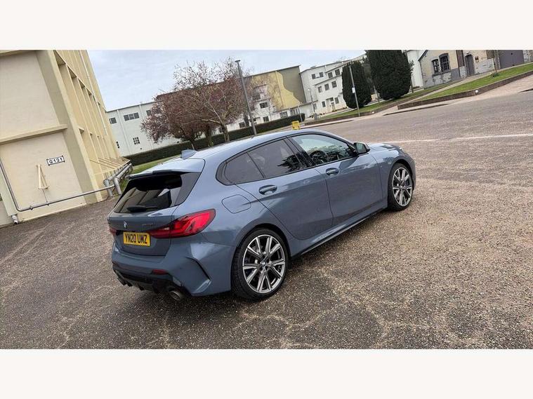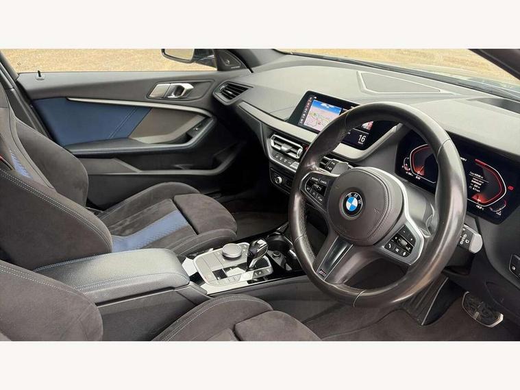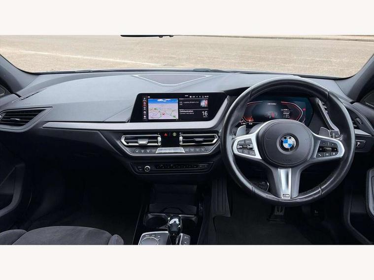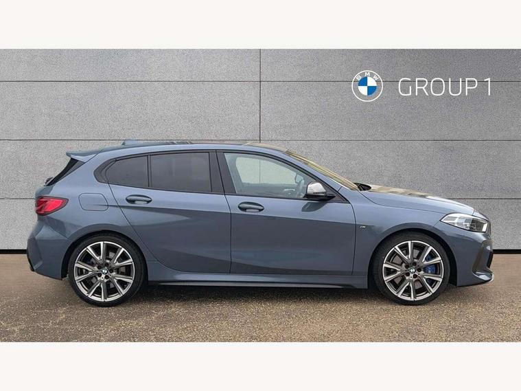 Active guard plus, Attentiveness assist, BMW Live Cockpit Professional sat nav system including 10.25" high resolution display and Intelligent Voice Assistant, BMW Online services, BMW Teleservices, Check Control warning system for monitoring of lights and door/luggage compartment open warning, Eco pro mode, Gearshift time display in manual mode, Integrated owners handbook, M Sports steering, Oil sensor for level and grade, On board computer, Optimum shift indicator, Personal Profile, Pull away assistant, Speed limiter, Sporty fast gear shifting in sport mode, Aluminium lightweight construction, Anti roll bar front and rear, Balancer shaft, Double VANOS, Drive Performance Control, Eight speed sport automatic transmission with electronic selector lever, Electronic differential lock, Engine cover with M performance designation, High precision injection, Larger fuel tank capacity (50 litres), Launch control, Petrol Particulate Filter, VALVETRONIC engine management, Bluetooth audio streaming, DAB Digital radio, Auto dimming rear view mirror, Automatic headlight beam throw control, Body colour door handles, Cerium grey exterior mirror caps, Direction indicator side lights in exterior mirrors, Electric folding and anti dazzle exterior mirrors, Fading support, Follow me home headlights, Front and rear electric windows with open and close fingertip control, anti trap facility and comfort closing, Front door sill finishers with M135i designation, Green tinted heat protection glazing, Heated, electrically adjustable exterior mirror aspheric on driver side, convex on passenger side, High gloss shadow line exterior trim, High gloss shadowline window frame, Recess cover mirror frames and B/C pillar embelisher trim, High level third brake light, Kidney grille frame in Cerium Grey with Mesh design, LED daytime running lights, LED eyebrow turn indicators, Lightweight engineering, M logo designation side in cerium grey, M performance exhaust system, M rear spoiler, Matt black air guide grilles, Model designation on right side of tailgate, Nearside reverse light in rear light cluster, Rain sensor including auto headlights activation, Rear fog lights, Rear window wiper, Round exhaust system with twin cerium grey tailpipes in left and right split, Shark fin antenna, Visible VIN plate, Welcome lighting, Windscreen wipers with integrated washing jets, 12V power socket in centre console, 2 cupholders in front centre console, 3 rear seat head restraints, 3 spoke M sports design leather steering wheel finished in nappa leather with specific M badge, Anthracite headlining, Anthracite Velour floor mats, Child seat ISOFIX attachment for two outer rear seats and front passenger seat with anchorage points, Conditioned based service, Driver and front passenger seat heating, Driver side folding compartment in instrument panel, Folding rear clothes hook, Folding rear seats, Four grab handles integrated in roof lining, Front and rear door pockets, Front and rear side armrest integrated into door trim, Front armrest foldable with integrated storage compartment, Front M seats, Glove compartment, Height adjustable front head restraints, Manual adjust steering wheel, Multi-function controls for steering wheel, Rear seat backrest with manual 60:40 split folding with 3 top tether clips integrated on rear of seat panels, Storage compartment in centre console, Sun visors with vanity mirrors and insert tab, Two zone automatic air conditioning, Connected pack professional - 1 Series, Extended Lighting pack - 1 Series M135i, Extended storage pack - 1 Series, Interior lights pack - 1 Series, Luggage compartment pack - 1 Series, M Sport exterior styling aerodynamics pack - 1 Series 135i, 2 tone horn, 3 point seatbelts on all seats, front pyrotechnic belt tensioners, stopper and belt force limiters, rear coded belt buckles, Airbags - Front driver and passenger, front and rear head, front side, curtain head protection, Anti lock braking system (ABS) with brake assist, BMW emergency call, Brake drying, Braking readiness, Crash sensor activating central locking release, hazard warning lights, fuel cut off, interior lighting + activation of safety battery terminal clamp, Driver and front passenger seat belt security check, Dynamic stability control + (DSC+), Dynamic Traction Control - DTC, Electrically operated hand brake, Front and rear disc brakes, Front passenger manual airbag deactivation, M Sport braking system, M sport seatbelt, Rear child proof door locks, Seatbelt warning, Side impact protection, Torsen mechanical limited slip differential, Tyre pressure monitoring system, Warning triangle and first aid kit, Automatic drive away locking facility, Central locking switch for all doors, fuel filler cap and luggage compartment, Deadlocking function system to all doors, Locking wheel bolts, Remote control with integrated key with High-gloss Black inlay and M designation and 1 button for open/ close lock, window, open luggage compartment, Start/stop button with comfort go keyless engine start and auto start stop deactivation button, Thatcham Cat.1 alarm and immobiliser, Contrast stitching on instrument panel, 18" Burnished M double spoke Bi-colour alloy wheels finished in Cerium grey matt - style 556M, BMW mobility system, Reduced rolling resistance tyres,