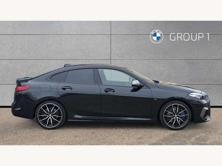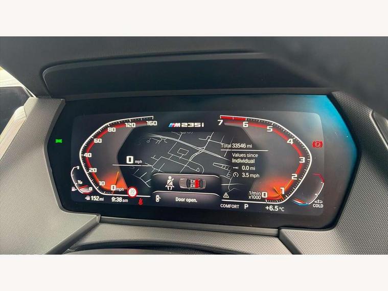 Active guard plus, Attentiveness assist, Auto start-stop, BMW ConnectedDrive online services, BMW Intelligent Personal Assistant, BMW Live Cockpit Professional with 10.25" high resolution instrument and control display, BMW Online services, BMW operating system with 7.0 mid interface, BMW Teleservices, Check Control warning system for monitoring of lights and door/luggage compartment open warning, Cruise control with braking function, Electro hydraulically controlled multi plate clutch in rear axle, Energy efficient operating strategy, iDrive controller with 7 short cut favourite buttons on centre console, Integrated navigation data with map data via USB +features such as 3D landmarks and micro city models, Integrated owners handbook, Intelligent voice assistant, Lane departure warning system, M Sport steering with M235i xDrive M performance specific settings, On board computer - average speed+fuel consumption, service interval, clock/date, odometer/trip meter, outside temperature display and ice warning, Optimum shift indicator, Personal Profile, Pull away assistant, Speed limiting function, 2 balance shafts, 8 speed sport automatic transmission with electronic selector lever, auto P function, coasting idle, race track, sport, gearchange display manual mode, Aluminium lightweight construction, BMW TwinPower twin-scroll Turbo four-cylinder petrol engine, Double VANOS, Drive performance control with ECO PRO comfort + sport mode, Electronic differential lock, Engine cover with M performance designation, High precision injection, Larger fuel tank capacity (50 litres), Launch control, M235i specific heavily de-throttled engine intake air guide, M235i specific high-performance cooling package, M235i specific larger turbocharger with integrated divert-air valve, Performance Control, Petrol Particulate Filter, Power transmission of front wheel drive on the rear axle via angle transmission on the front axle differential and two part cardan shaft, VALVETRONIC engine management, Variable, stepless and infinitely adjustable distribution of drive torque between the front and rear axles, xDrive intelligent all wheel drive with M235i specific reinforced components, 2x USB Type C ports (for charging and data transfer), 4G LTE Connectivity with hard wied 4G network sim card, DAB digital radio, MP3 players and RDS double tuner, Auto wipers, Automatically dimming rear view mirror, Body colour door handles, Direction indicator side lights integrated exterior mirrors, Electric windows - front and rear, with open/close fingertip control and trap release, Exterior mirrors - electrically folding with anti-dazzle, Fading support, Follow me home headlights, Front and rear bumper system with replaceable deformation elements, Front door sill finishers in black plastic with M235i designation, Heated, electrically adjustable exterior mirror aspheric on driver side, convex on passenger side, High gloss black B pillar finish, High gloss shadow line exterior trim, High level third brake light, LED daytime running lights, Lightweight engineering, M Performance exhaust system with valve control and minimised exhaust back pressure, M rear spoiler, Model designation on right side of tailgate includes xDrive designation onleft handside for M235i xDrive, Preparation for high beam assistant, Rain sensor with automatic headlight activation, Rear boot, Rear fog lights, Rear side wing doors, Reinforced crank drive, new pistons and adapted con rods, Reversing light in rear light cluster, Welcome lighting, 12V power socket in centre console, 2 cupholders in front centre console, 3 rear seat head restraints, 3 rear seats, 3 spoke M sports design leather steering wheel finished in nappa leather with specific M badge, Additional under floor storage in luggage compartment, Anthracite finished floor mats with contrasting surround, Anthracite headlining, Automatic two zone climate control air conditioning, Child seat ISOFIX attachment for two outer rear seats and front passenger seat with anchorage points, Conditioned based service, Driver and front passenger seat heating, Front and rear door pockets including bottle trays, Front and rear side armrests integrated into door trim, Front armrest foldable with integrated storage compartment, Front centre interior light over interior mirror and rear centre automatic interior light when door is opened/ignition switched off or via remote key, Front head restraints, Front M Sport seats, Front passenger seat, Glove compartment, Glovebox with light, Luggage compartment lighting, Manually adjustment steering wheel column, Multi-function controls for steering wheel, Shift-by-wire selector shift, Steering wheel paddles, Sun visors with vanity mirrors and insert tab, Through loading system with 40/20/40 split folding rear seat, Two lashing eyes, Additional interior lighting pack - 2 Series Gran Coupe, Connected pack professional - 2 Series Gran Coupe, Extended storage pack - 2 Series Gran Coupe, M Sport exterior styling aerodynamics pack - 2 Series Gran Coupe 235i, 2 tone horn, Airbag - Front driver and passenger, front and rear head, front side, curtain head protection, manual deactivation of front passenger airbag possible, Anti lock braking system (ABS) with cornering brake control, BMW emergency call, Brake drying, Braking readiness, City braking function, Crash sensor activating of airbags, Unlocking doors, hazard warning lights, interior light, safety battery terminal, Dynamic stability control + (DSC+), Dynamic Traction Control - DTC, Electrically operated hand brake, Integrated torsen mechanical limited slip differential on front axle, M Sport braking system in blue high gloss + blue painted brake calipers with M designation, M sport seatbelt, Rear brake discs, Rear child proof door locks, Seat belt security check for driver and front passenger, Seatbelt warning, Side impact protection, Three point seat belts on all seats including front belt stopper, pyrotechnic belt tensioners and belt forc