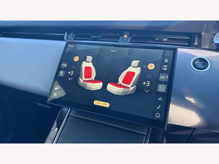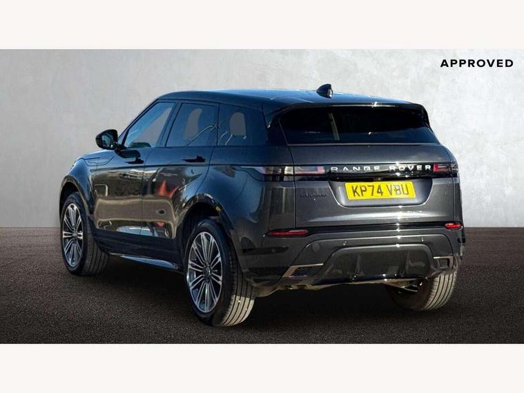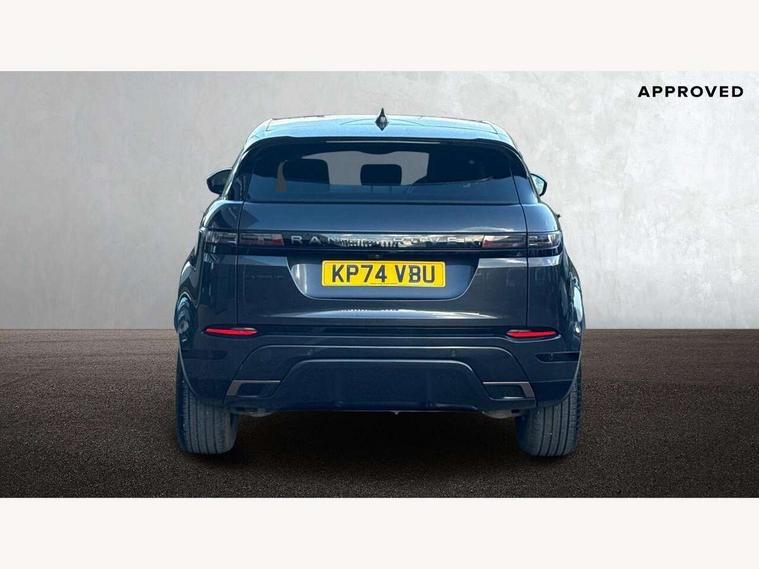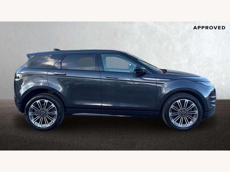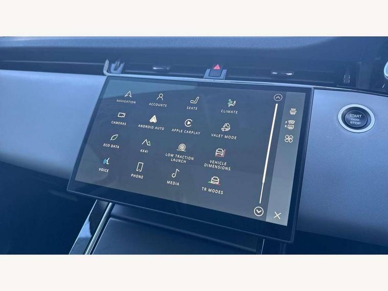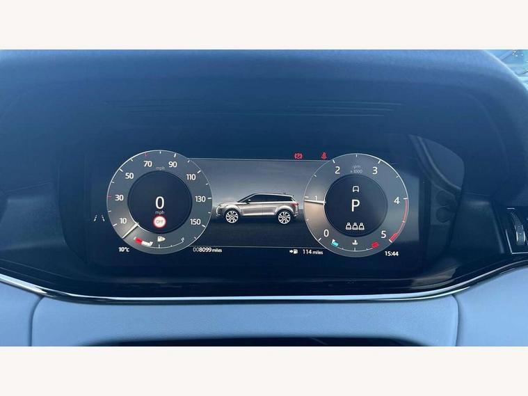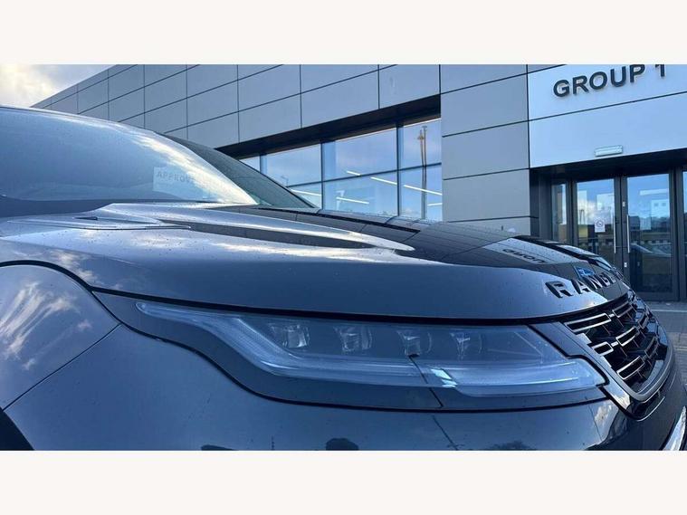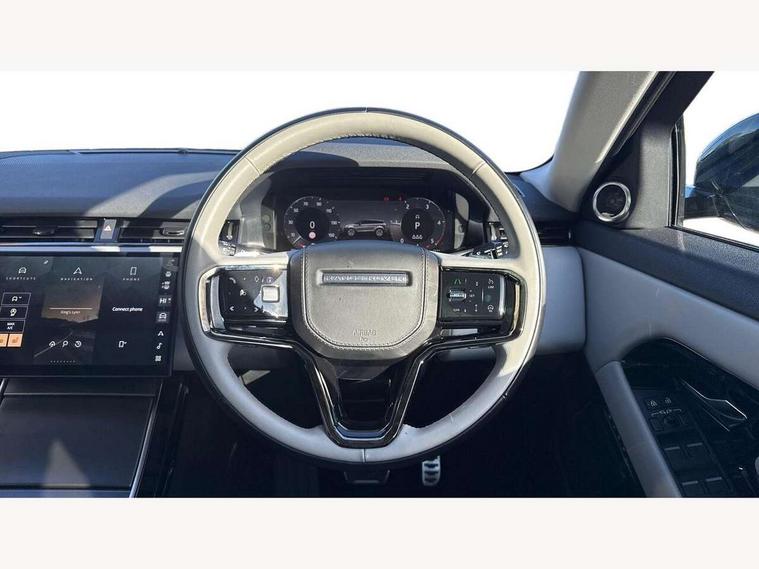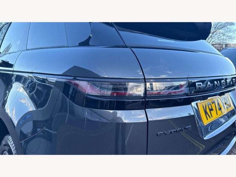 11.4" touch screen, Adaptive cruise control, Android Auto, Apple car play, Blind spot assist, Bluetooth connectivity, Brake pad wear indicator warning light, Driver condition monitor, eCall emergency system, Eco mode, Electronic power assisted steering (EPAS), Front and rear parking aid, InControl remote, Interactive driver display, Land Rover InControl apps, Lane keep assist, Pivi pro connected includes diamond pivi variant, smart settings, connected navigation pro, nuance speech licence, Powered tailgate/boot lid, Rear collision monitor, Rear traffic monitor, Traffic sign recognition with adaptive speed limiter, Voice control system, Wireless device charging, All terrain progress control, Diesel exhaust fluid (DEF) large tank, Efficient Driveline, Large fuel tank, Passive suspension, Terrain Response 2, Digital Audio Broadcast radio-DAB, Steering wheel mounted controls, Acoustic laminated windscreen, Auto headlights, Automatic headlight levelling, Electric windows with one touch open/close and anti trap, Flush deployable exterior door handles, Front and rear recovery eyes, Heated rear window with timer, Heated washer jets, Heated windscreen, Pixel LED headlights with signature DRL and LED tail Lights, Power fold, auto-dimming, heated door mirrors with approach lights and auto dimming driver side, Rain sensing windscreen wipers, Rear animated directional indicators, Rear fog lights, Rear side wing doors, Rear wiper, Side repeater indicators in mirror, Tailgate spoiler, Third brake light, Winter wiper park position, 14 way driver memory electric front seats with 2 way manual headrests + 4 way lumbar support, bolsters, 40:20:40 split folding rear seats with centre headrest and armrest, Ambient interior lighting, Bright metal pedals, Carpet mats, Chrome tread plates with range rover branding Includes stainless steel loadspace scuff plate with etched graphic, Customer configurable single point entry, Electrically adjustable steering column with memory function and easy entry/exit, Front and rear cupholders, Heated steering wheel, Isofix system on outer rear seats, Overhead lighting console, Overhead stowage for sunglasses, Passive front head restraints, Rear air vents, Rear head restraints, Satin chrome gearshift paddles, Single passenger seat, Sunvisors with illuminated vanity mirrors, Twin sliding front centre armrest, Online pack with data plan - Evoque, Power socket pack 2 - Evoque, 3 rear 3 point seatbelts, Anti-lock braking system (ABS), Brake hold function, Customer configurable autolock, DSC - Dynamic Stability Control, Electronic brake force distribution, Electronic parking brake, Electronic traction control, Emergency braking, Front and rear seatbelt reminder, Hill descent control, Hill launch assist, Low traction launch, Occupant protection assist, Passenger seat occupant detector, Power operated child locks, Roll stability control, Six airbags - Driver and passenger airbags/driver knee airbag/front side airbag and curtain airbags, Torque vectoring brake, Tyre pressure monitoring system, Alarm, Immobiliser, Intrusion sensor, Keyless entry, Locking wheel nuts,