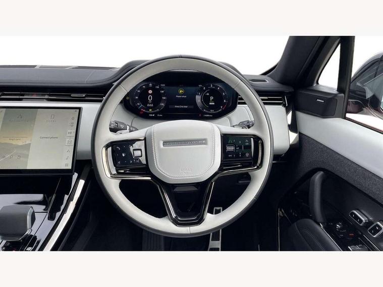 13.1" Touchscreen, 3D 360 degree surround camera with wade sensing, Adaptive cruise control with steering assist, Android Auto, Apple car play, Blind spot assist, Bluetooth connectivity streaming, Driver condition response, Eco mode, Front and rear parking aid, Interactive Driver display instrument cluster, Lane departure warning system, Lane keep assist, Push button start, Rear collision monitor, Rear traffic monitor, Remote, Traffic sign recognition with adaptive speed limiter, Trip computer, Wireless device charging, 8 speed automatic transmission, Adaptive dynamics, All wheel drive system, Automatic access height, Home charging cable, Public charging cable, Terrain Response 2, Twin speed transfer box, DAB Radio (Digital Audio Broadcasting), Incontrol protect - SOS emergency call with automatic collision detection, optimised assistance call and Incontrol remote app essential, Pivi pro connected, USB/aux input socket, Adaptive brake lights, Automatic headlight levelling, Automatic headlights, Centre high mounted stop light, Electric heated/power fold memory door mirrors with approach lights and auto dimming driver side, Electric windows with one touch open/close and anti trap, Flush deployable exterior door handles, Follow me home lighting, Front and rear recovery eyes, Headlight power wash, Heated rear window, Heated washer jets, Heated windscreen, Illuminated aluminium treadplates with Range Rover script, Integrated twin tailpipes, LED tail lights, Metal load space scuff plates, No badges, Rain sensing windscreen wipers, Rear animated directional indicators, Rear fog lights, Rear side wing doors, Rear wash/wipe, Remote window closing, Side repeater indicators in mirror, Trailer stability assist, Winter wiper park position, 3 seat bench in 2nd row, 60:40 seats with power recline and loadthrough, Air quality sensor, Automatic air recirculation system, Bright metal foot pedals, Centre console with armrest, Customer configurable single point entry, Driver's footrest, Easy boot loading, Ebony console door armrests and seatbelts, Electric adjustable steering column, Front and rear cupholders, Front door storage space, Front head restraints, Front map lights, Front seat back map pockets, Front stowage pocket, Front/rear passenger grab handles, Gearshift paddles, Heated steering wheel, Isofix child seat preparation, Loadspace cover, Loadspace Hook, Loadspace light, Loadspace mounting provisions, Lockable glovebox, Luggage tie-downs in loadspace, Multifunction steering wheel, Pollen filter, Power socket, Rear centre armrest, Rear head restraints, Rear ISOFIX, Single front passenger seat, Three 12V accessory power outlets, Upper secondary glovebox, Online pack with data plan - Range Rover Sport, 3 point seatbelts on all seats, Anti-lock braking system (ABS), Brake pre-fill technology, Configurable autolock, Cornering brake control (CBC), DSC - Dynamic Stability Control, EBD - Electronic brakeforce distribution, Electric parking brake, Electronic traction control, Emergency braking, Front seatbelt pretensioners, Front side airbags, Height adjustable front seatbelts, Hill descent control, Hill launch assist, Low traction launch, Occupant protection assist, Passenger seat occupant detector with front airbags, Power operated child locks, Roll stability control, Seatbelt warning, TPMS (Tyre pressure monitoring system), Immobiliser, Intrusion sensor, Keyless entry, Locking wheel nuts, Perimetric and volumetric anti theft alarm, Remote locking,