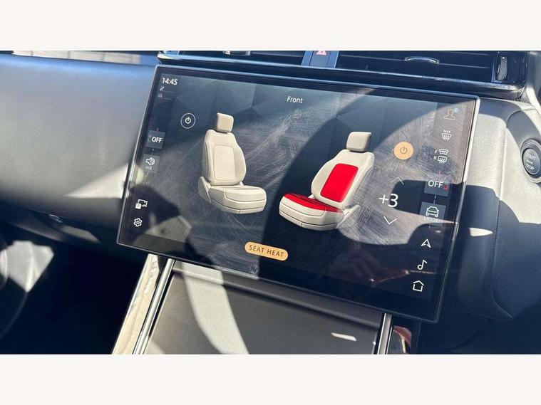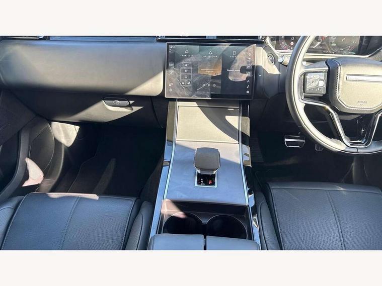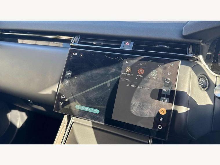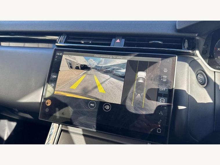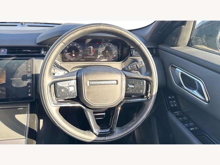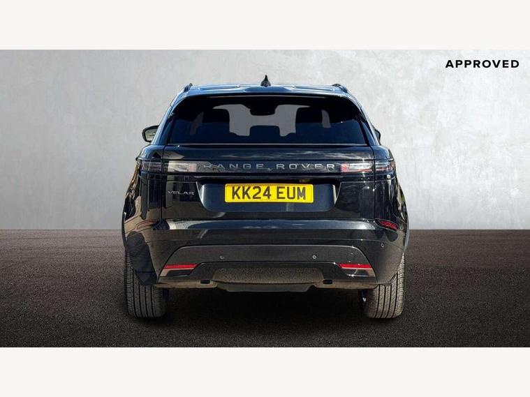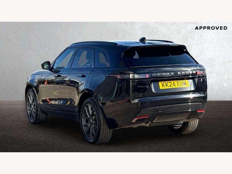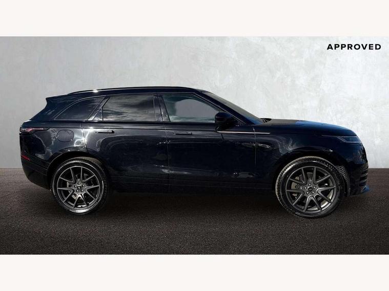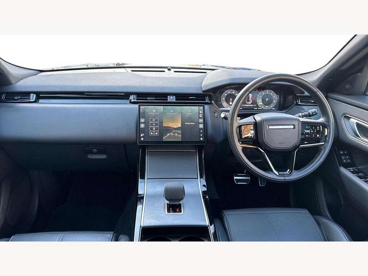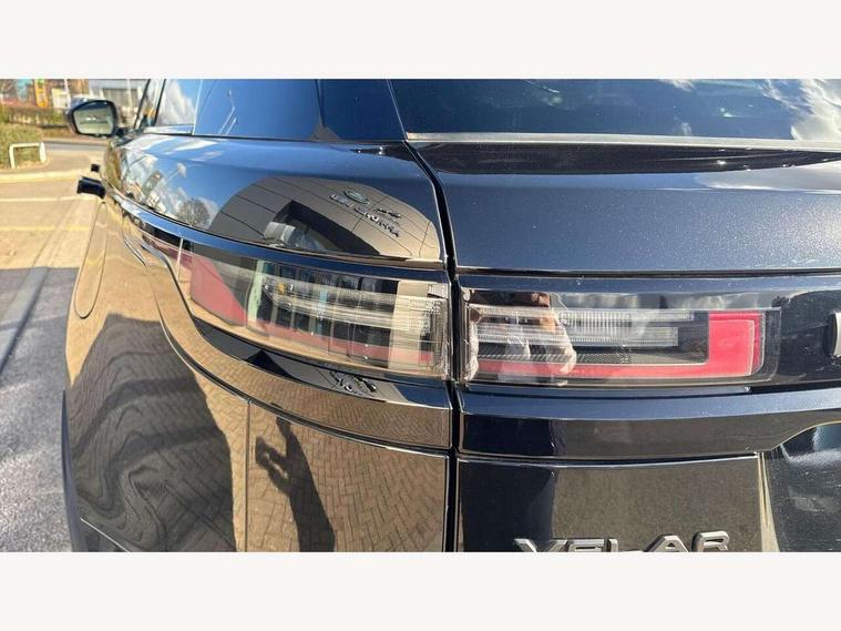 Adaptive cruise control with steering assist, Android Auto, Apple CarPlay, Blind spot assist, Bluetooth connectivity, Brake pad wear indicator warning light, Driver condition monitor, eCall emergency call system, Front and rear parking aid, InControl remote, Land Rover InControl apps, Lane keep assist, Pivi pro with connected navigation, Rear collision monitor, Rear traffic monitor, Service indicator, Speed proportional electronic power assisted steering (EPAS), Traffic sign recognition with adaptive speed limiter, Trip computer, Voice control system, Wireless device charging, 7kw on board charger, 8 speed automatic transmission, AC/DC charging, Adaptive dynamics, All terrain progress control, Coil suspension system, Home charging cable, Open differential with torque vectoring by braking, Public charging cable, Single speed transfer box, DAB radio, Steering wheel mounted controls, 3rd brake light, Acoustic laminated windscreen, Auto dimming interior rear view mirror, Automatic headlamp levelling, Automatic headlights, Body coloured bumpers, Boot protection plate, Electric windows with one touch open/close and anti trap, Flush deployable exterior door handles, Follow me home headlights, Heated rear window with timer, Heated washer jets, Heated windscreen, Metal front tread plates, Metal load space scuff plates, Pixel LED headlights with signature DRL, Power fold, auto-dimming, heated door mirrors with memory and approach lights, Rain sensor windscreen wipers, Rear animated directional indicators, Rear fog lights, Rear side wing doors, Rear wash/wipe, Tailgate/boot lid spoiler, Trailer stability assist, Velar badge, 3 seat bench in 2nd row, Ambient lighting, Bright metal pedals, Carpet mats, Driver/passenger sunvisors with illuminated vanity mirrors, Ebony morzine headlining, Electrically adjustable steering column, Extended leather upgrade, Heated steering wheel, Isofix system on outer rear seats, Loadspace cover, Overhead lighting console, Overhead stowage for sunglasses, Passive front headrests, Rear air vents, Rear centre headrest, Single front passenger seat, Twin front cupholders, Twin sliding front centre armrest, Online pack with data plan - Velar, Power socket pack 2 - Velar, 380mm front brakes and 325mm rear brakes, 3x3 point rear seatbelts, Anti-lock braking system (ABS), Cornering brake control, Curtain airbags, Customer configurable autolock, Door side intrusion beams, Driver airbag, DSC - Dynamic Stability Control, Electronic brake force distribution, Electronic parking brake, Electronic traction control, Emergency braking, Front and rear seatbelt reminder, Hill descent control, Hill launch assist, Low traction launch, Passenger airbag, Power operated child locks, Rear airbags, Roll stability control, Side airbags, Tyre pressure monitoring system (TPMS), Unpainted brake calipers, Global lock and unlock switch on driver door, Immobiliser, Intrusion sensor, Keyless entry, Lock only switch on front passenger door, Locking wheel nuts, Perimetric alarm, Remote central locking, All season tyres,