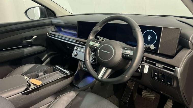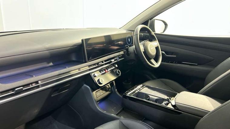 12.3" LCD display with driver's supervision instrument cluster, 12.3" widescreen navigation with bluelink and mapcare, Blind spot view monitor, Bluetooth system, Cruise control - smart adaptive speed control with stop and go function, Digital clock, Drive mode selector, Driver attention warning, E-call, Emergency stop signalling system, Forward Collision Avoidance Assist (FCA) - Car, Pedestrian and Cycle, Forward Collision Avoidance Assist Junction Turning (FCAJX), Front and rear parking sensors, Front, rear and side parking distance warning, Highway Driving Assist (HDA), Hyundai road side assistance, Intelligent speed limit assist, Lane follow assist, Lane keep assist, Over the air updates(OTA), Parking collision avoidance assist (PCA), PAS, Rear camera and guidance parking system, Rev counter, Smart power tailgate, Surround view monitor, Tailgate open warning light, Trip computer, Trip odometer, Voice recognition, Water temperature gauge, Windscreen washer fluid sensor and warning indicator, Wireless Apple CarPlay/Android Auto, Wireless phone charging pad, 2 front and 2 rear USB-C ports, DAB Digital radio, Krell premium audio system with 8 speakers and subwoofer, Steering wheel mounted audio/phone controls, Adjustable intermittent front windscreen wipers with aero wiper blade, Auto dimming rear view mirror, Automatic defog system, Automatic headlights with dusk sensor, Automatic windscreen wipers with rain sensor, Black wheel arches, Body colour bumpers, Body colour door mirrors with integrated indicators, Body colour exterior door handles, Electric tilt/slide panoramic sunroof, Electrically adjustable, heated and power folding door mirrors, Follow me home headlights, Front and rear electric windows with anti-trap mechanism and one touch control, Front fog lights, LED 3rd brake light, LED daytime running lights, LED rear lights, Matrix LED headlights, Positioning Lights - LED, Privacy glass - Rear windows and tailgate, Rear side wing doors, Rear wash/wipe with intermittent wipe setting, Roof rails, Tinted glass with windscreen shade band, Trailer stability assist, 12V power outlets in front console and luggage compartment, 3 seat bench in 2nd row, 40/20/40 split folding rear seat, 64 colours interior ambient lighting, Adjustable head restraints (Up and down), Cupholders in rear armrest, Door courtesy lights, Driver and passenger sunvisors with illuminated LED vanity mirrors, Driver's seat electric adjustments, Driver's seat memory, Front and rear door pockets, Front armrest with storage box, Front centre console and door bottle holders, Front passenger's seat electric adjustments, Heated front seats, Heated rear seats, Heated steering wheel, Height/reach adjustable steering column, Illuminated/air conditioned glove compartment, ISOFIX child seat anchorage points attached on outer rear seats, Leather upholstery, Leather wrapped steering wheel and gear knob, Luggage compartment lighting, Luggage cover, Luggage hooks, Luggage net, Map and reading lights, Rear seat remote folding function, Rear side window sunblind, Reclining rear seats, Retractable load cover, Single front passenger seat, Sunglasses holder, Three zone climate control, Touch sensitive climate controls with temperature dials, TUCSON branded metal door scuff plate, Underfloor boot compartment, Ventilated front seats, Trailer wiring package - Tucson, 3x3 point rear seatbelts, Active bonnet, Airbag - Front, front side, curtain and centre front airbags, Anti-lock brake system (ABS), Brake assist function, Childproof rear door locks, Curtain airbag roll over sensor, Downhill brake control, Electric parking brake, Electronic stability control, Front and rear seatbelt reminder, Front passenger airbag deactivation switch, Front seatbelt pretensioners, Hill start assist control (HAC), Multi-Collision braking, Outer rear seatbelt height adjustment, Seatbelt height adjustment for front seats, Traction control, Tyre pressure monitoring system with individual tyre pressure display - TPMS, Vehicle stability management, Deadlocks, Immobiliser, Locking wheel nuts, Remote control central locking, Smart key with keyless entry and engine start/stop button, Speed sensitive auto door locking, Thatcham category 1 alarm, 19" Alloy wheels, Tyre repair kit,