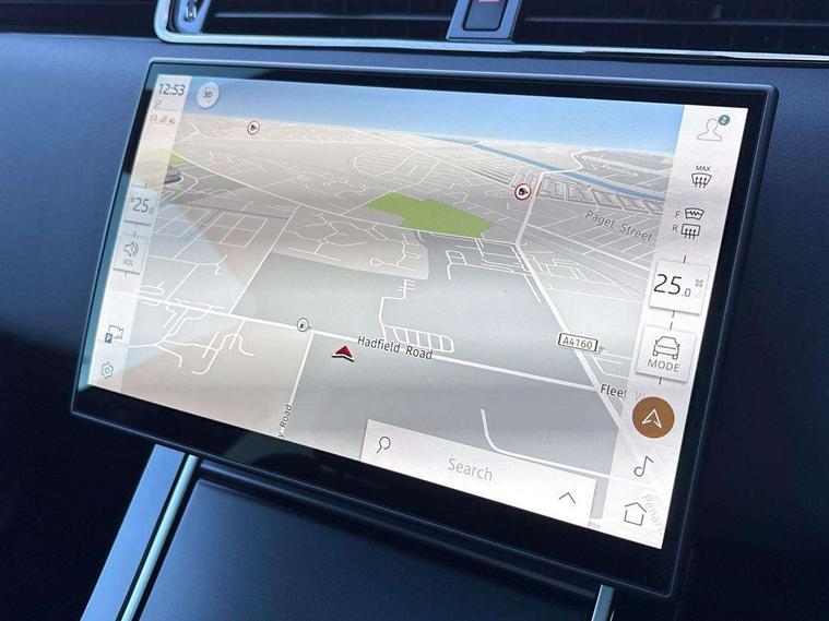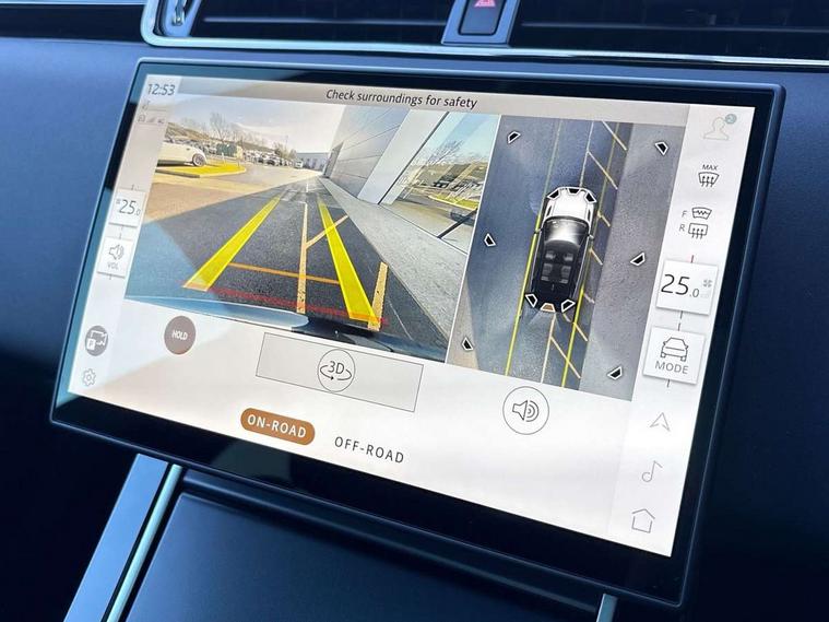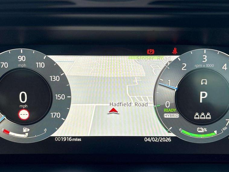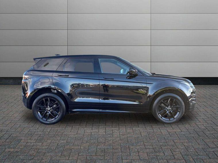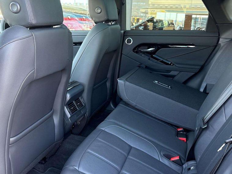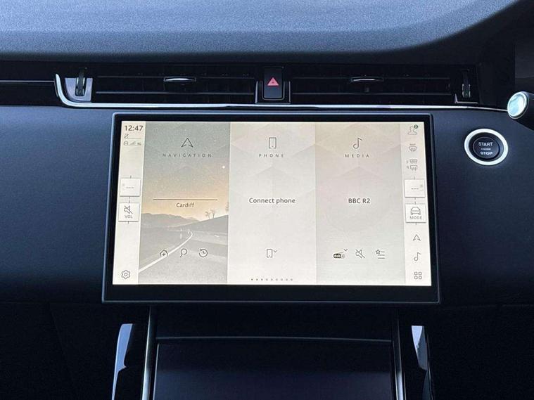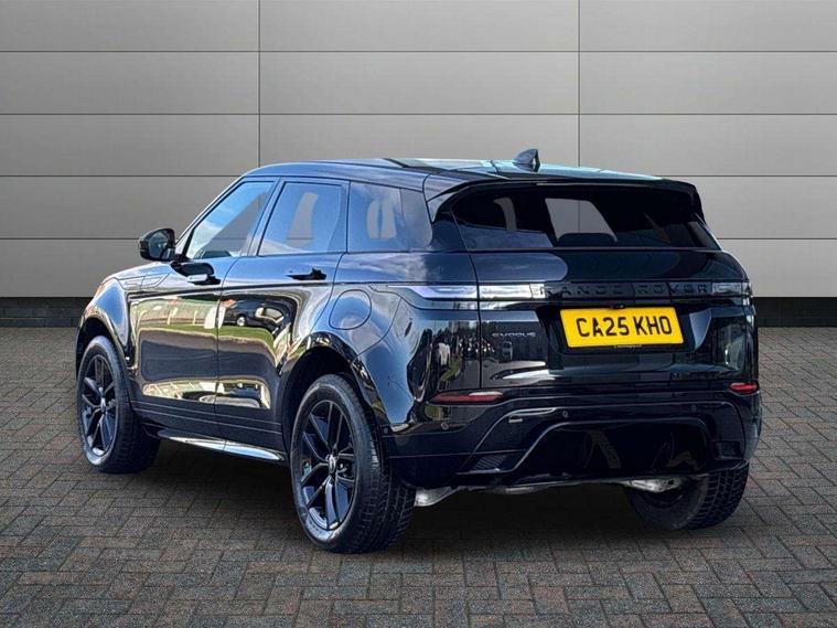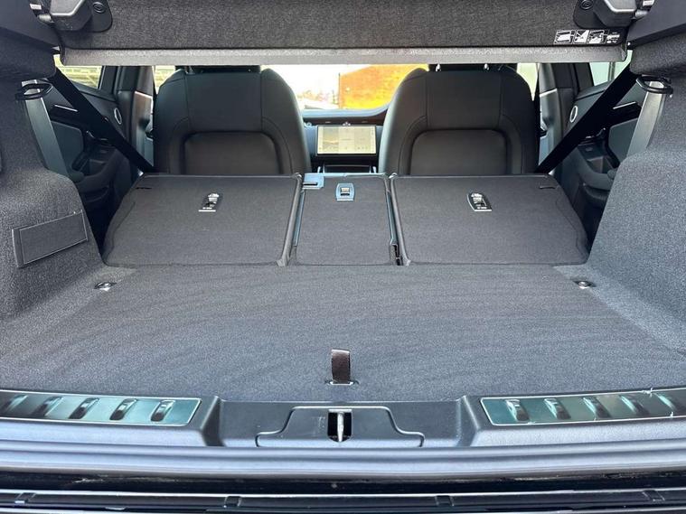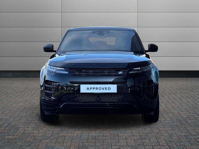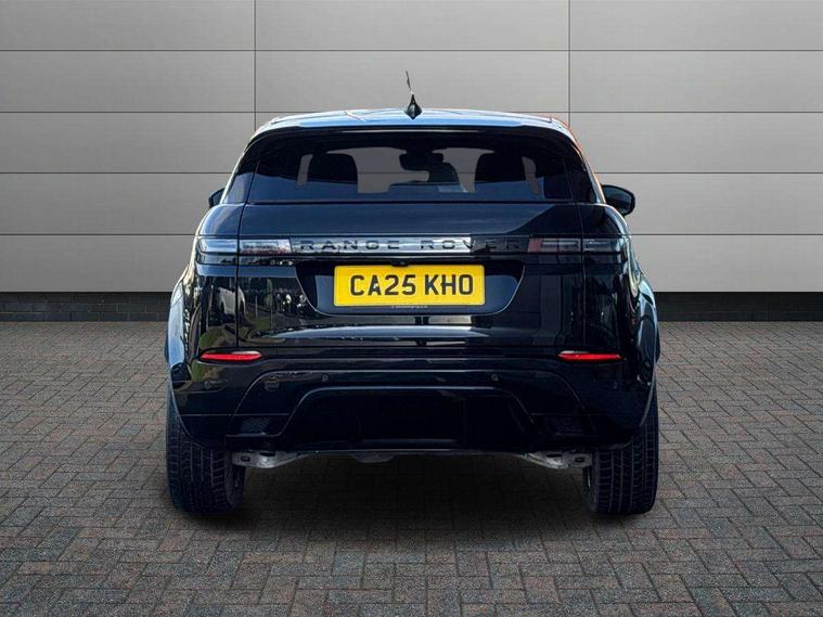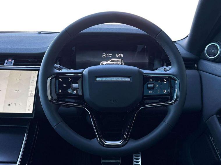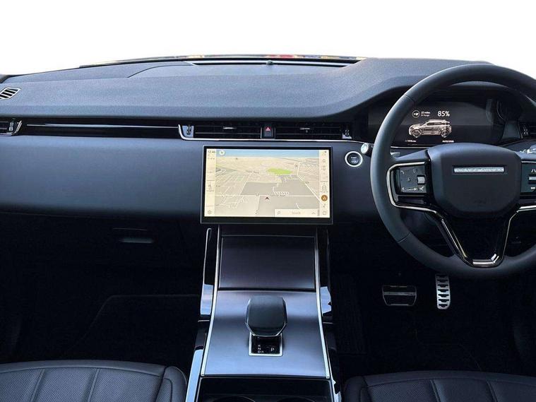 11.4" touch screen, 3D 360 degree surround camera with wade sensing, Adaptive cruise control, Android Auto, Apple car play, Blind spot assist, Bluetooth connectivity, Brake pad wear indicator warning light, Driver condition monitor, eCall emergency system, Eco mode, Electronic power assisted steering (EPAS), Front and rear parking aid, InControl remote, Interactive driver display, Land Rover InControl apps, Lane keep assist, Pivi pro connected includes diamond pivi variant, smart settings, connected navigation pro, nuance speech licence, Powered tailgate/boot lid, Rear collision monitor, Rear traffic monitor, Tailgate, Traffic sign recognition with adaptive speed limiter, Voice control system, Wireless device charging, All terrain progress control, Electric rear axle drive, Home charging cable, Large fuel tank, Passive suspension, Public charging cable, Terrain Response 2, Digital Audio Broadcast radio-DAB, Meridian sound system with 400W subwoofer and 11 speakers, Steering wheel mounted controls, Acoustic laminated windscreen, Auto dimming interior rear view mirror, Auto headlights, Auto high beam assist, Automatic headlight levelling, Black contrast roof, Electric windows with one touch open/close and anti trap, Fixed panoramic sunroof with powered sunblind, Flush deployable exterior door handles, Front and rear recovery eyes, Heated rear window with timer, Heated washer jets, Heated windscreen, LED headlights with signature DRL and LED tail Lights, Metallic paint, Power fold, auto-dimming, heated door mirrors with approach lights and auto dimming driver side, Privacy glass, Rain sensing windscreen wipers, Rear animated directional indicators, Rear fog lights, Rear side wing doors, Rear wiper, Tailgate spoiler, Third brake light, Winter wiper park position, 12 way driver memory and 10 way passenger electric front seats with 2 way manual headrest + 4 way lumbar support, 40:20:40 split folding rear seats with centre headrest and armrest, Bright metal pedals, Cabin lighting, Carpet mats, Chrome tread plates with range rover branding Includes stainless steel loadspace scuff plate with etched graphic, Customer configurable single point entry, Front and rear cupholders, Grained Leather upholstery, Heated front seats, Heated steering wheel, Isofix system on outer rear seats, Manually adjustable steering column, Overhead lighting console, Overhead stowage for sunglasses, Passive front head restraints, Rear air vents, Rear head restraints, Satin chrome gearshift paddles, Single passenger seat, Standard steering wheel with Moonlight Bezel, Sunvisors with illuminated vanity mirrors, Twin sliding front centre armrest, Two zone climate control, Black exterior styling pack - Evoque, Power socket pack 2 - Evoque, 3 rear 3 point seatbelts, Anti-lock braking system (ABS), Black brake calipers, Brake hold function, Customer configurable autolock, DSC - Dynamic Stability Control, Electronic brake force distribution, Electronic parking brake, Electronic traction control, Emergency braking, Front and rear seatbelt reminder, Hill descent control, Hill launch assist, Low traction launch, Occupant protection assist, Passenger seat occupant detector, Power operated child locks, Roll stability control, Six airbags - Driver and passenger airbags/driver knee airbag/front side airbag and curtain airbags, Torque vectoring brake, Tyre pressure monitoring system, Alarm, Immobiliser, Intrusion sensor, Keyless entry, Locking wheel nuts, Secure tracker pro, Black brushed aluminium finisher, 19" gloss black alloy wheels - Style 5136, All season tyres, Tyre repair system,