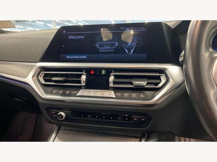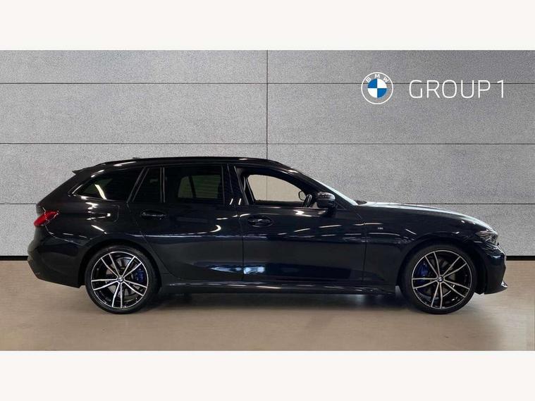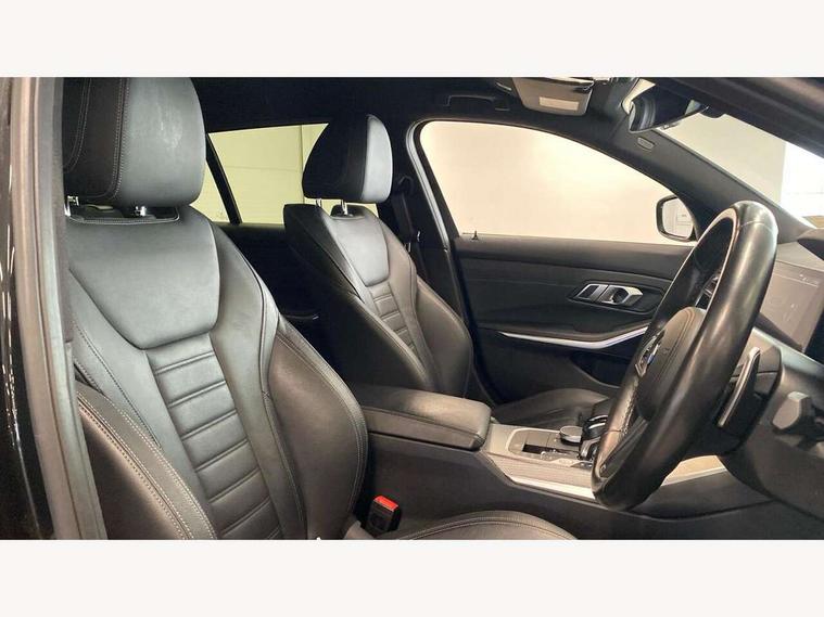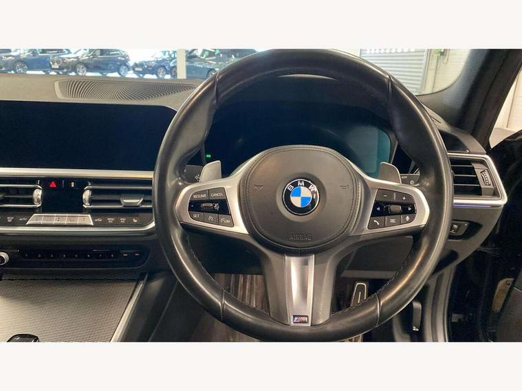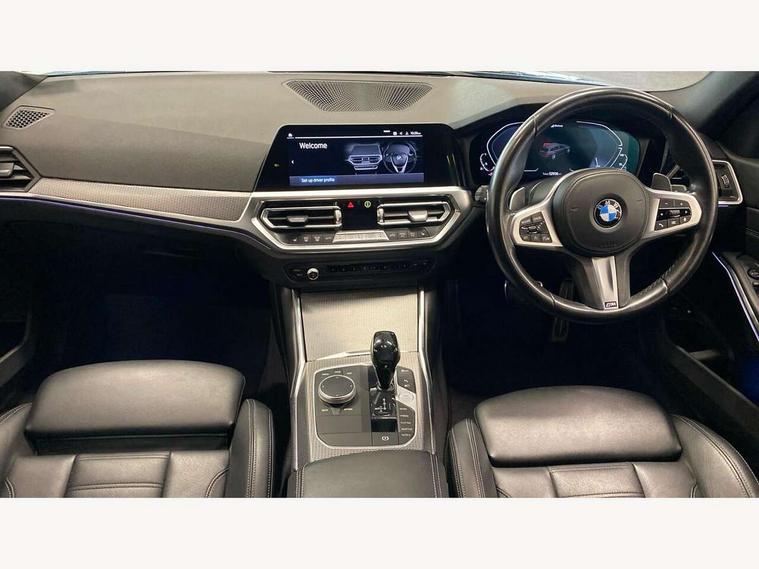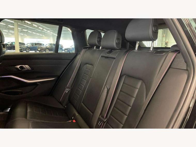 Active guard plus, Attentiveness assist, Auto start-stop, Bluetooth hands free facility with USB audio interface with audio streaming, BMW ConnectedDrive oline services with BMW apps, BMW iDrive controller on centre console, BMW service history, BMW Teleservices, Brake pad wear indicator in front and rear, Check Control warning system for monitoring of lights and door/luggage compartment open warning, Condition based service, Cruise control with brake function + speed limiter, Electric power steering with Servotronic steering optimised at all speed ranges, Gearshift time display in manual mode, Instrument cluster with speedometer with mph readout, tachometer, fuel gauge and oil temperature gauge, Integrated owners handbook, Oil sensor for level and grade, warning by check control system, On board computer - average speed+fuel consumption, service interval, clock/date, odometer/trip meter, outside temperature display and ice warning, Optimum shift indicator, Personal Profile - automatic lock when driving away selectable, Balanced 50/50 weight distribution, Battery cut-out switch, Charging cable - Mode 2, Drive performance control - ECO PRO, comfort and sport modes, Electronic differential lock control (EDLC), EU6 emissions management, Stroke dependent dampers, DAB tuner, Electronic service booklet, Stereo speaker system with 2 mid range speakers in the front door trims and rear parcel shelf + 2 central bass speakers underneath the front seats, Acoustic glazing, Active airstream chrome frame kidney grille with 8 high gloss black vertical slats, Automatic headlight activation/adjustment, Automatic headlight beam throw control with load dependent regulating reaction, dynamic compensation of braking dive and acceleration squat, Black roof mouldings, Body colour door handles, Body colour fuel filler flap, Body colour mirror caps with bottom segment in matt black, Dynamic brake lights, Electric windows - front and rear, with open/close fingertip control, anti-trap facility and comfort closing, Exhaust tailpipe - split left and right, Exterior mirrors - electrically folding with anti-dazzle, Fading support, Front and rear bumper system with replaceable deformation elements, Front black door sill finishers with BMW designation, Green tinted heat protection glazing, High gloss black exterior B pillar, Interior rear view electrochromatic mirror with automatic anti dazzle function, LED daytime running lights, LED front fog lights, Lightweight engineering, M designation on front side panels, left and right, Model designation on right side of tailgate, Rear wiper, Shark fin antenna, Two part LED tailights in L-shape with components in smoked glass, brake light, LED turn indicator and rear fog light, Visible VIN plate, Welcome lights in interior and door handle area, Windscreen wipers with integrated washing jets, 12V power socket in front storage compartment, 2 front cupholder in centre console with clamping elements and matt black inlay, 3 zone automatic air conditioning, 4 pieces lashing eyelets in luggage compartment, 40:20:40 split folding rear seat with loading system, Ambient lighting with welcome carpet light, Anthracite headlining, Armrest integrated in front and rear door trim + front centre console armrest, Backrest width adjustment, Centred top Luggage compartment lights, Four grab handles integrated in roof lining, Front and rear door exit lighting (left / right), Front and rear door pockets, Front and rear reading lights, Front and rear velour floor mats, Front head restraints, Front sport seats, Heated front seats, Height adjustable mechanically and infinitely variable steering column, Illuminated armrest storage compartment, Illuminated glove compartment with separate small compartment, Interior lighting - front centre over interior mirror with soft light, rear centre and front and rear footwell lighting, Make-up mirror lights, Rear centre armrest with 2 cupholders, Rear centre console with storage compartment and ventilation grille, Sunvisors with vanity mirrors and ticket pocket, Three spoke multifunction M sport leather steering wheel, Toolkit located in luggage compartment, Connected pack professional - 3 Series Saloon/Touring, Live cockpit professional pack - 3 series, M sport exterior styling pack - 3 Series Saloon/Touring, 2 tone horn, 3 rear seats with non folding headrests, Airbags activation controlled with intensity and scope, BMW emergency call, Brake energy regeneration, Braking pre-tensioning, Child proof locking system in rear door, Child seat ISOFIX attachment rear outer seats, Coasting in idle in ECO PRO mode, Crash sensor activating of airbags, Unlocking doors, hazard warning lights, interior light, safety battery terminal, Deactivation of fuel pump in the event of a crash, Driver and front passenger side airbags, integrated in the door side seat backrest bolsters for all seat variants, Driver/Front Passenger airbags, Dry braking, Dynamic brake control, Dynamic stability control + (DSC+) - Anti-lock Braking System (ABS) with brake assist and cornering brake control + Automatic Stability Control (ASC), Dynamic Traction Control - DTC, Electric parking brake including automatic hold function and automatic release of the parking brake when driving off, Front passenger manual airbag deactivation, Head airbags for all 4 outer seats, Hill start assist, Seat belt security check for driver and front passenger, Side impact protection, Three 3 point seat belts on all seats including front belt stopper, pyrotechnic belt tensioners and belt force limiters, Tyre pressure monitoring with three level warning strategy, Ventilated front and rear disc brakes, Warning triangle and first aid kit, Alarm system (Thatcham 1) with remote control and electronic engine immobiliser, Central locking switch for all doors, fuel filler cap and luggage compartment, Remote control with integrated key one button open/close vehicle and windows, sole opening of the luggage compartment lid and panic mode, 