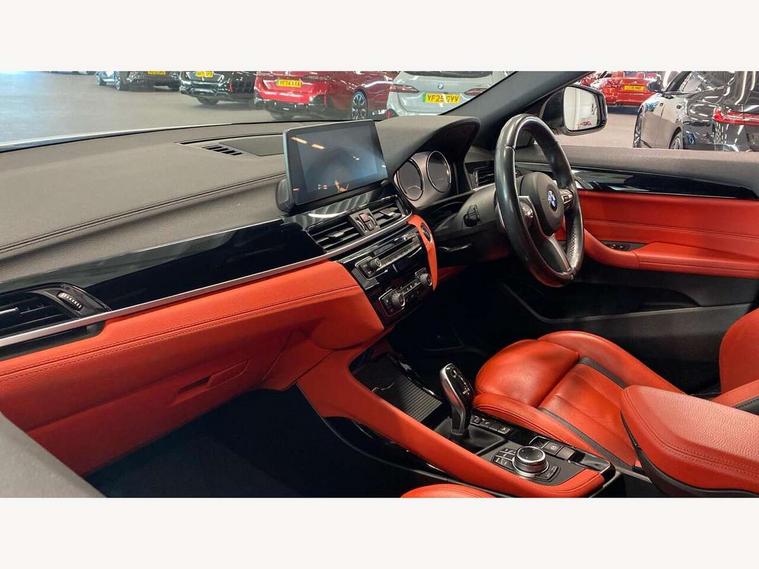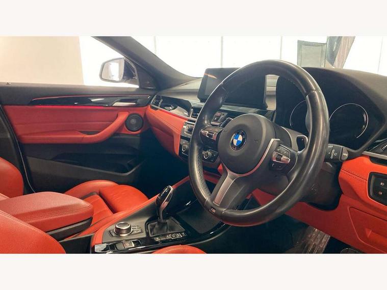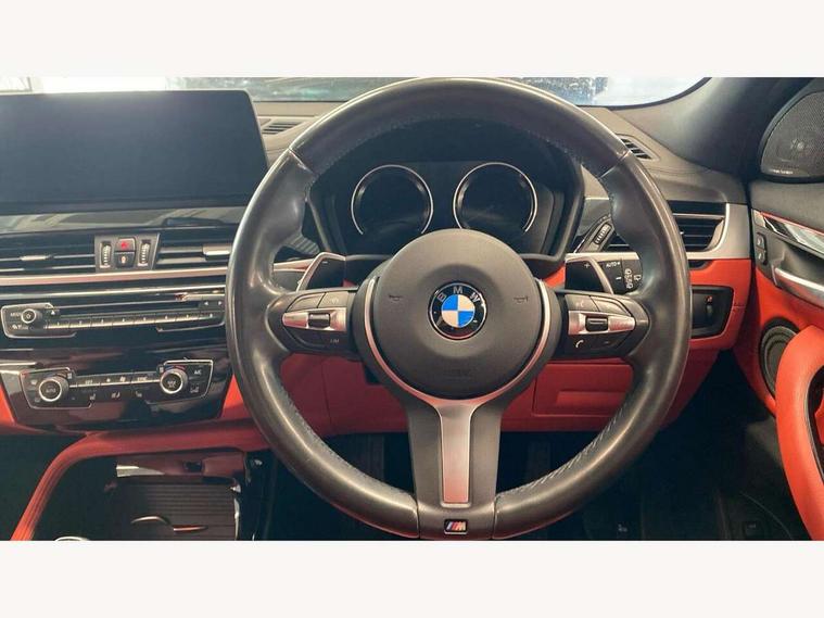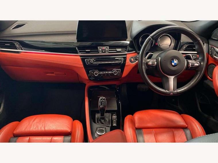 Active Guard incl speed limiting and lane departure functions with auto steering, and front collision warning with brake intervention, Automatic powered tailgate, Bluetooth hands free facility with USB audio interface, BMW Online services, BMW remote services, BMW Teleservices, Brake pad wear indicator in front and rear, Check Control warning system for monitoring of lights and door/luggage compartment open warning, Eco pro mode, Instrument cluster with black optic and 5.7" colour display + speedometer + tachometer + fuel gauge + instant fuel economy with M35i logo, Lights on warning by audio warning signal when ignition is switched off, M Sports steering, On board computer - average speed+fuel consumption, service interval, clock/date, odometer/trip meter, outside temperature display and ice warning, Optimum shift indicator, Personal Profile, Real time traffic information, Speed limiter, TMC for lifetime of vehicle, 12V compressor with integrated sealant injection bottle and hose, 61 Litre touring fuel tank, Anti roll bar front and rear, Balancer shaft, Drive performance control with ECO PRO comfort + sport mode, Electronic differential lock, Engine cover with M performance designation, M sport suspension, Performance Control, Sport automatic transmission, Twin tube gas filled shock absorbers with degressive characteristic curve, 2x USB sockets in front, Bluetooth audio streaming, BMW professional radio with CD player, DAB Digital radio, Steering wheel mounted audio/telephone controls, Adjustable headlights, Automatically dimming rear view mirror, BMW badge on bonnet, tailgate with integrated tailgate release and C pillars, Body colour door handles, Body colour roof trims, Chrome kidney grille with black vertical slats, Clear lenses direction indicator lights, Direction indicator side lights integrated in exterior mirrors using LED technology, Door mirror integrated indicators, Dynamic brake lights, Electrically adjustable and heated door mirrors glass aspheric on driver's side and convex on passenger side, Fingertip control / anti-trap function on electric window, Front and rear bumper system, Front and rear electric windows, Green tinted heat protection glazing, Halogen headlights, Heated windscreen washer jets, High gloss black front side air intake with matt black insert, High gloss black in window frame, recess covers and B-Pillar trim, High level third brake light, LED front fog lights, LED headlights with extended contents - cornering, high beam assist, LED day running lights with dynamic beams-through for urban and motorway, Lightweight engineering, M rear spoiler, Model designation in left tailgate, Model designation in right tailgate, Rain sensor with automatic headlight activation, Rear fog lights, Rear tail lights with LED technology and 3D design, Rear window aerial, Rear window wiper with wash/wipe function, Reversing light in rear light cluster, Round exhaust system with twin cerium grey tailpipes in left and right split, Satin aluminium roof rails, Shark fin antenna, Twin chrome exhaust tailpipes, Visible VIN plate, Welcome lighting, 40:20:40 manually split folding rear seat with two tilt positions for backrest, Ambient light in front centre console/cup holder area, Anthracite headlining, Armrest in centre section of rear seat backrest and folding, Automatic two zone climate control air conditioning, Child seat ISOFIX attachment for two outer rear seats and front passenger seat with anchorage points, Conditioned based service, Driver and front passenger seat heating, Driver/passenger sunvisors with ticket holders, Drivers folding storage compartment, Floor mats with black surround and M flag detail on front mats, Front and rear door armrests, Front armrest, Front door sill finishers with M35i designation, Front head restraints, Gearshift paddles on steering wheel, Glovebox with light, Interior light in front centre interior mirrors and rear centre auto interior light activation when door is opened when ignition switched off, LED ambient lighting in upper door trim and dashboard trim, Luggage compartment lighting, Luggage compartment loading edge with stainless steel insert, Luggage compartment with underfloor storage and four lashing eyes, M Sport multifunction leather steering wheel, Rake/reach adjustable steering wheel, Retaining strap on the left side of the luggage compartment, Three rear headrests, Two cupholders in front and rear centre console, Extended lighting pack - X2 M35i, Extended storage pack - X2, M Sport aerodynamic pack - X2 M35i, 3 point seatbelts on all seats, front pyrotechnic belt tensioners, stopper and belt force limiters, rear coded belt buckles, Airbags - Front driver and passenger, front and rear head, front side, curtain head protection, Anti lock braking system (ABS) with brake assist, ASC - Active stability control, BMW emergency call, Brake drying, Brake energy regeneration, Braking readiness, Child proof locking system in rear door, Crash sensor activating central locking release with hazard warning lights and interior lighting + battery safety cut-off, Driver and front passenger seat belt security check, DSC - Dynamic Stability Control, Dynamic Traction Control - DTC, Electrically operated parking brake with automatic drive release, Electronic parking brake, Front passenger airbag deactivation, Front ventilated brake disc, Hill descent control, Hill start assist, M Sport braking system, M Sport seatbelts, Multi collision braking system, Rear brake discs, Side impact protection, Twin horns, Tyre pressure monitor, Warning triangle and first aid kit, Auto door lock when driving, Central locking switch for all doors, fuel filler cap and luggage compartment, Engine immobiliser, Incorrect fuel protection system, Locking wheel bolts, Remote control including integrated key with M specific highlight, Remote control Thatcham category 1 alarm, Start/stop button with comfort go keyless engine start and auto start stop deactivation button, Dash top fi