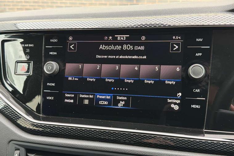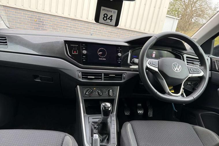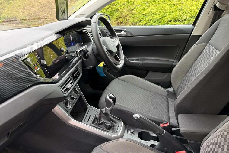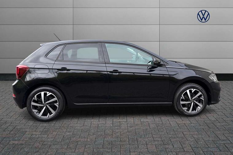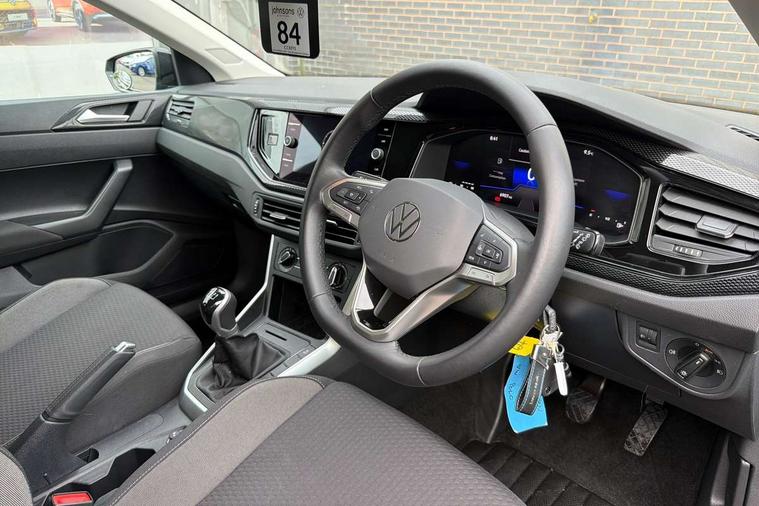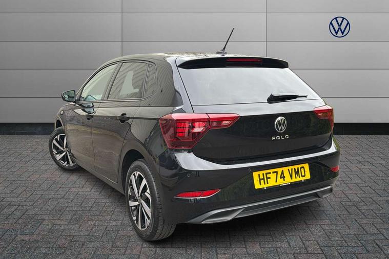 Adaptive cruise control without follow-to-stop and speed limiter, Advanced driver attention and drowsiness monitor, Bluetooth mobile phone interface, Dynamic road sign display, Emergency call service, Mobile phone preparation with inductive charging function, Multifunction front facing camera for distance control, Park distance control, Power assisted speed sensitive steering, Preparation for navigation system with media and internet package, Preparation for We connect and We connect plus, Rear view camera, Speedo and rev counter, electronic odometer, trip, service interval display and exterior temperature gauge, Standard rear axle, Travel Assist - Lane keeping system and traffic jam assist, Travel assist including emergency assist, Trip computer, Warning signal and warning light for front and rear seatbelts not fastened, Washer fluid level indicator, Wireless app connect, Front wheel drive, Rear shock absorpion, Start-stop system with battery regeneration (recuperation - energy recovery during braking), DAB Digital radio, Diversity antenna for FM reception, Front and rear 6 speakers, Automatic dimming interior rear view mirror, Automatic headlight control with LED separate daytime running lights with coming/leaving home function, Body colour bumpers with chrome inserts, Body colour door handles, Body colour door mirrors, Electric front windows, Engine badge deletion, Headlight range adjustment, Heat insulating and laminated safety glass windshield, Heat insulating darkened glass in side and rear windows, LED Headlights, LED rear combination lamps, Power folding adjustable/heated exterior mirrors and front passenger exterior mirror lowering function, Rain sensor, Rear electric windows, Rear fog light, Rear side wing doors, Rear tinted glass from B-pillar backwards approx 65% tinted, Rear windscreen washer and wiper with interval delay, Third brake light, 12V power socket in centre console, 2 front and 2 rear reading lights with switch off delay and dimmer, 2 USB-C ports in the front, 2 USB-C charging sockets on the center console in the rear, 3 rear head restraints, 60/40 split folding rear seat and rear seat bench not split, Ceramique roof lining, Chrome plated radiator grille inserts, air vent surrounds and light switch surrounds, Door and side trim panel, Driver and front passenger seat height adjustment, Driver/passenger sunvisors with illuminated vanity mirrors, Front centre armrest, Front seat backrest storage pockets, Front standard seats, Handbrake lever handle in leather, Hartley/Thomas cloth upholstery, Headliner in recycled material, Isofix child seat preparation easy-fit (for two outer rear seats, and front passenger seat) compatible with I-size, Leather trimmed gear knob, Luggage compartment cover, Luggage compartment lighting, Removable luggage compartment floor, Single front passenger seat, Standard climatic zones, Standard pedal cluster, Three spoke leather wrapped multifunction steering wheel, Light and vision pack - Polo, 3 point height adj front seatbelts + pretensioners, 3 point seat belt for centre rear seat, 3 point seatbelts, outer rear with ECE lable, ABS, Driver and front passenger airbag with front passenger airbag deactivation, Drivers and front passengers safety optimised head restraints, ESC (Electronic stability control) + EDL (Electronic Differntial lock) and ASR (Traction control), Extended and predictive pedestrian/ cyclist protection, Front assist with autonomous emergency braking (for Adaptive Cruise Control ACC up to 130 mph), Front curtain and side airbags with center airbag, Front disc brakes, Hill hold control, Manual child lock in rear doors, Rear drum brakes, Single tone horn, Tyre pressure loss indicator, Alarm with interior protection, Anti-theft alarm system with interior monitoring, backup horn, and towing protection, Anti-theft wheel bolts, Electronic engine immobiliser, Lava stone black gloss/matt decorative inserts in dash and front door panels, 16" Torsby alloy wheels, Low rolling resistance tyres,