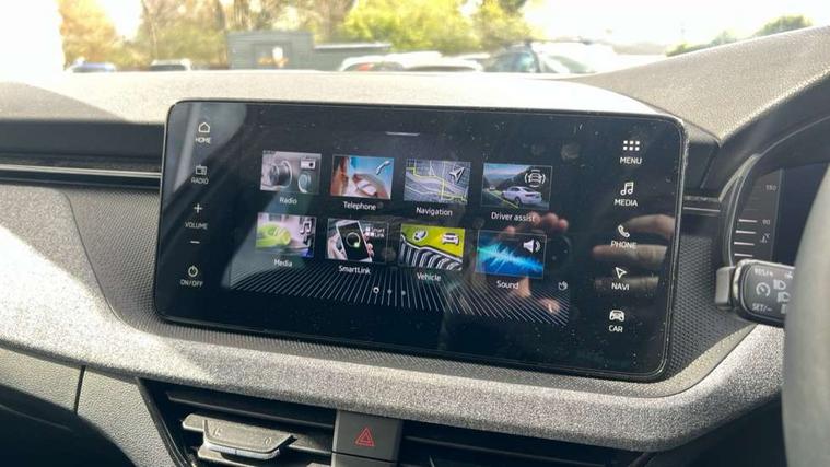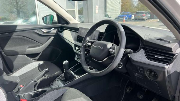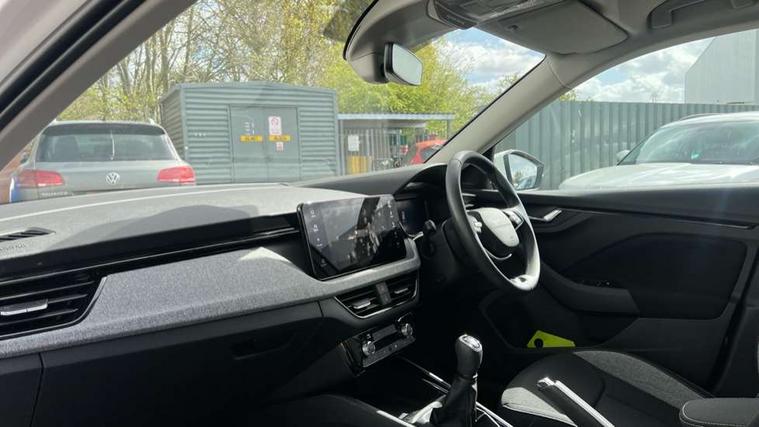 Advanced driver attention and drowsiness monitor, Bluetooth system, E-call, Front assist system, PAS, Rear parking sensors, Rear view camera, Service indicator, Speed limiter, Traffic sign recognition, Virtual cockpit with 10.25" display, Wireless smartlink, 4 USB C ports, 8 Speakers, 9.2" Skoda navigation display, DAB Digital radio, Auto dimming rear view mirror, Automatic headlight control with coming home and leaving home feature, Black roof rails, Body colour bumpers, Body colour door mirrors and handles, Chrome grille surround, Front and rear electric windows, Full LED headlights, Heated rear window, LED brake lights, LED daytime running lights, LED front turning lights, LED high beam, LED low beam, LED third brake light, Rear LED fog light, Rear side wing doors, Rear wiper, Ticket holder inside windscreen, 12V socket in luggage compartment, 3 seat bench in 2nd row, Black hotstamping, Cargo elements, Chrome inner door handles, Driver and passenger sun visors with vanity mirror, Dual zone climate control, Front and rear roof lights, Front centre armrest, Front head restraints, Glove compartment with illumination, Height adjustable driver seat, Height adjustable front passenger seat, Ice scraper, Inner circulation control with pollen filter, ISOFIX on front passenger seat, Isofix preparation for back seats, Krepp recycled decor inserts, Leather gearknob and handbrake lever, Loft cloth upholstery, Manual lumbar support for front seats, Net package and top tether hooks in boot space, Net under rear shelf, Overhead glasses storage compartment, Pocket on the back of both front seats include mobile phone pockets, Rake/reach adjustable steering wheel, Reading lights, Satin black door inserts, Single front passenger seat, Textile floor mats, Third rear headrest, Top tether for front passenger seat, Umbrella in driver's door, 3x3 point rear seatbelts, Airbags - driver and front passenger, Disc brakes, ESP, Extended and predictive pedestrian/cyclist protection, Front passenger airbag deactivation switch, Front side airbags with curtain airbags, Hill hold control, Manual leather parking brake, Manual rear child locks, One tone horn, Seatbelt reminder for driver an co-driver, Traction control, Tyre pressure monitor, Anti-theft alarm system with interior monitoring, backup horn, towing protection and remote central locking with SAFE system, Anti-theft wheel bolts, Electronic engine immobilizer,
