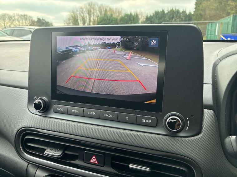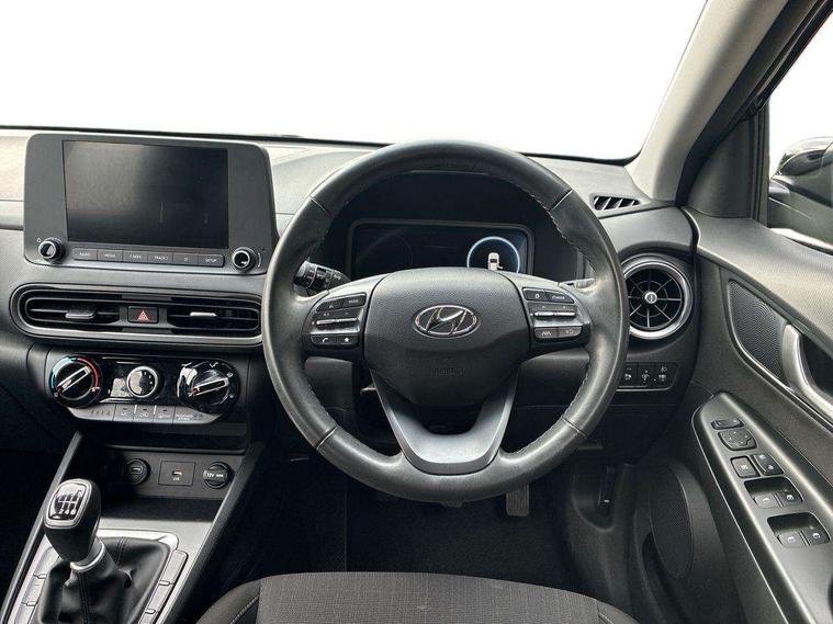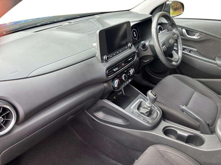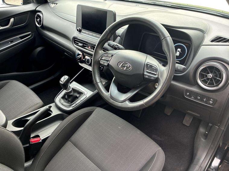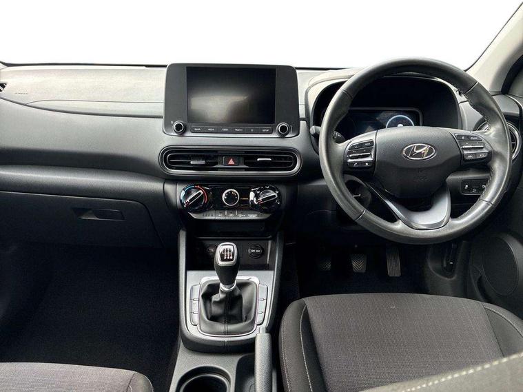 8" Touchscreen display audio + smart device integration, Bluetooth connectivity, Cruise control + speed limiter, Digital clock, Driver attention warning, Driver supervision instrument cluster with 10.25" LCD display, eCall emergency call system, Forward collision avoidance assist with pedestrian detection, Lane follow assist, Lane keep assist, Leading vehicle departure alert (LVDA), Parking system with rear camera and guidance system, PAS, Phone connection with apple carPlay and android auto, Rear parking sensor, Roadside assistance, Tailgate, Windscreen washer fluid sensor and warning indicator, 6 speed intelligent manual transmission, 6 speakers (2 front, 2 tweeters, 2 rear), Front USB ports, RDS and Digital DAB, Steering wheel mounted audio/phone controls, Automatic headlights with dusk sensor, Body colour door mirrors and handles, Door mirror integrated indicators, Electric front/rear windows with drivers one touch/anti-trap, Electrically adjustable and heated door mirrors, Halogen headlights, Halogen rear lights, LED daytime running lights, Positioning Lights - LED, Rain sensor, Rear roof spoiler with integrated LED brake light, Rear side wing doors, Rear wiper, Roof rails, Tinted glass with front door glass and windscreen with shade band, Variable front intermittent wipers, 12V power outlet in front console, 3 seat bench in 2nd row, 60/40 split folding rear seat, Adjustable head restraints, Air conditioning, Centre interior light, Cloth upholstery, Door scuff plate, Driver's seat height adjustment, Driver/passenger sunvisors and illuminated vanity mirrors, Front interior light, Front passenger seat manual adjustments, Height/reach adjustable steering column, Isofix rear child seat fastenings, Leather wrapped steering wheel and gear knob, Luggage compartment lighting, Luggage hooks, Metal paint effect interior door handles, Parcel shelf, Rear centre console with air vents, Single front passenger seat, Sunglasses holder, Vertical adjustment rear head restraints, Trailer wiring package - Kona, Airbags - front, front side and curtain airbags, Anti-lock brake system (ABS), Childproof rear door locks, Downhill brake control, EBD + Brake Assist, Electronic stability control, Fasten seatbelt reminder, Fixed 3 point for second row centre passenger seatbelt, Front seatbelt pretensioners, Height adjustable front seatbelts, Hill start assist control (HAC), Manual parking brake, Passenger airbag deactivate switch, Rear seat alert, Traction control, Tyre pressure monitoring system, Alarm/immobiliser, Deadlocks, Folding key, Locking wheel nuts, Remote central locking, 17" Alloy wheels,