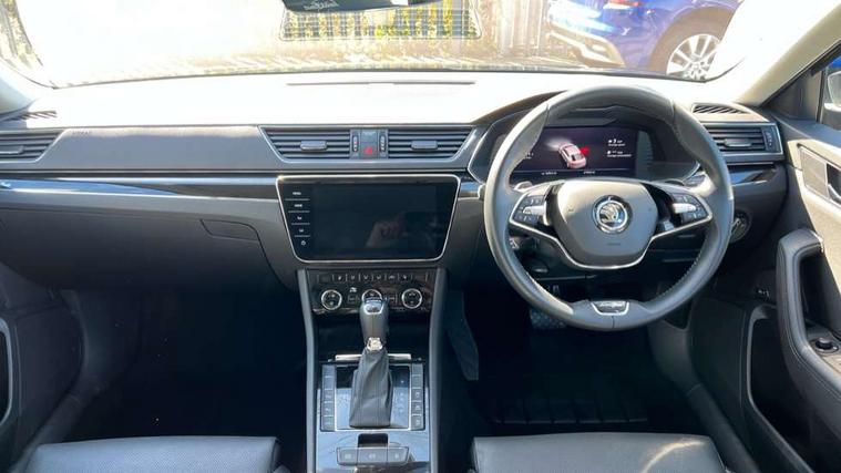 Bluetooth system, CareConnect and Emergency Call, Columbus HDD satellite 3D map navigation with 9.2" colour touch screen, web radio, integrated Wi-Fi, Driver fatigue sensor, eCall emergency system, Electromechanical power steering, Front assist with pedestrian protection, Stop/start engine system and energy recovery, Voice control system, Wireless smartlink apple carplay, SmartLink+ android auto and mirror link connectivity, Dynamic chassis control, XDS+, 2 USB ports, Bolero radio with 8" touchscreen display, Canton sound system - 610W 10 channel digital amp with 12 speakers, 200W subwoofer, noise cancellation, digital equaliser and 3D surround sound, DAB Digital radio, 3rd brake light, Aero front windscreen wipers with intermittent function, Auto dimming rear view mirror, Body colour door mirrors and handles, Chrome grille surround with chorme rib elements, Chrome rear diffuser, Chrome strip between rear lights and lower strip on side doors, Chrome window surround, Cornering front fog lights, Electrically adjustable heated and folding door mirrors with memory function, Front and rear electric windows, Full matrix LED headlights with AFS LED DRL integrated with headlight washer LED rear lights(High function), dynamic indicators and lighting animation, Heated windscreen, Light assistant (coming/leaving home/tunnel light), Privacy glass, Rain sensor, Rear side wing doors, Rear wiper, 12v power point in centre console, 2 spoke heated leather multi-function steering wheel, 3 seat bench in 2nd row, Electric auxiliary air heater, Electrically adjustable front memory seats including lumbar support, Electrically operated Boot release, Front and rear footwell illumination, Front armrest with storage box, Heated front and rear seats, Height adjustable front and rear head restraints, Ice scraper, Illuminated and cooled glovebox, Interior lights with control switches, Isofix child seat fittings on outer rear seats, LED front and rear reading lights, One umbrella compartments in driver door with one umbrella in drivers door, Overhead glasses storage compartment, Rear centre armrest with cupholders, Removable parcel shelf, Single front passenger seat, Split folding rear seats, Sun visors with illuminated vanity mirrors, Ticket holder on A Pillar, Tri zone climate control, Ventilated front seats, Virtual pedal for boot opening, LED package plus - Superb, 3 rear seatbelts, 7 airbags - Front, front side, curtain, driver's knee airbag with front passenger deactivation switch, Driver and passenger seatbelts with warning light, Electronic parking brake, ESC including ABS, EBV, MSR, ASR, EDS, HBA, DSR, RBS, CBC, multi-collision brake (MKB) and Auto hold, Hill start assist, Power operated child lock in rear doors, Tyre pressure monitor, Alarm with interior monitoring tilt sensor and back up horn, Electronic engine immobiliser, Keyless entry and start/stop, Remote central locking with SAFE system, Third remote key, Piano black inserts,